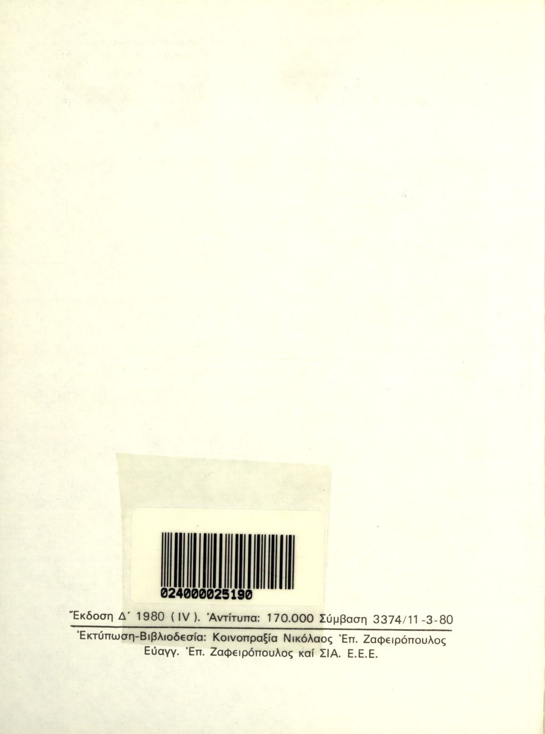 Εκδότης: Οργανισμός Εκδόσεως Διδακτικών Βιβλίων Έτος έκδοσης: 1980 Τόπος έκδοσης: Αθήνα Έκδοση: 4η Υπουργική απόφαση / Σύμβαση: 3374/11-3-1980 Έτος έγκρισης: 1980 |