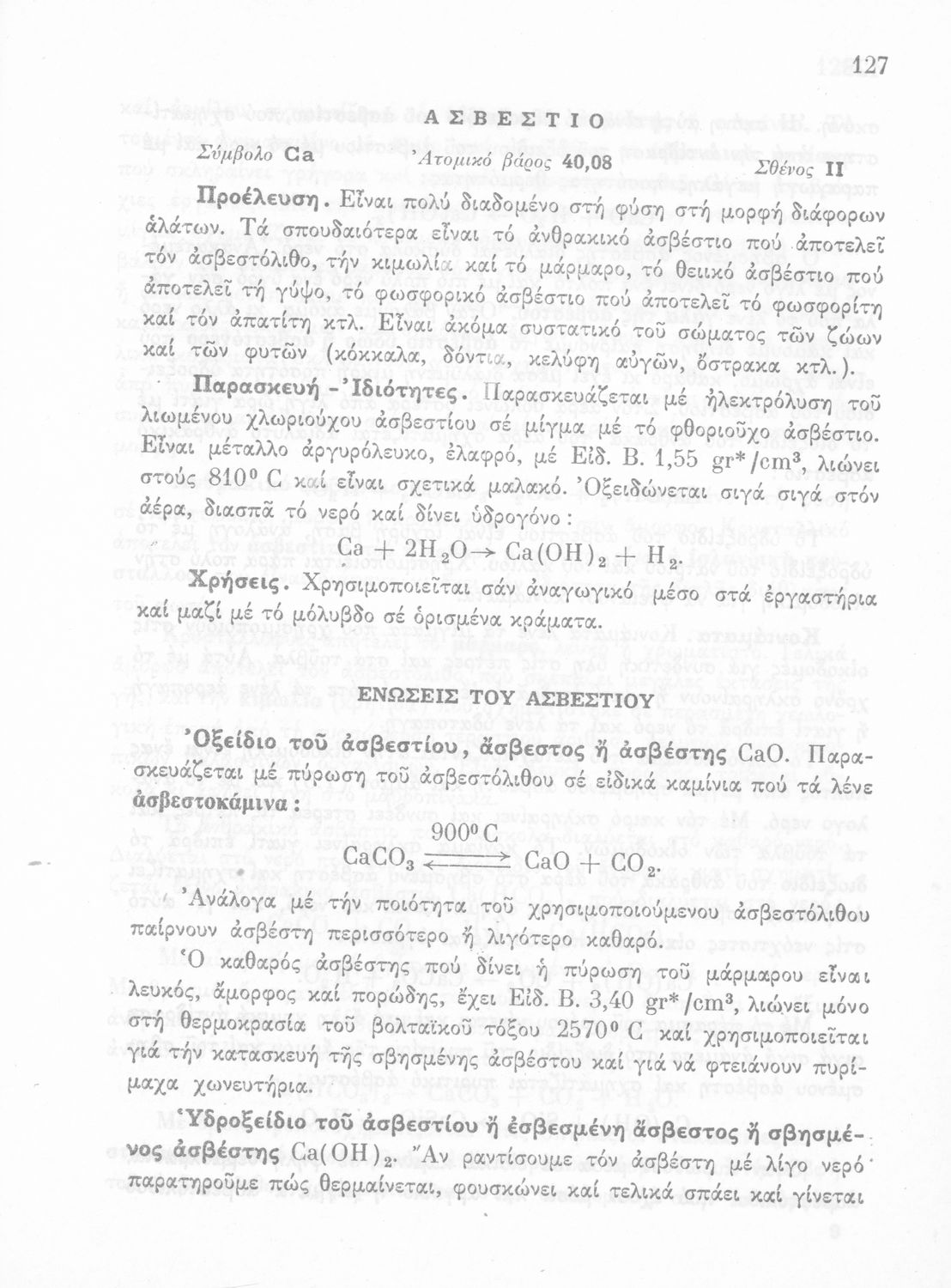 Σχολικό εγχειρίδιο Χημείας που απευθύνεται σε μαθητές Γυμνασίου με σκοπό τη περιγραφή εισαγωγικών εννοιών χημείας (ύλη, νόμοι χημείας, χημικές αντιδράσεις-εξισώσεις-ενώσεις). Στο βιβλίο γίνεται αναλυτική περιγραφή στοιχείων μετάλλων και αμέταλλων περιγράφοντας τις ιδιότητες και τις ενώσεις τους. Τέλος προσδιορίζεται η ακτινοβολία ραδιενεργών σωμάτων.