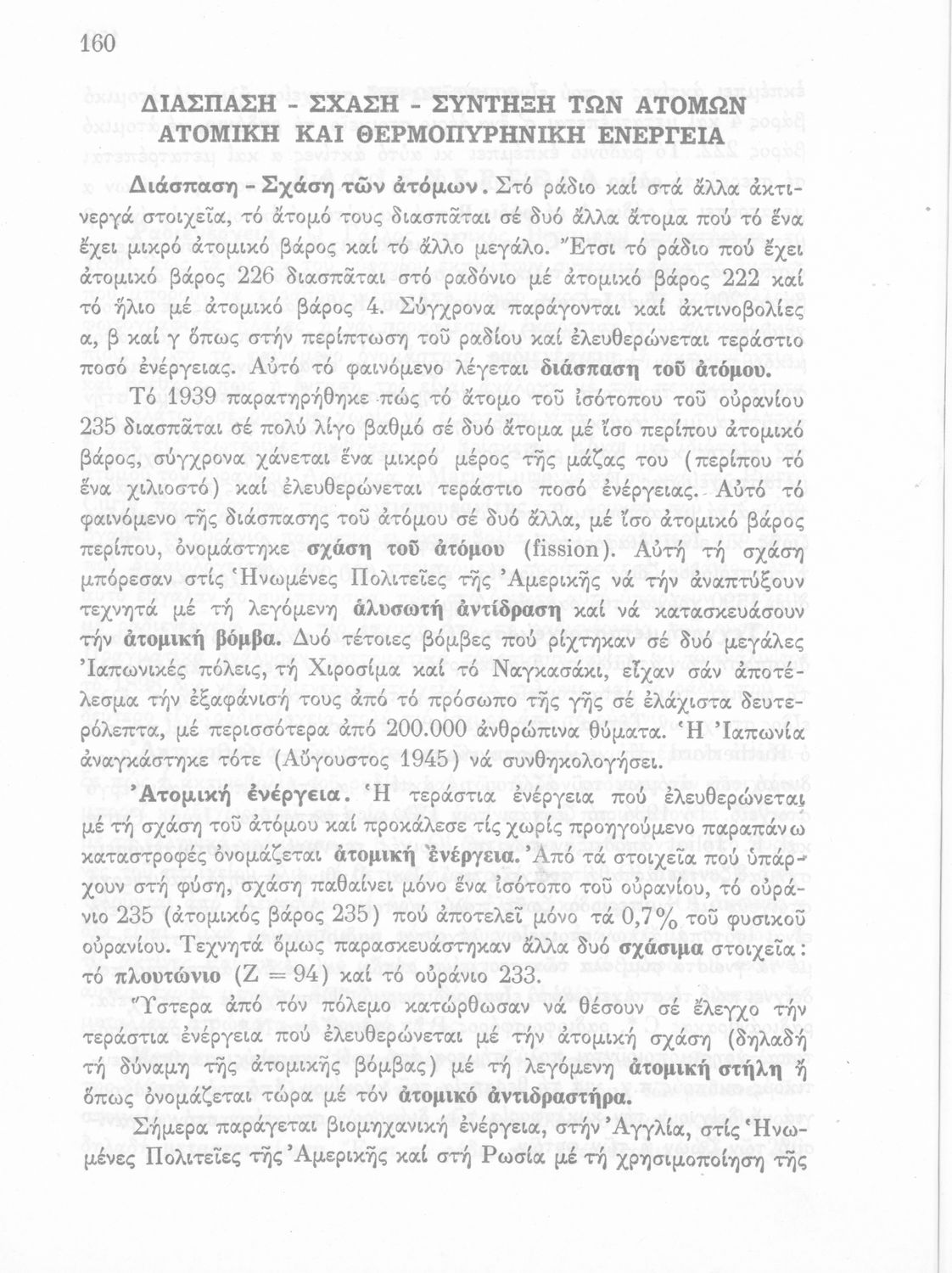 Σχολικό εγχειρίδιο Χημείας Α΄ και Β΄ Λυκείου που περιλαμβάνει εισαγωγή στις έννοιες της Χημείας (ύλη, νόμοι χημείας, χημικές αντιδράσεις, εξισώσεις, ενώσεις), αναλυτική περιγραφή στοιχείων και των ενώσεών τους.