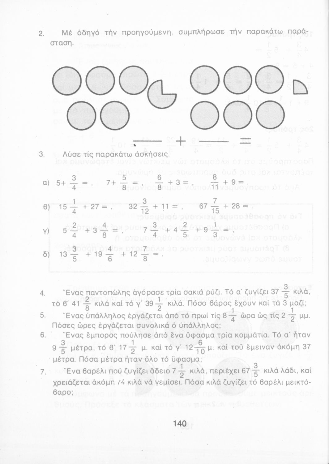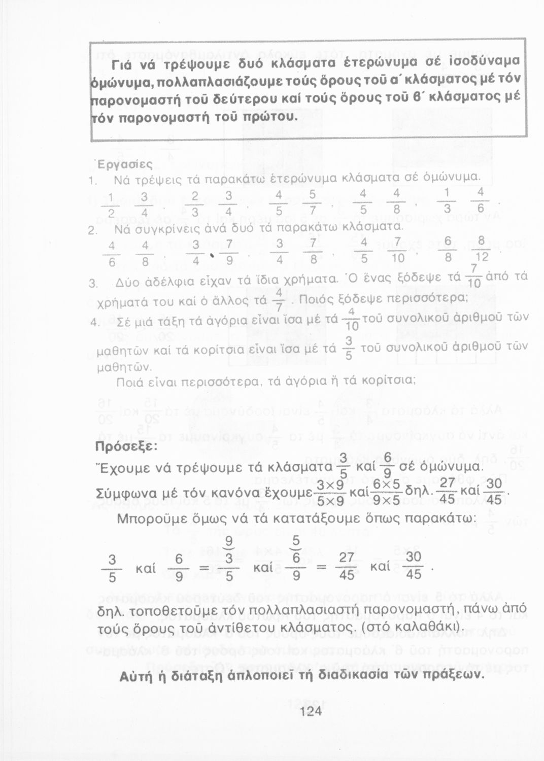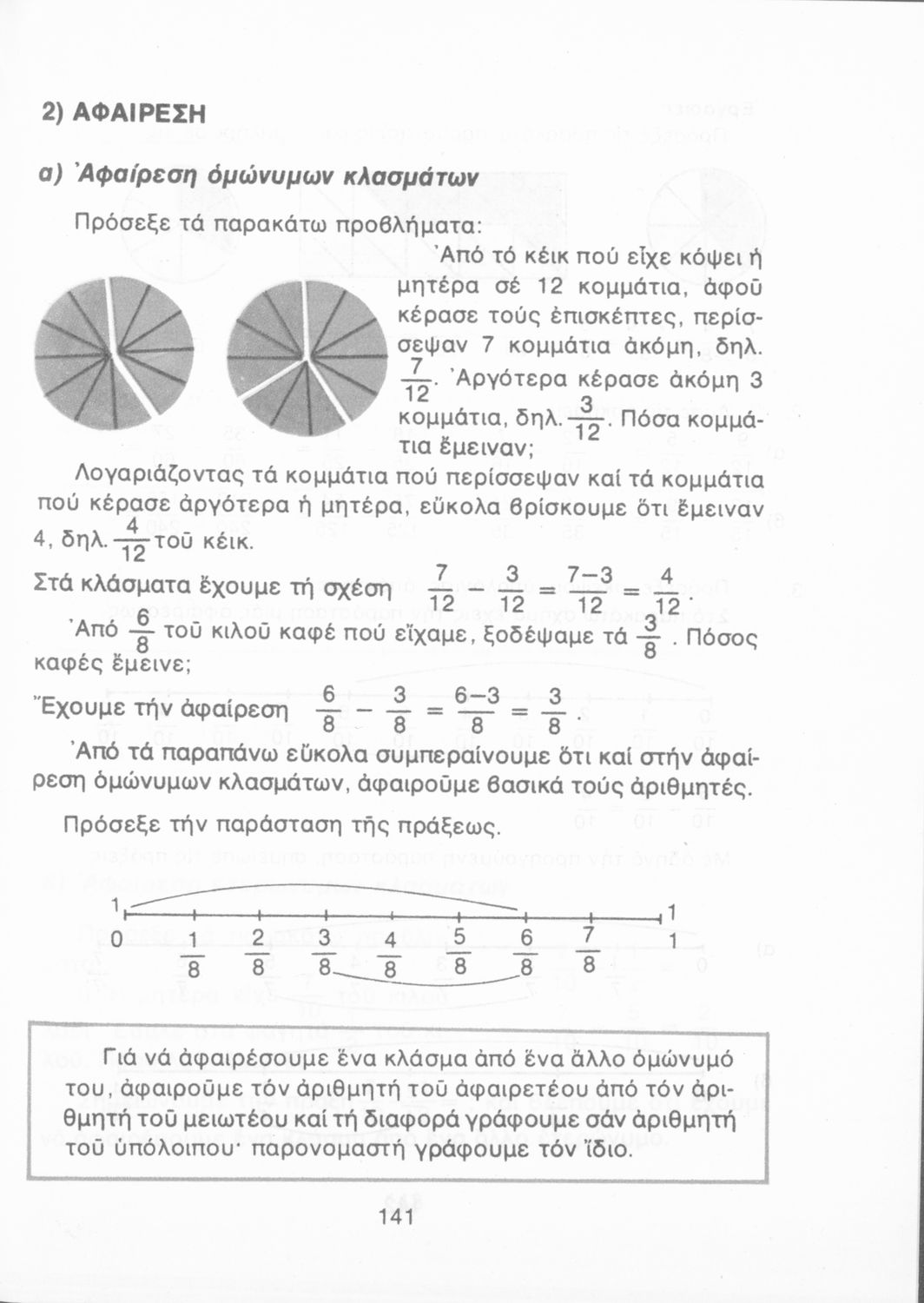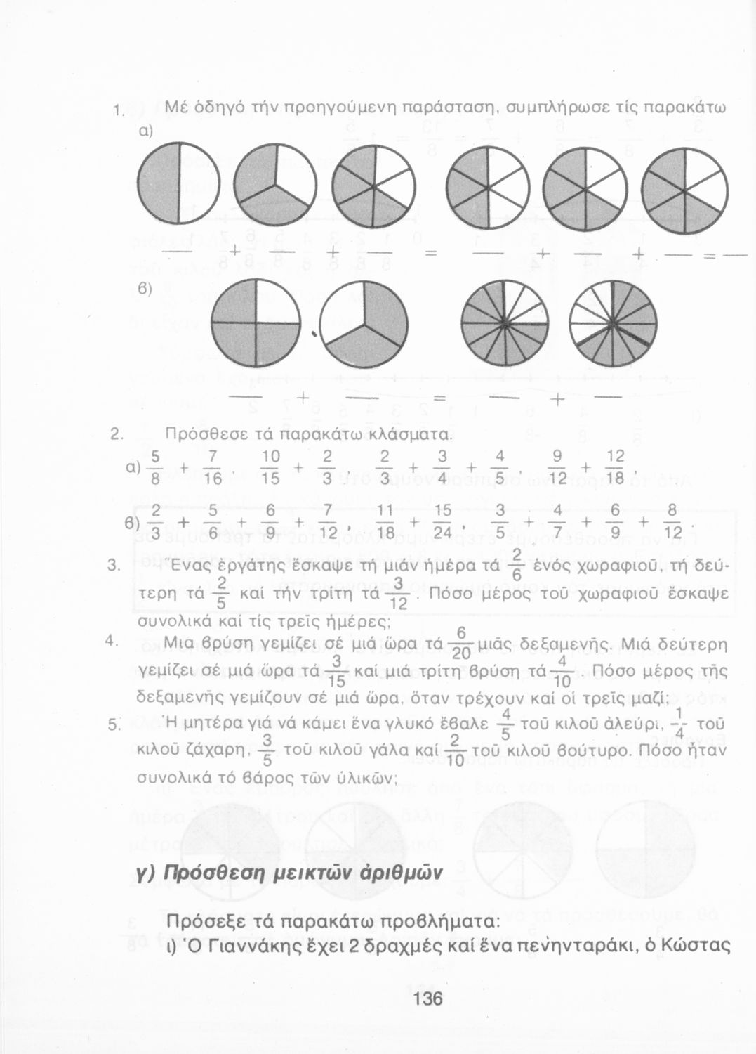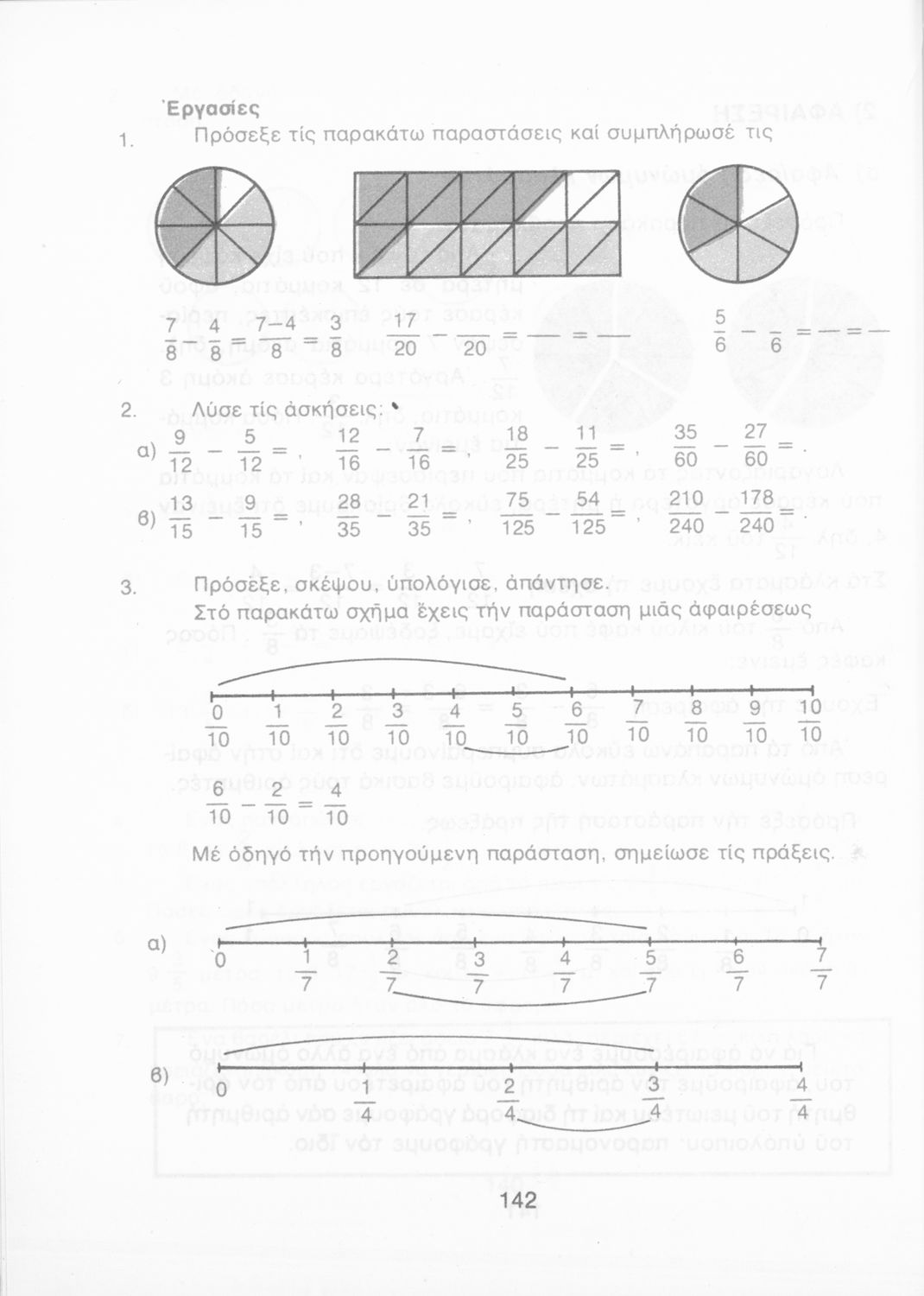 Μαθητικό βοήθημα Μαθηματικών Ε΄ Δημοτικού που περιέχει ασκήσεις και προβλήματα αριθμητικής με κλάσματα