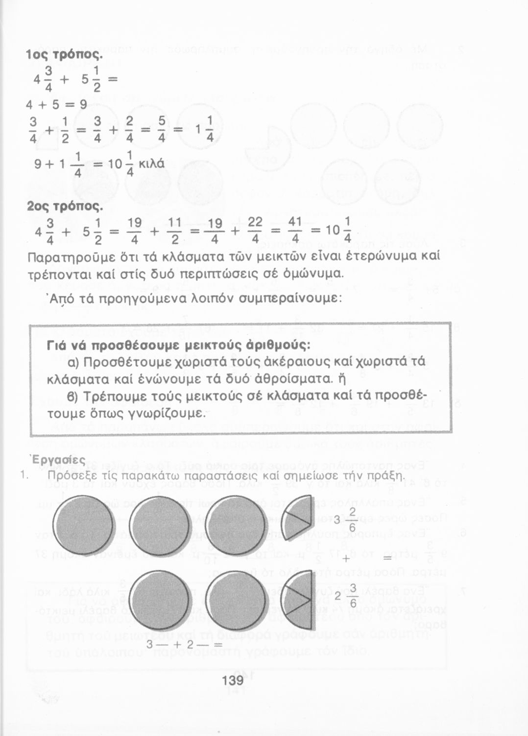 Σχολικό εγχειρίδιο Μαθηματικών Ε' Δημοτικού που περιέχει τις βασικές πράξεις αριθμητικής και παρουσιάζει τα κυριότερα γεωμετρικά σχήματα και τους τρόπους μέτρησής τους.