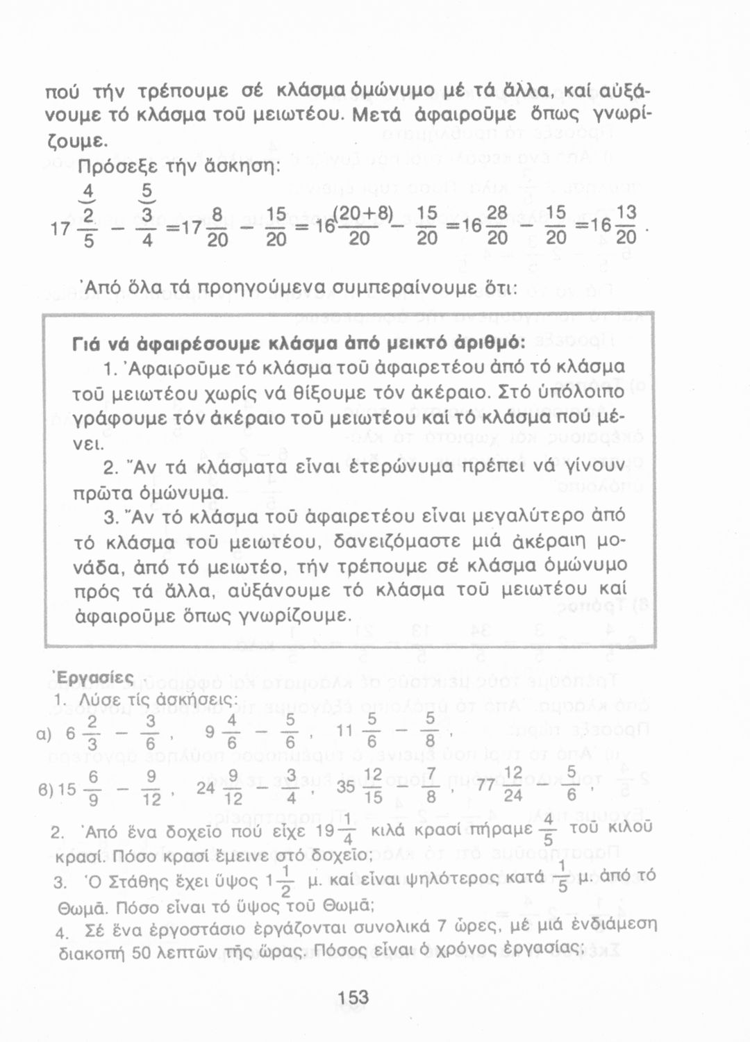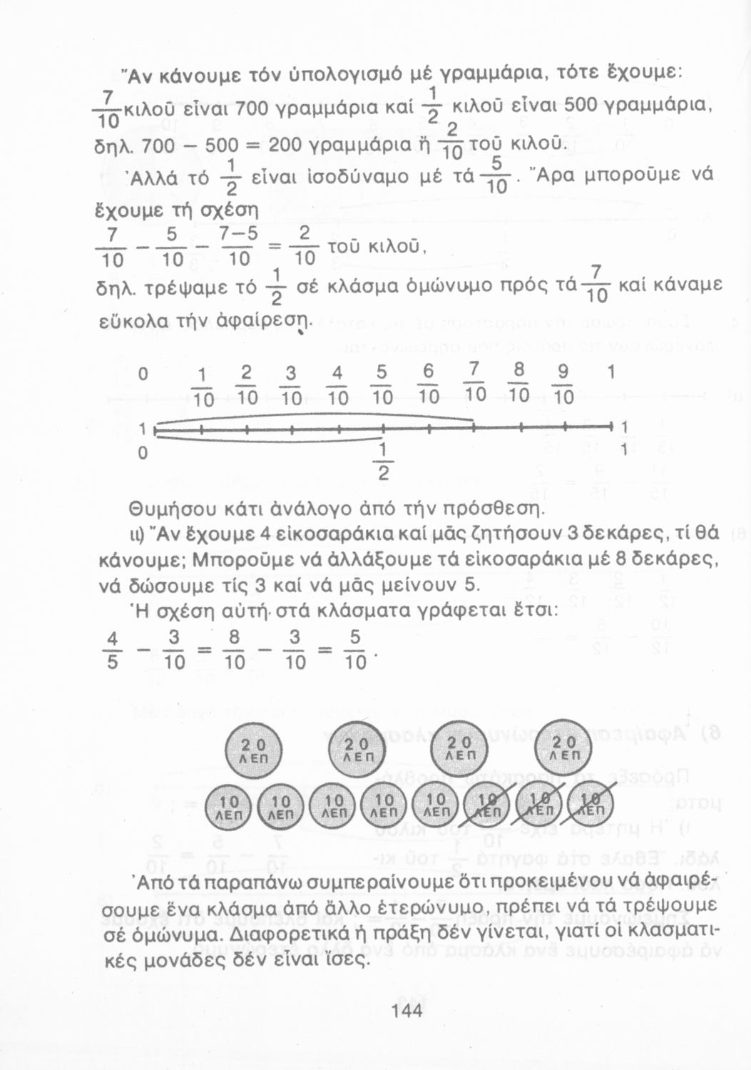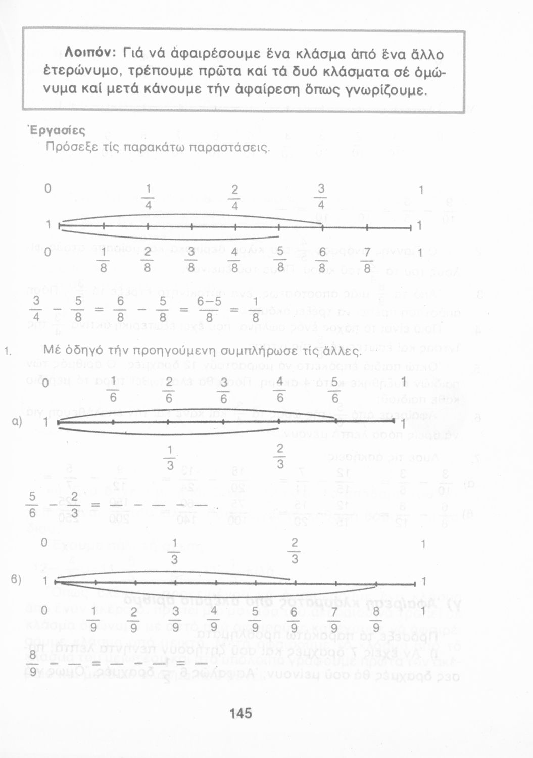 Μαθητικό βοήθημα Μαθηματικών Ε΄ Δημοτικού που περιέχει ασκήσεις και προβλήματα αριθμητικής με κλάσματα