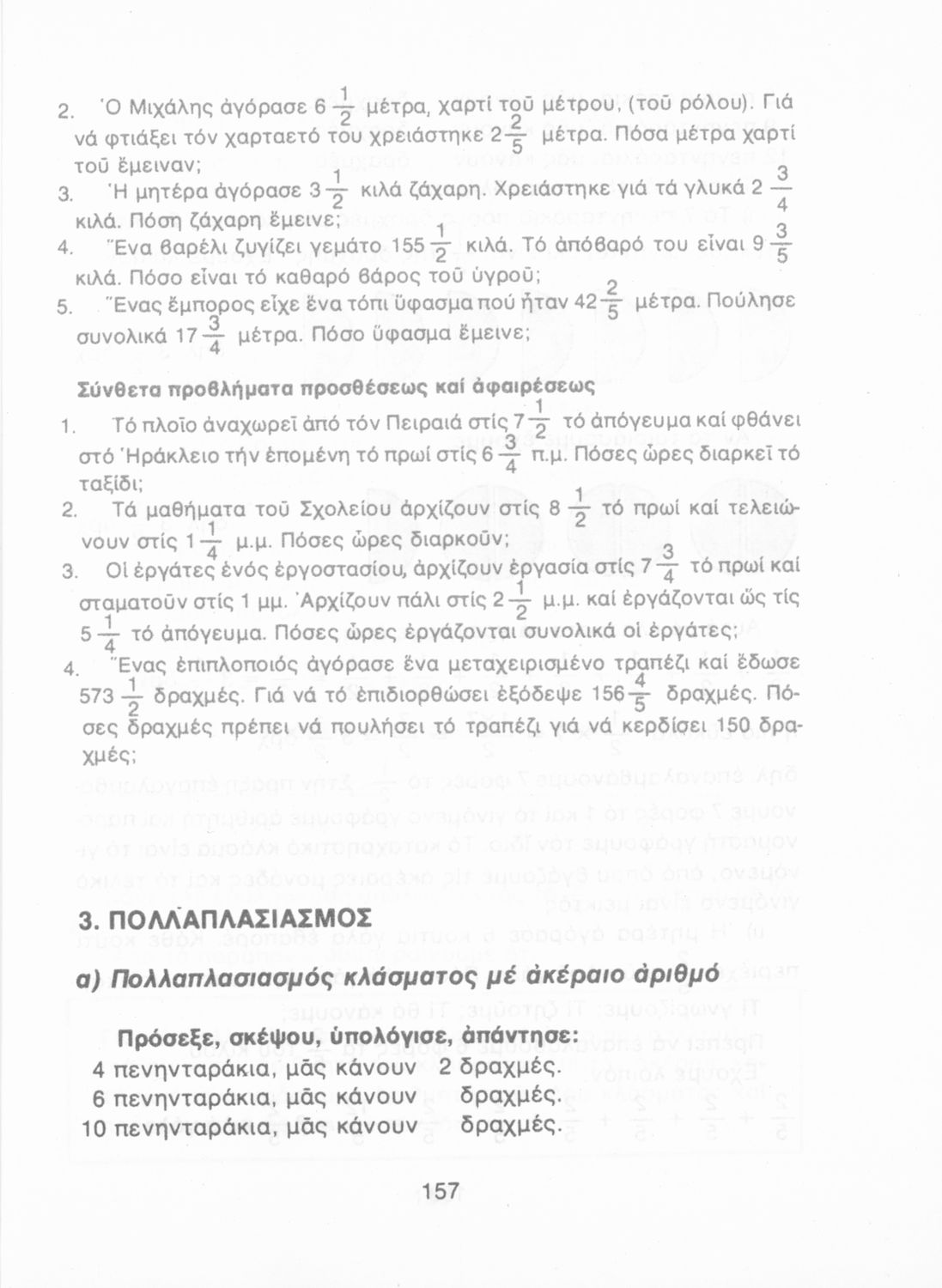 Σχολικό εγχειρίδιο Αριθμητικής και Γεωμετρίας Ε΄ Δημοτικού που περιλαμβάνει προβλήματα και της λύσεις τους.