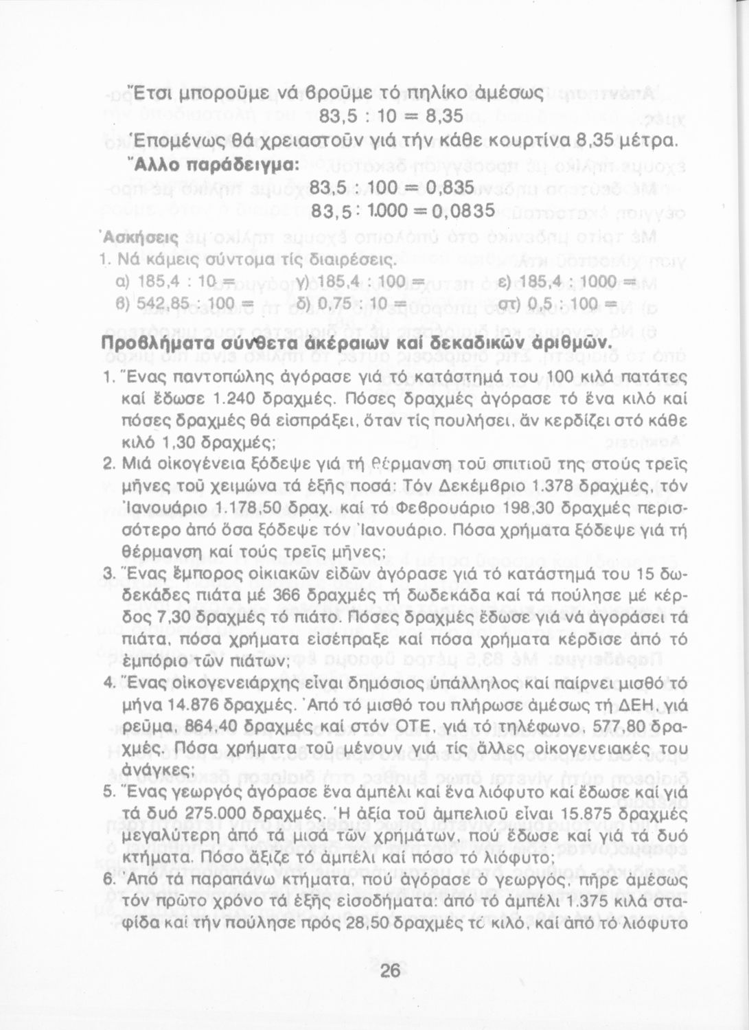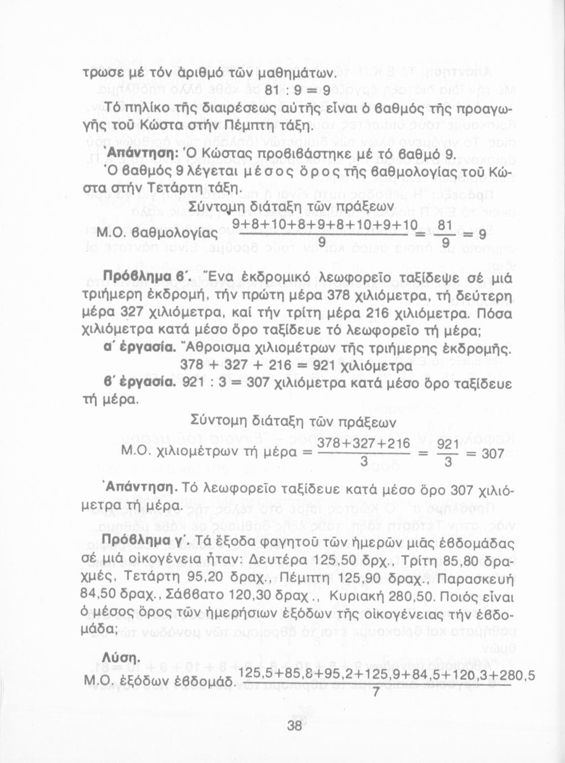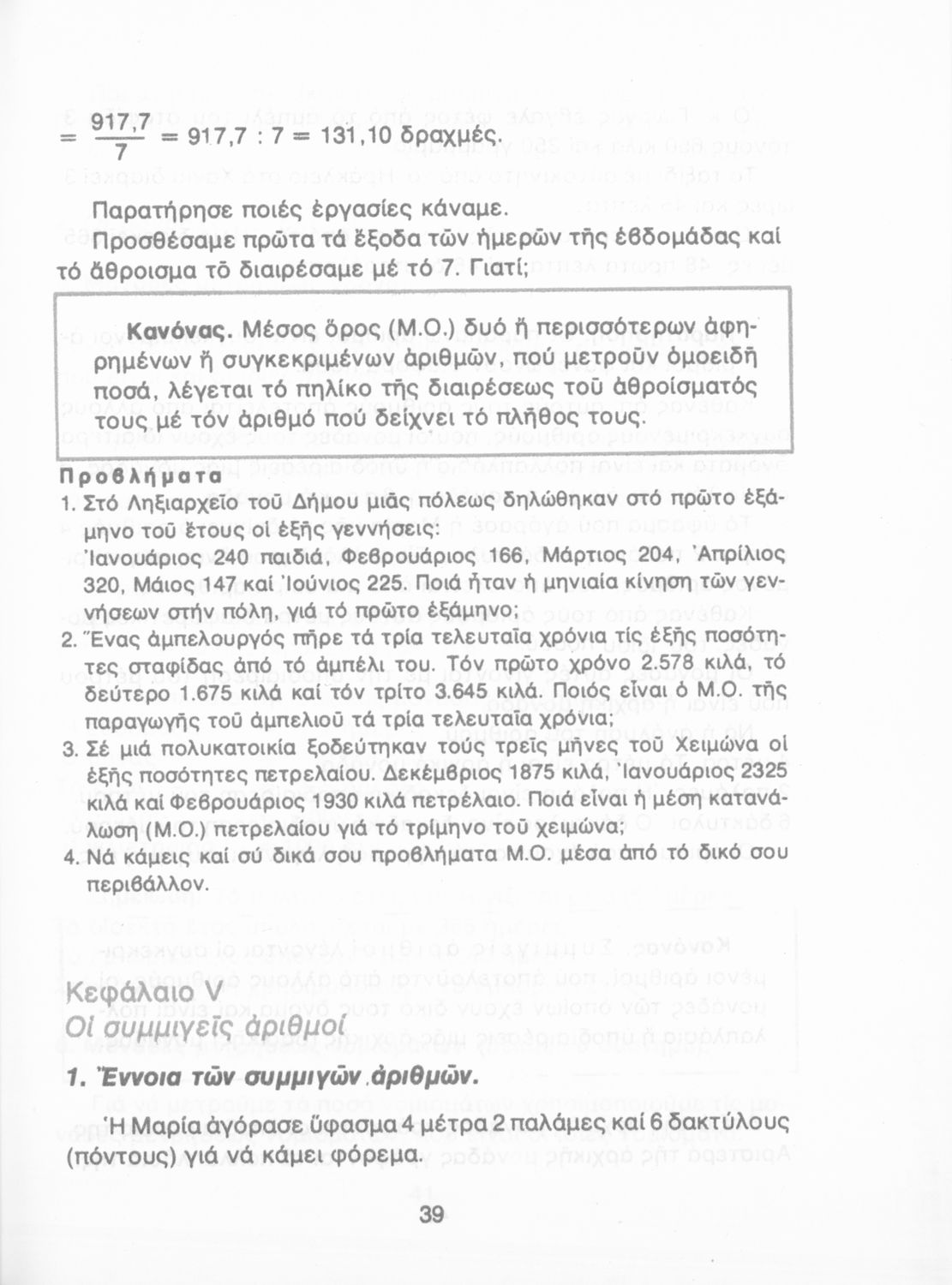 Σχολικό εγχειρίδιο Αριθμητικής και Γεωμετρίας Ε΄ Δημοτικού που περιλαμβάνει προβλήματα και της λύσεις τους.