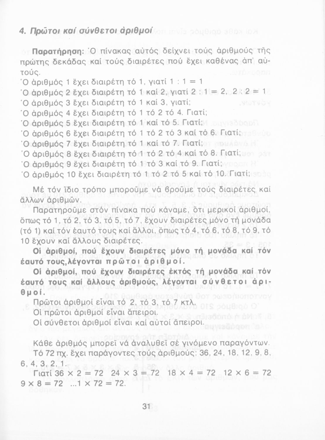 Σχολικό εγχειρίδιο Μαθηματικών Δ΄ Δημοτικού που περιέχει Αριθμητική και Γεωμετρία και εστιάζει στις αριθμητικές πράξεις και τα γεωμετρικά σχήματα.