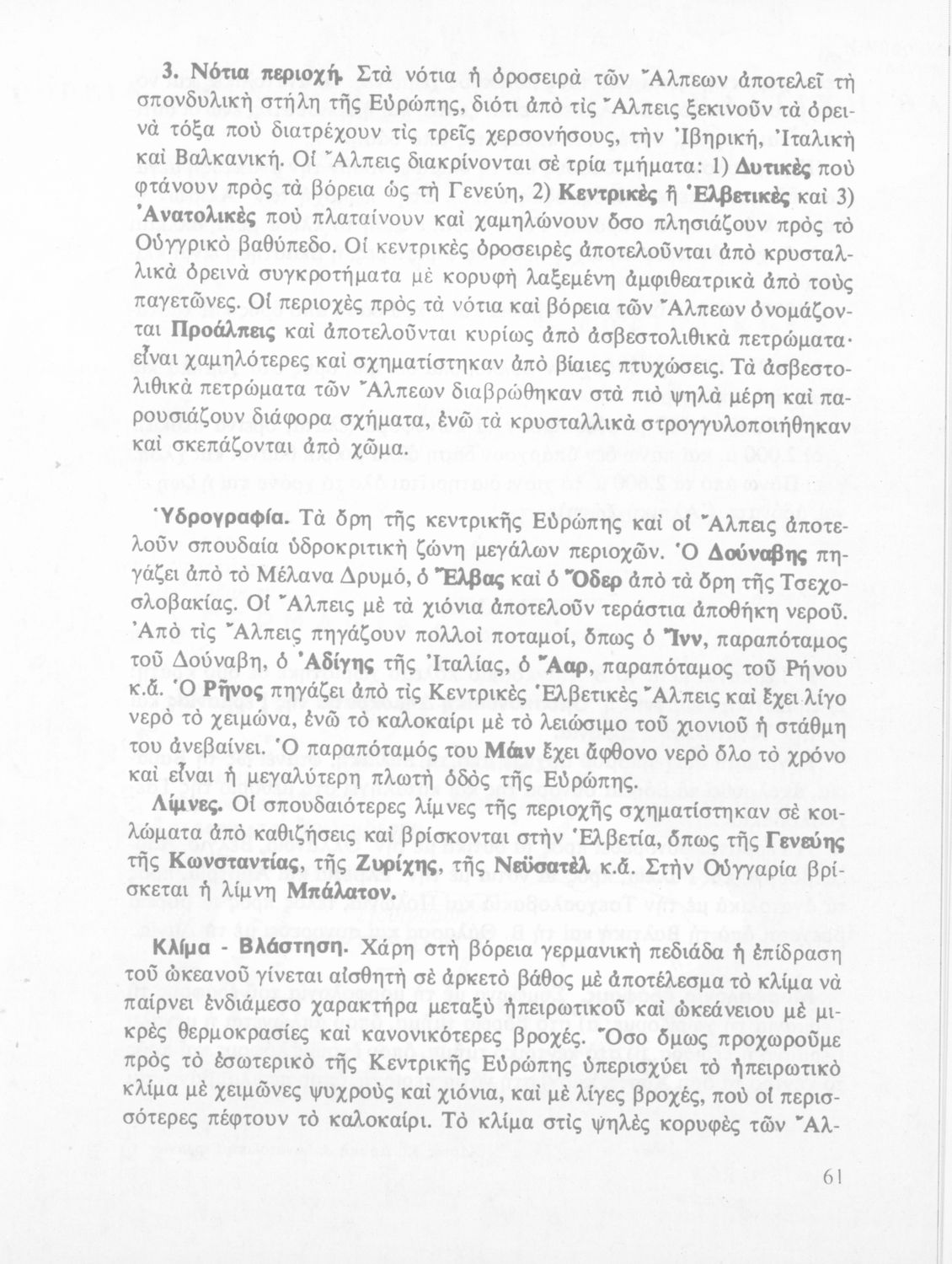 Σχολικό εγχειρίδιο Γεωγραφίας Β΄ Γυμνασίου που περιλαμβάνει εισαγωγή στη φυσική και πολιτισμική γεωγραφία της Ευρώπης και εξετάζει τις χώρες της από γεωμορφολογική, οικονομική και πολιτική άποψη.