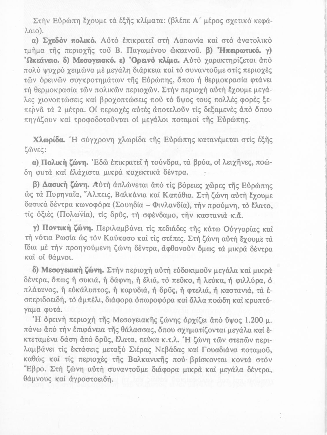 Σχολικό εγχειρίδιο Γεωγραφίας Β΄ Γυμνασίου που περιλαμβάνει εισαγωγή στη φυσική και πολιτισμική γεωγραφία της Ευρώπης και εξετάζει τις χώρες της από γεωμορφολογική, οικονομική και πολιτική άποψη.
