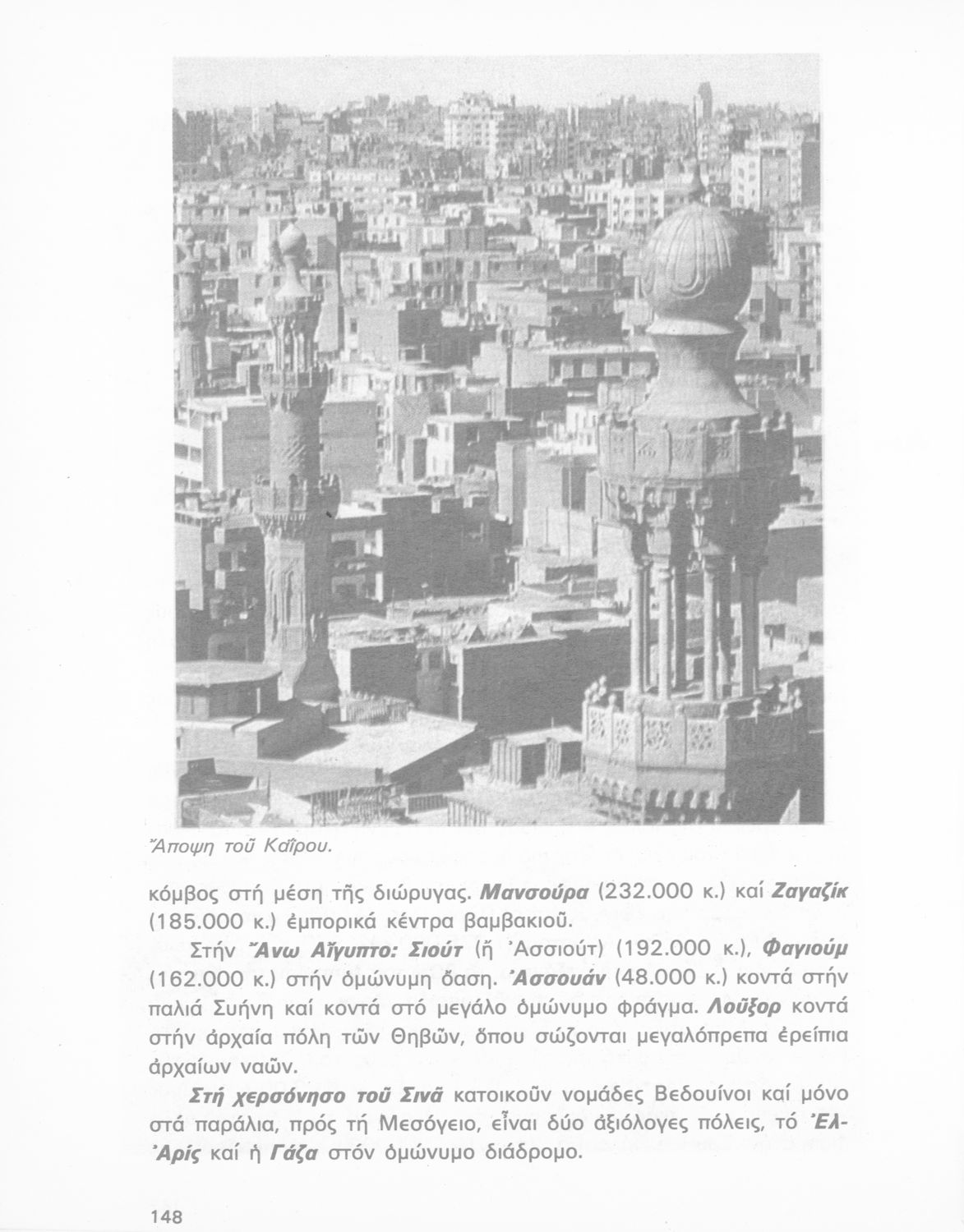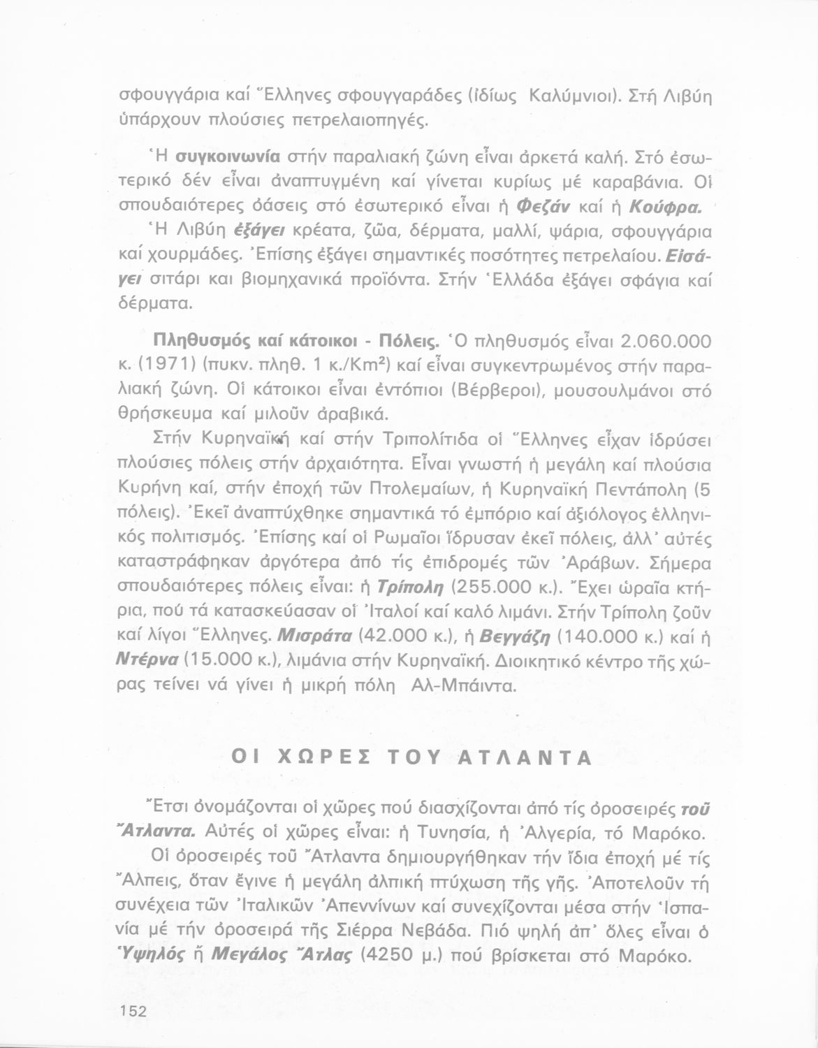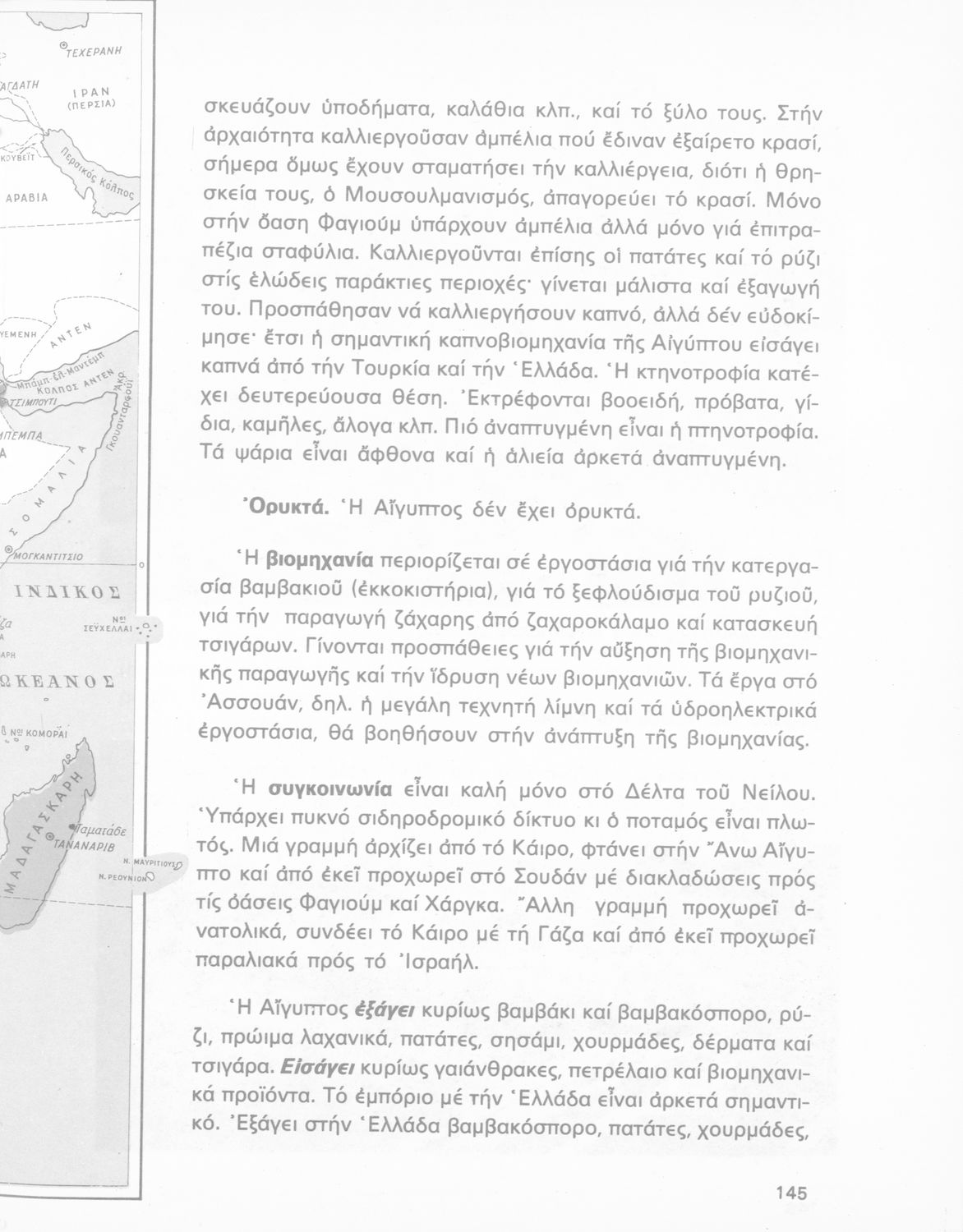 Σχολικό εγχειρίδιο Γεωγραφίας που εξετάζει ενδεικτικές χώρες και περιοχές από τις πέντε ηπείρους εκτός της Ευρώπης από γεωφυσική και οικονομική πλευρά. Φέρει το σύμβολο της δικτατορίας.