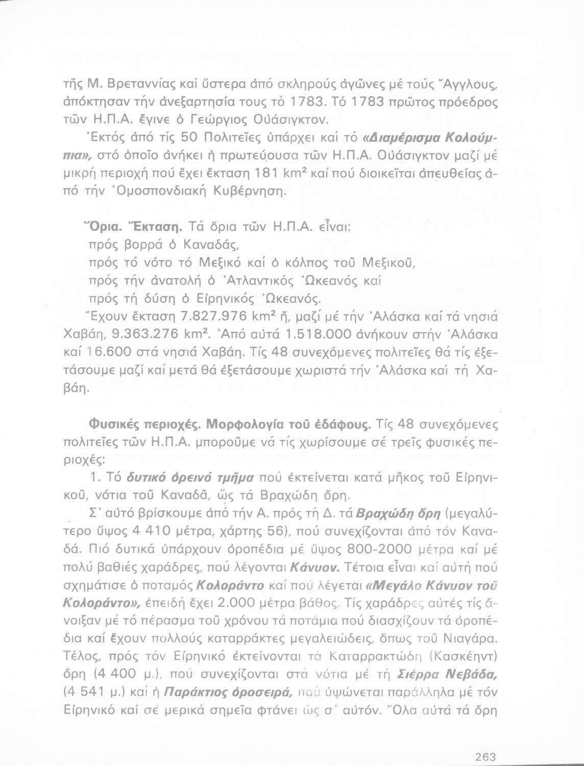 Σχολικό εγχειρίδιο Γεωγραφίας που εξετάζει ενδεικτικές χώρες και περιοχές από τις πέντε ηπείρους εκτός της Ευρώπης από γεωφυσική και οικονομική πλευρά. Φέρει το σύμβολο της δικτατορίας.