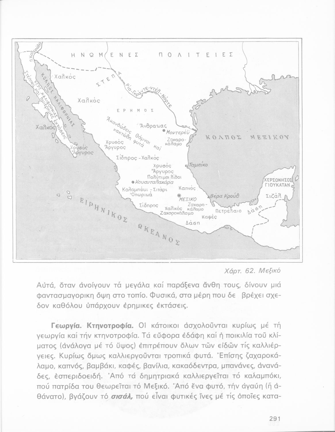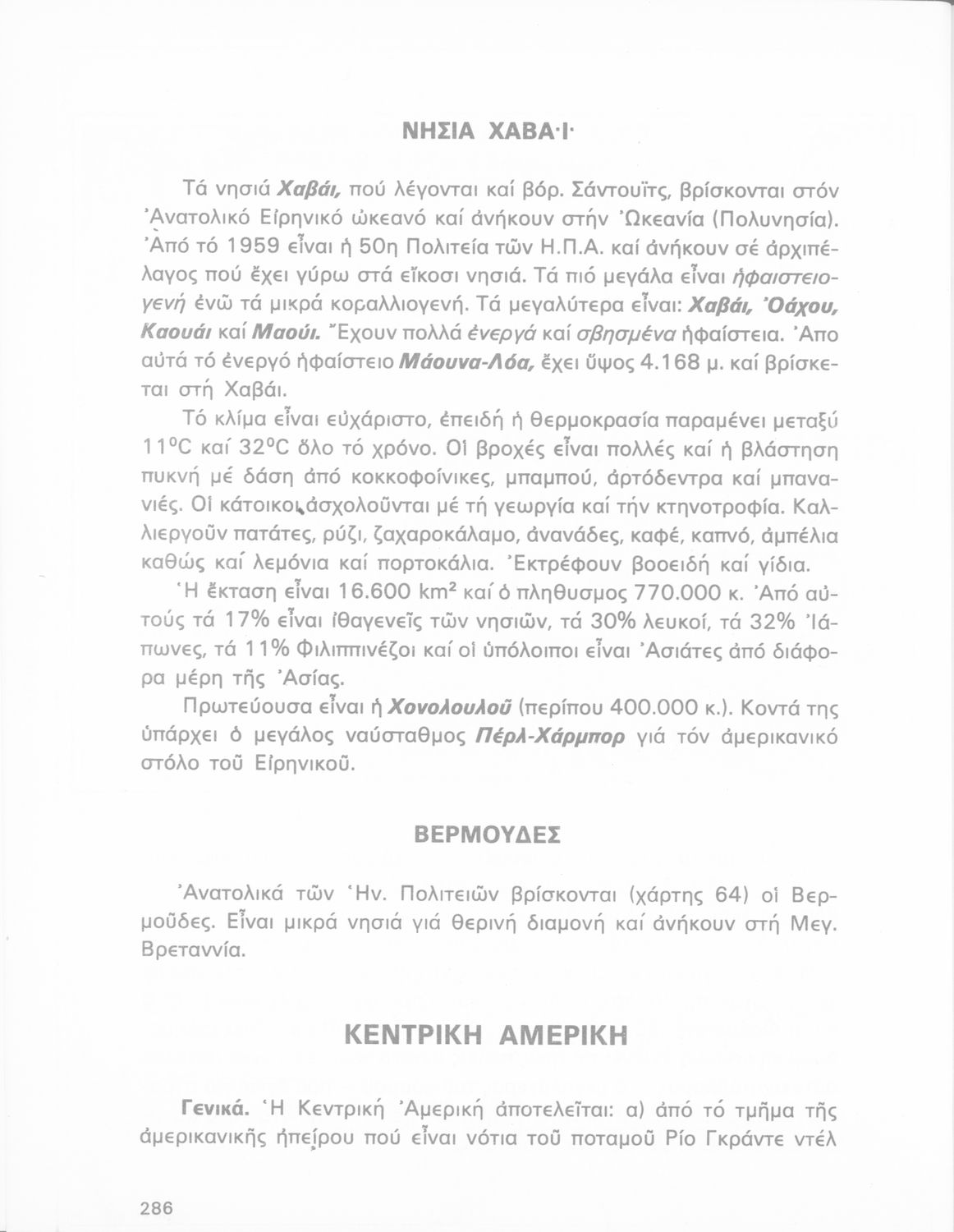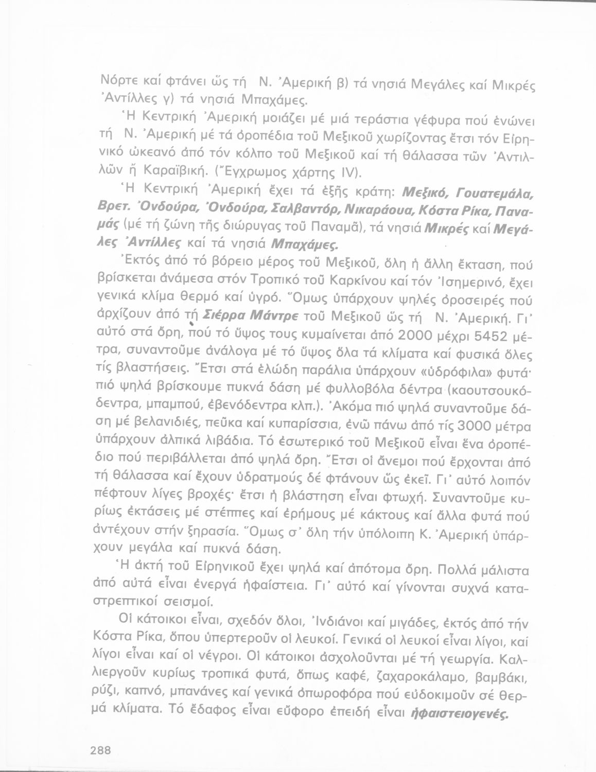 Σχολικό εγχειρίδιο Γεωγραφίας που εξετάζει ενδεικτικές χώρες και περιοχές από τις πέντε ηπείρους εκτός της Ευρώπης από γεωφυσική και οικονομική πλευρά. Φέρει το σύμβολο της δικτατορίας.
