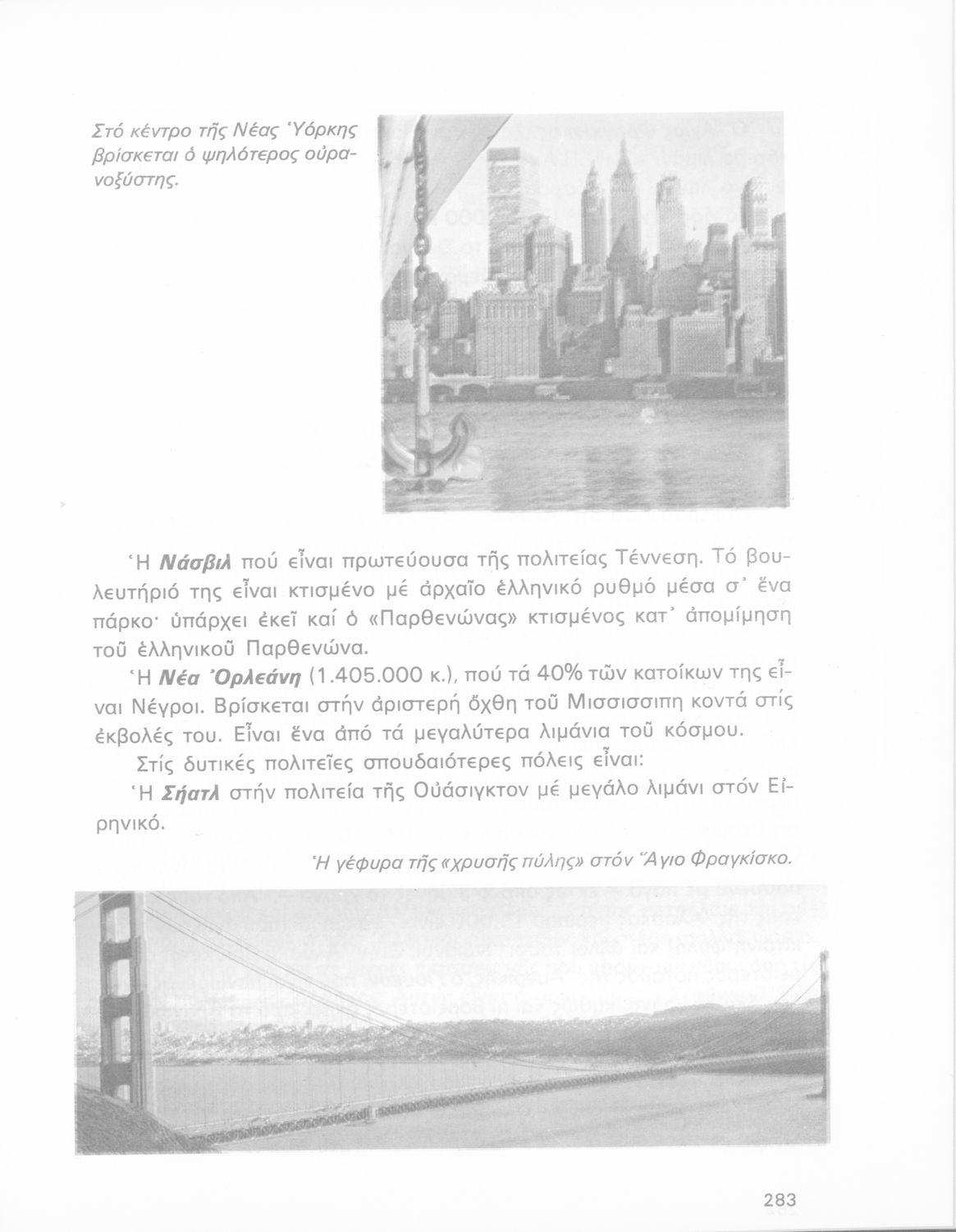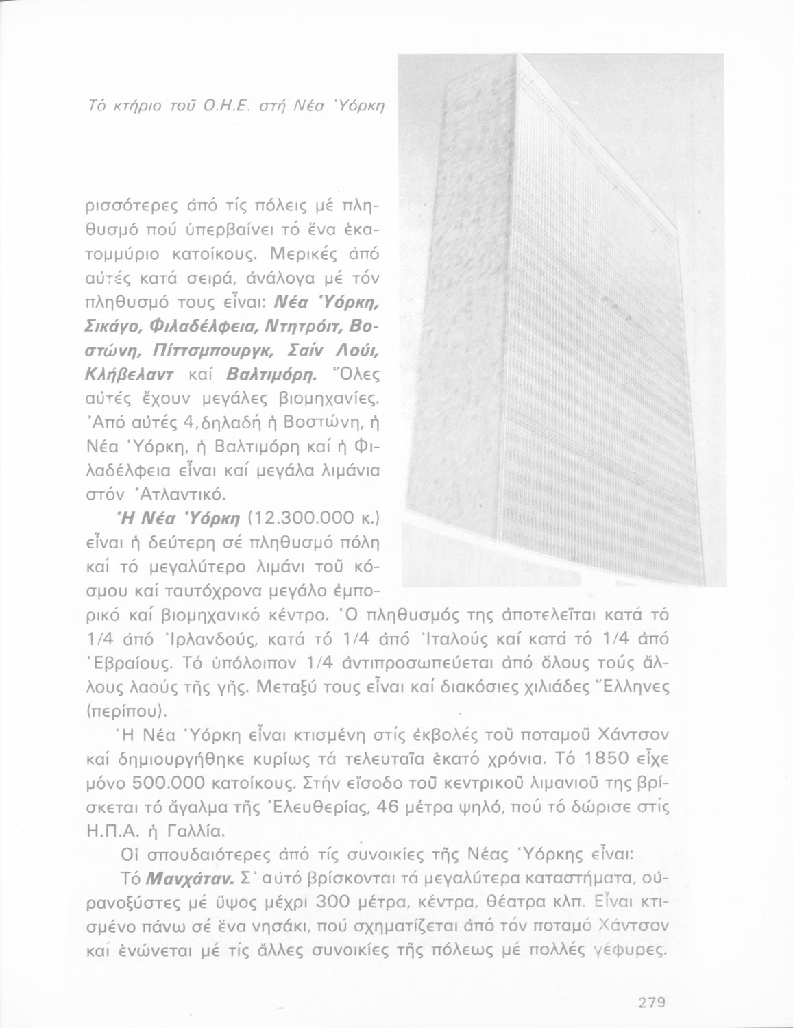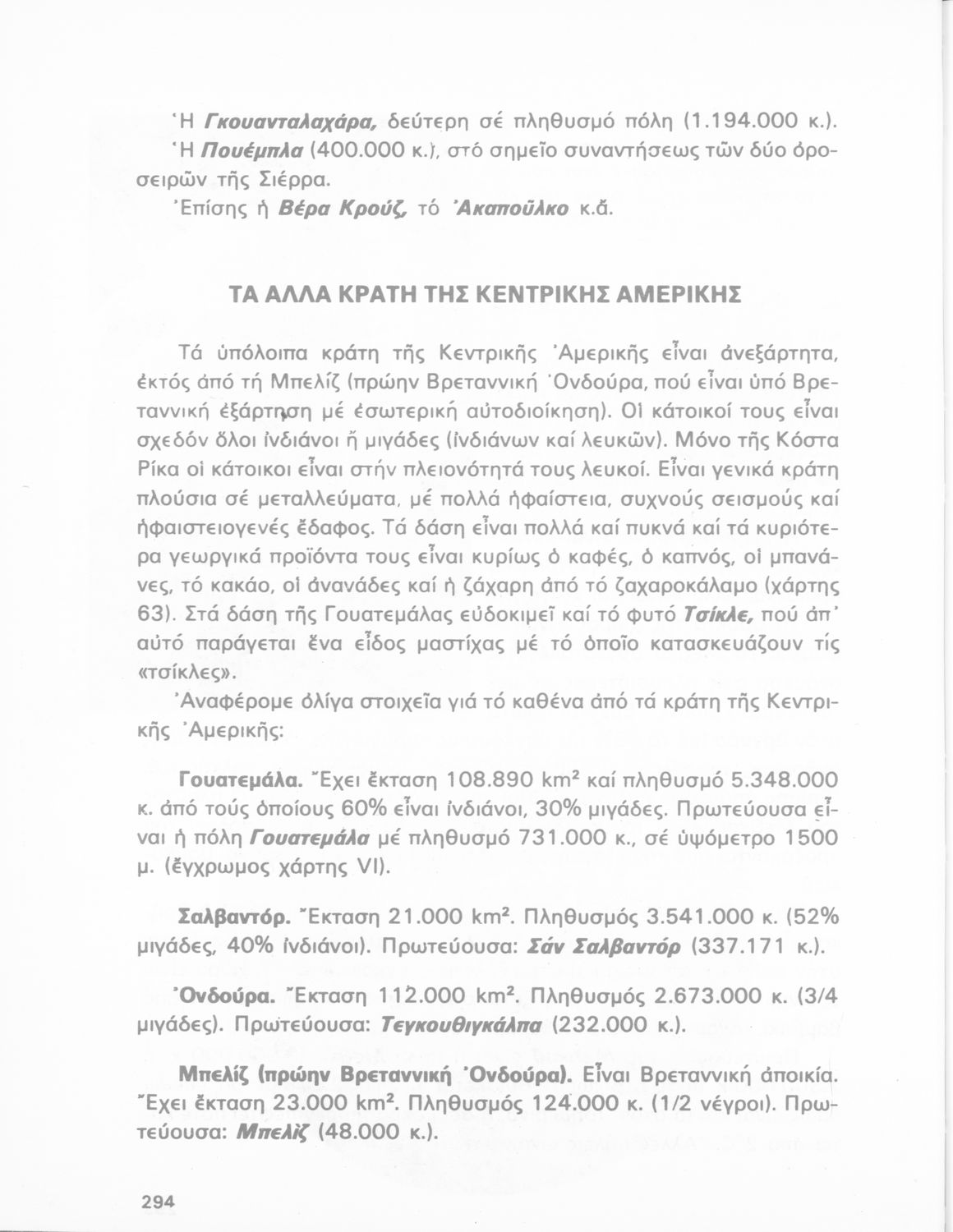 Σχολικό εγχειρίδιο Γεωγραφίας που εξετάζει ενδεικτικές χώρες και περιοχές από τις πέντε ηπείρους εκτός της Ευρώπης από γεωφυσική και οικονομική πλευρά. Φέρει το σύμβολο της δικτατορίας.