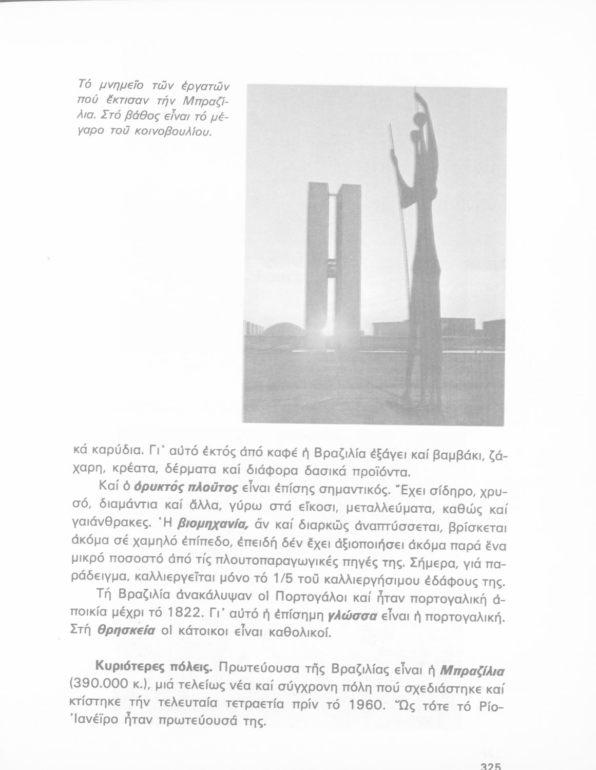 Σχολικό εγχειρίδιο Γεωγραφίας που εξετάζει ενδεικτικές χώρες και περιοχές από τις πέντε ηπείρους εκτός της Ευρώπης από γεωφυσική και οικονομική πλευρά. Φέρει το σύμβολο της δικτατορίας.