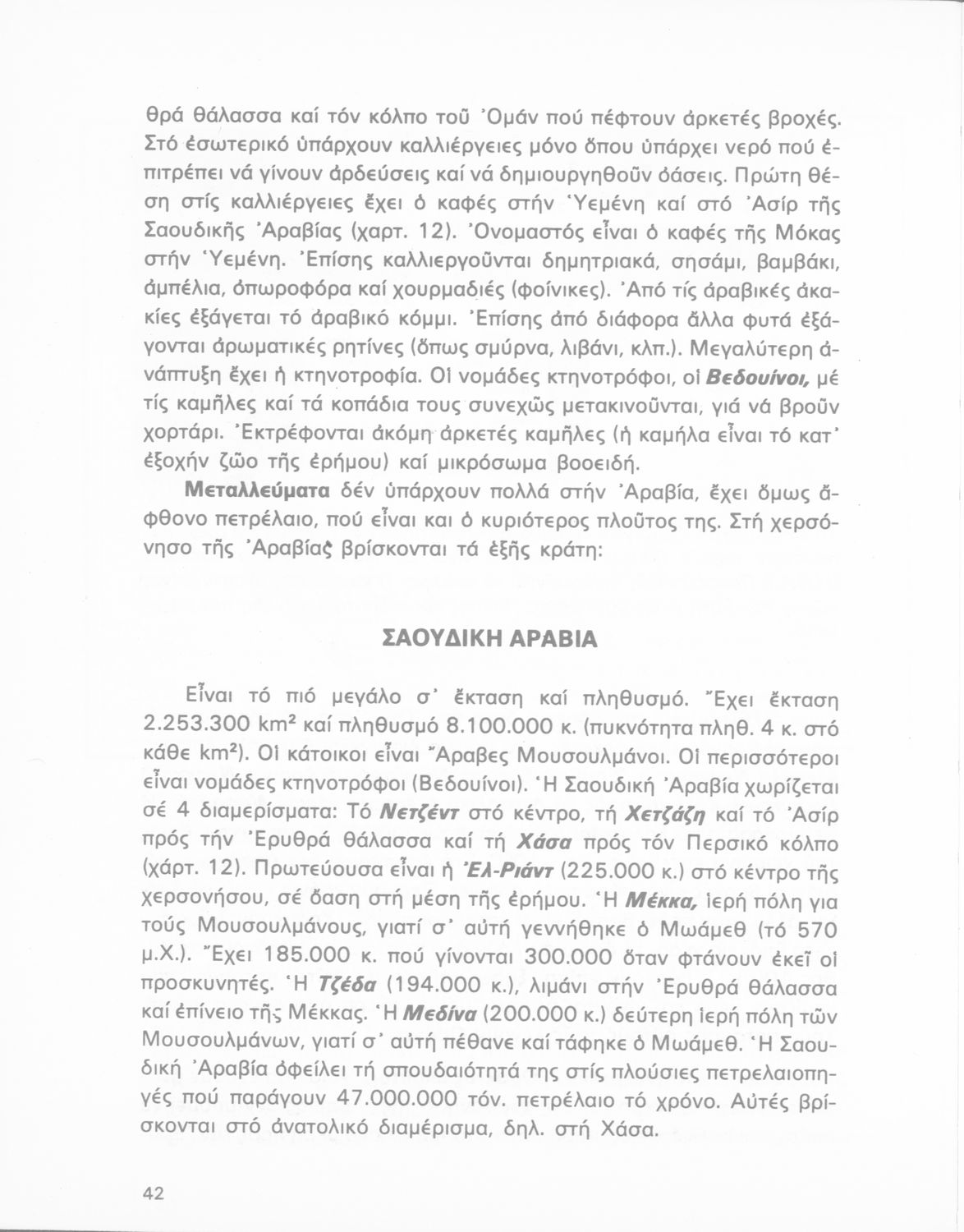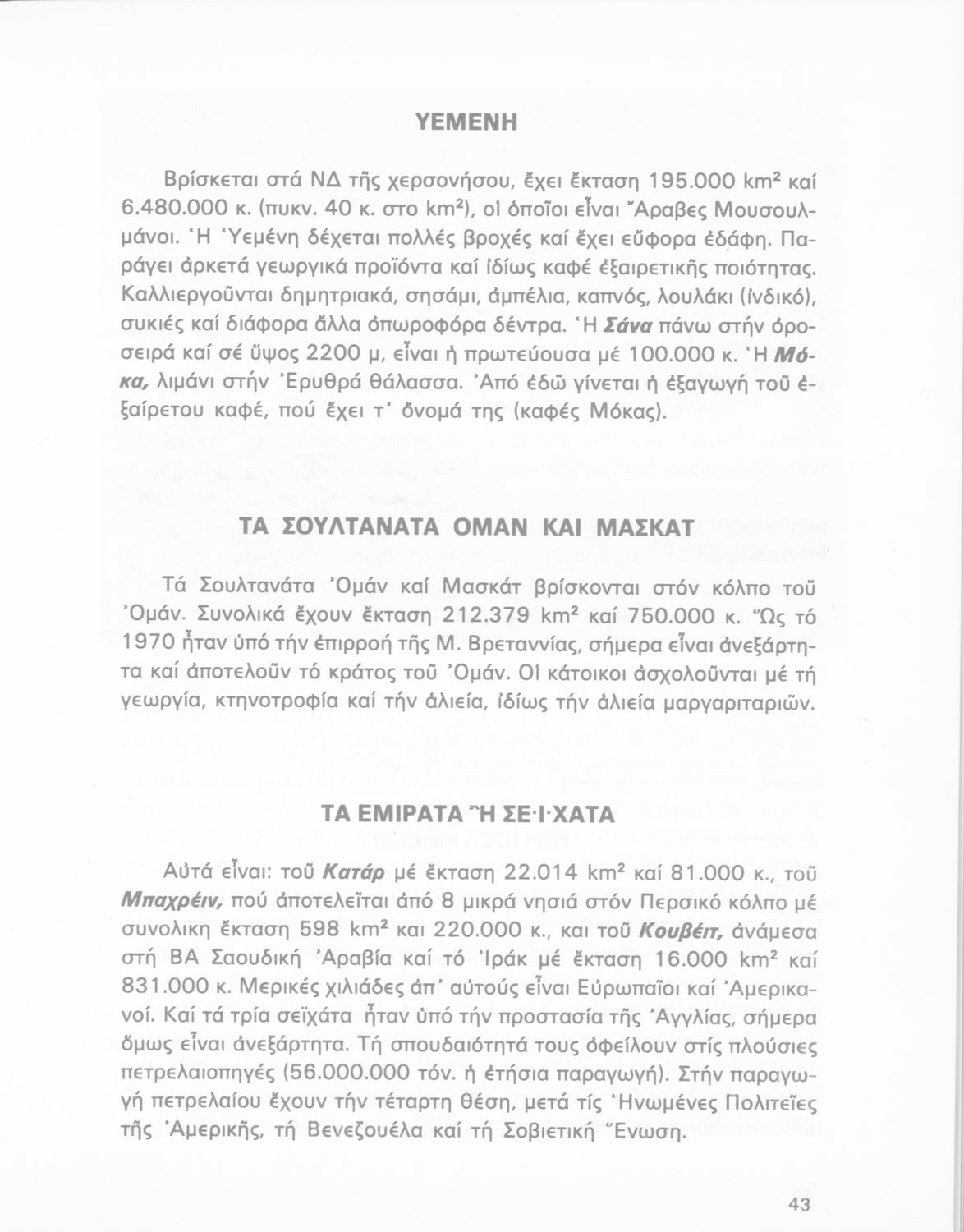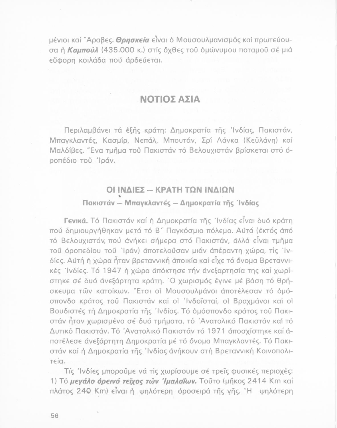 Σχολικό εγχειρίδιο Γεωγραφίας που εξετάζει ενδεικτικές χώρες και περιοχές από τις πέντε ηπείρους εκτός της Ευρώπης από γεωφυσική και οικονομική πλευρά. Φέρει το σύμβολο της δικτατορίας.