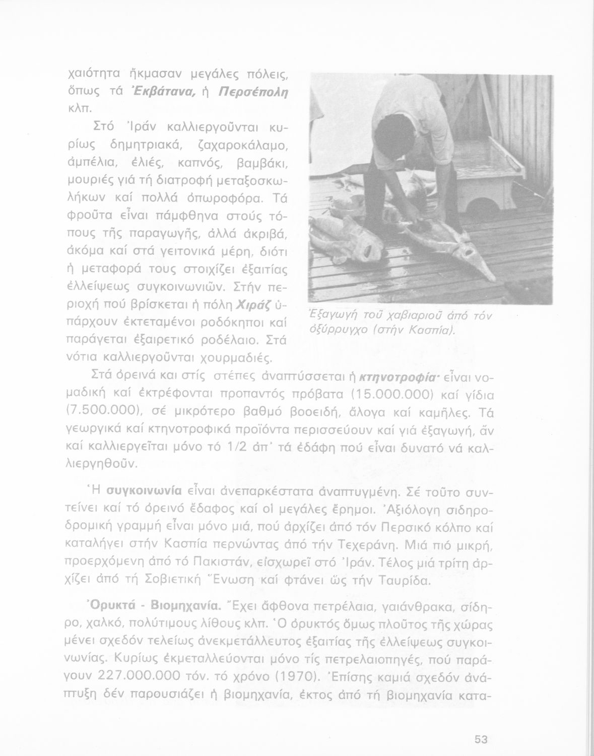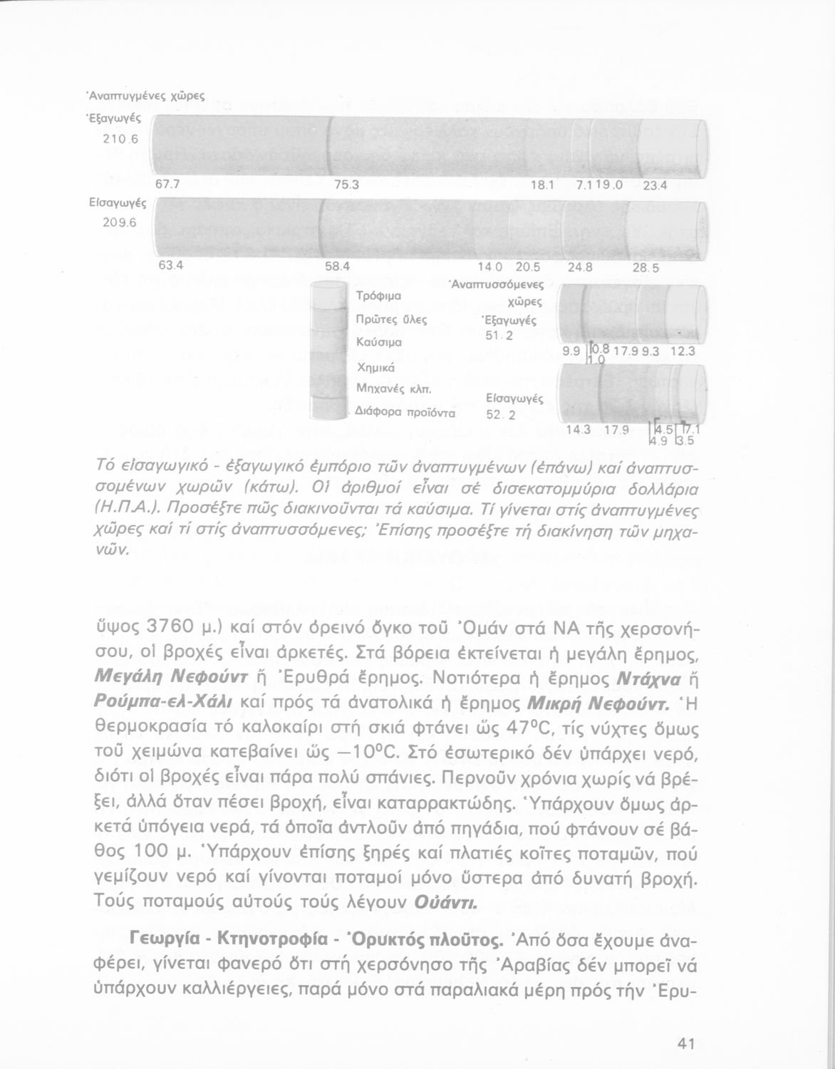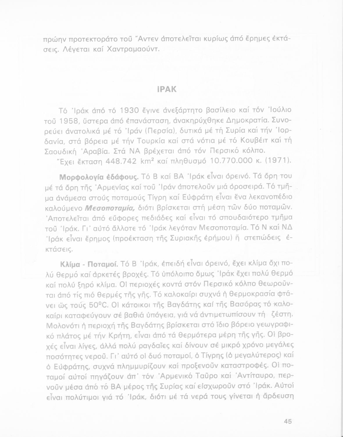Σχολικό εγχειρίδιο Γεωγραφίας που εξετάζει ενδεικτικές χώρες και περιοχές από τις πέντε ηπείρους εκτός της Ευρώπης από γεωφυσική και οικονομική πλευρά. Φέρει το σύμβολο της δικτατορίας.