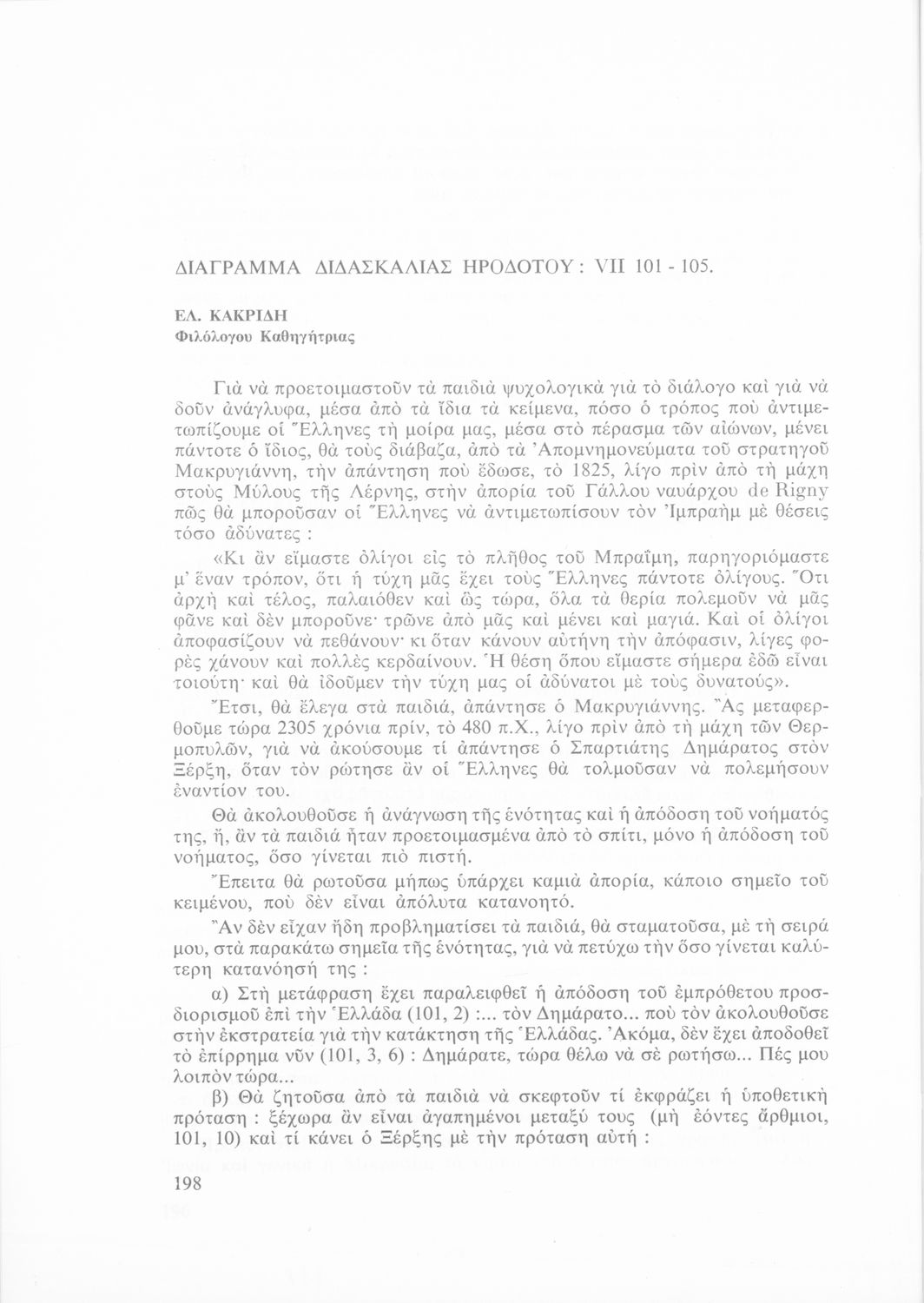 Μαθητικό βοήθημα Αρχαίων Ελληνικών που περιλαμβάνει σύντομα κείμενα από την αρχαία ελληνική γραμματεία και ερμηνευτικές, συντακτικές και γραμματικές παρατηρήσεις.