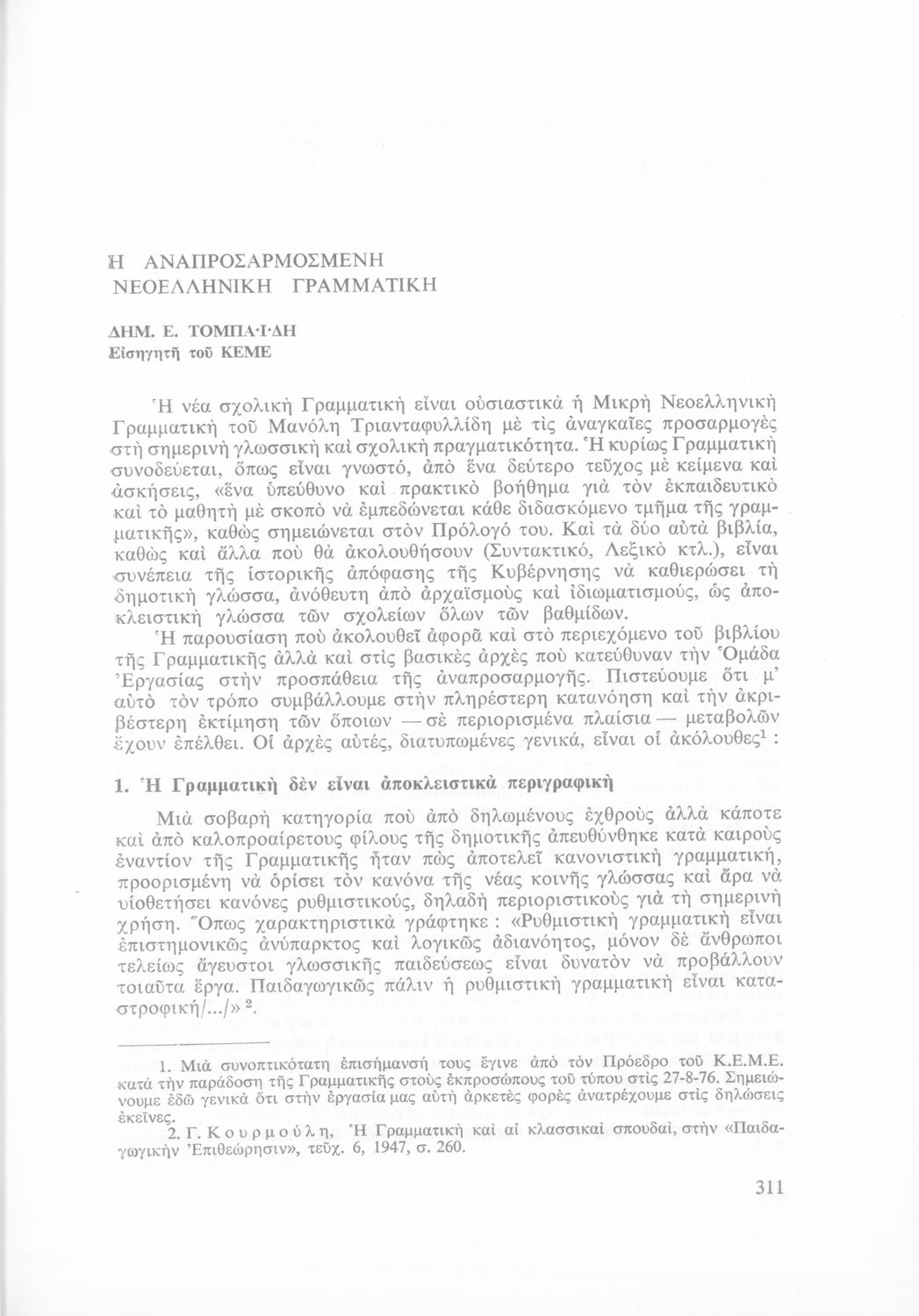 Έκδοση του ΚΕΜΕ που αποσκοπεί στην "άμβλυνση των προβλημάτων που έχουν προκύψει από τη διδασκαλία των αρχαίων κειμένων από μεταφράσεις και τη διδασκαλία της νεοελληνικής γλώσσας και γραμματείας".