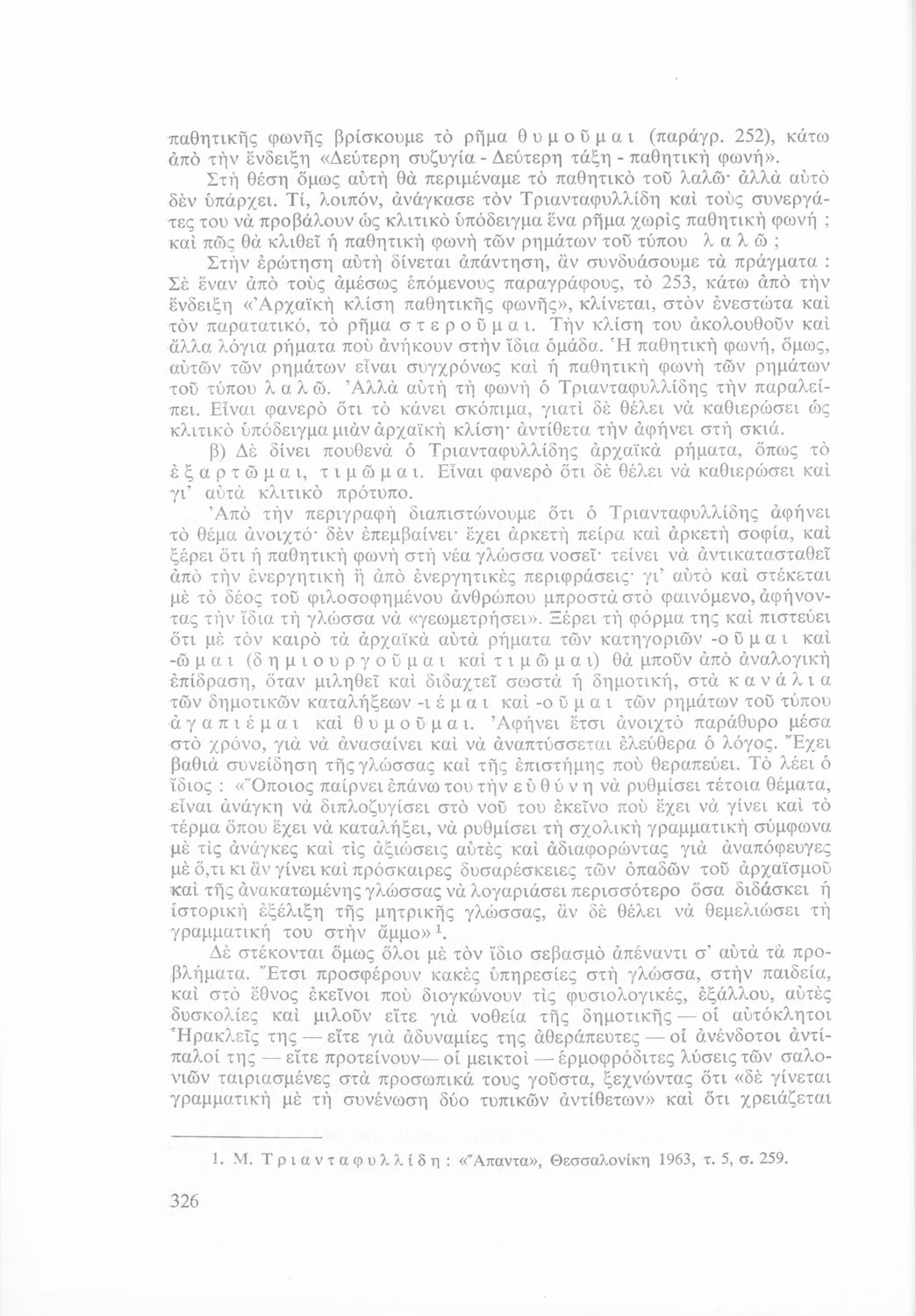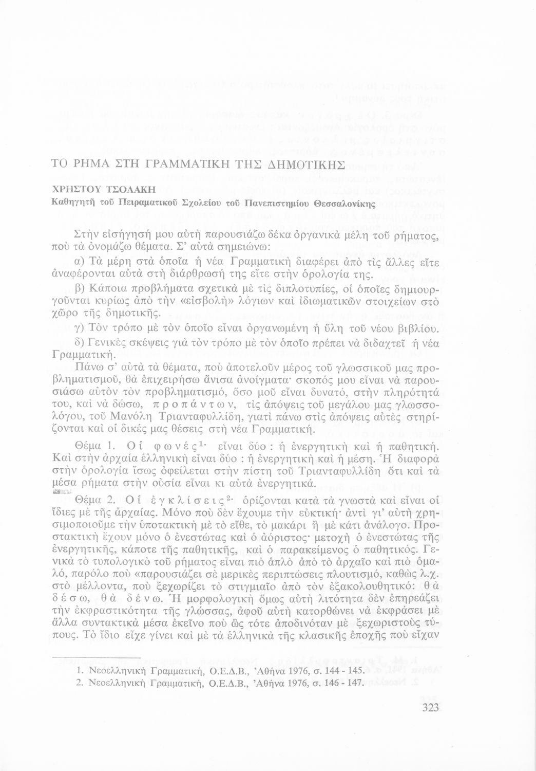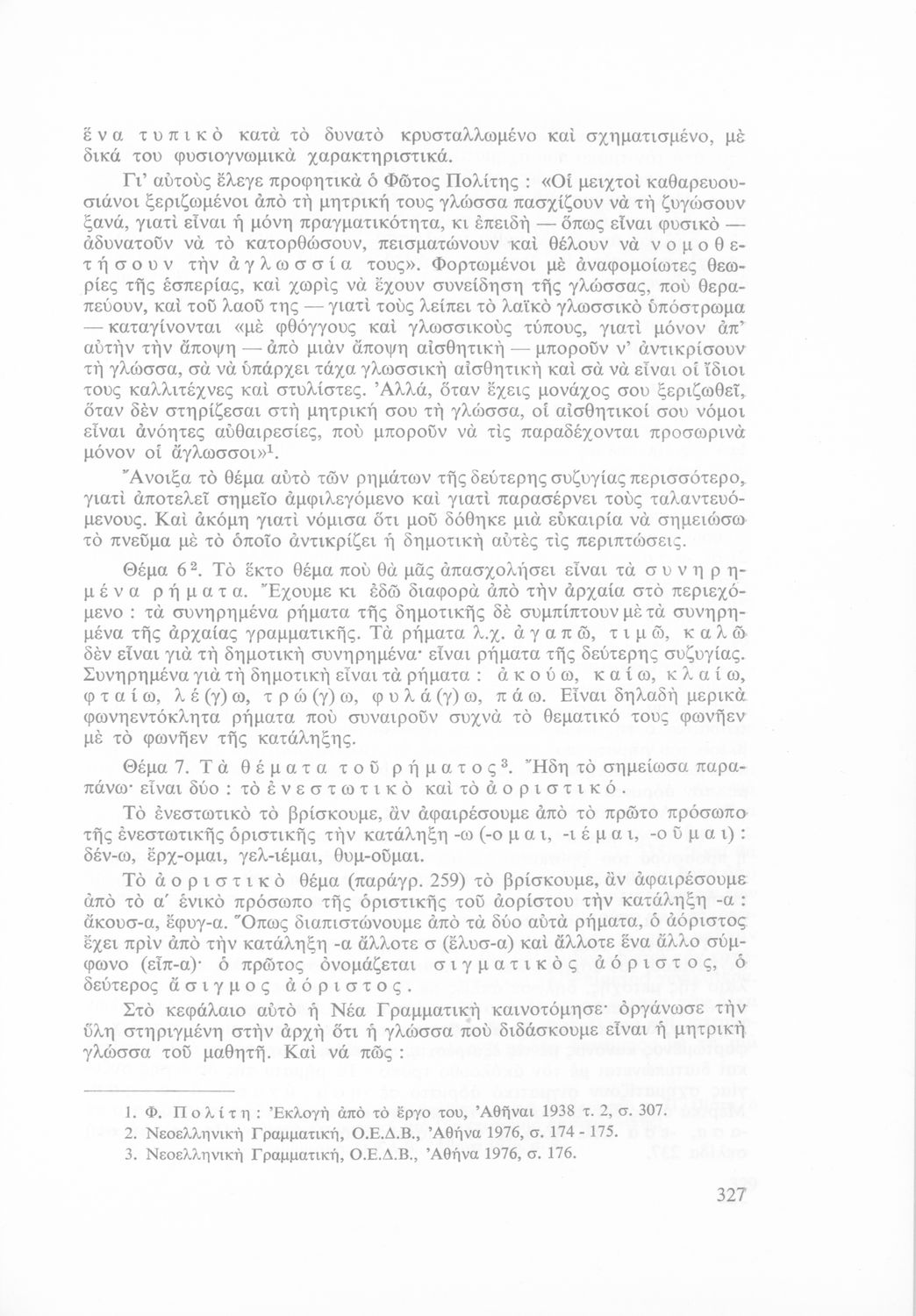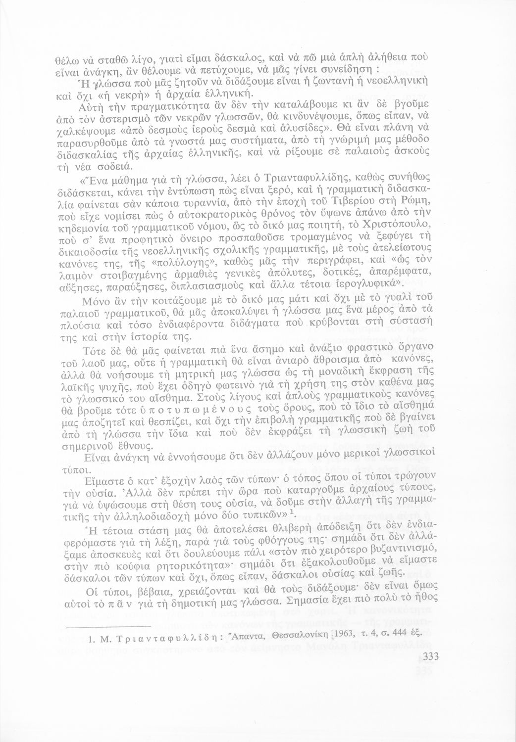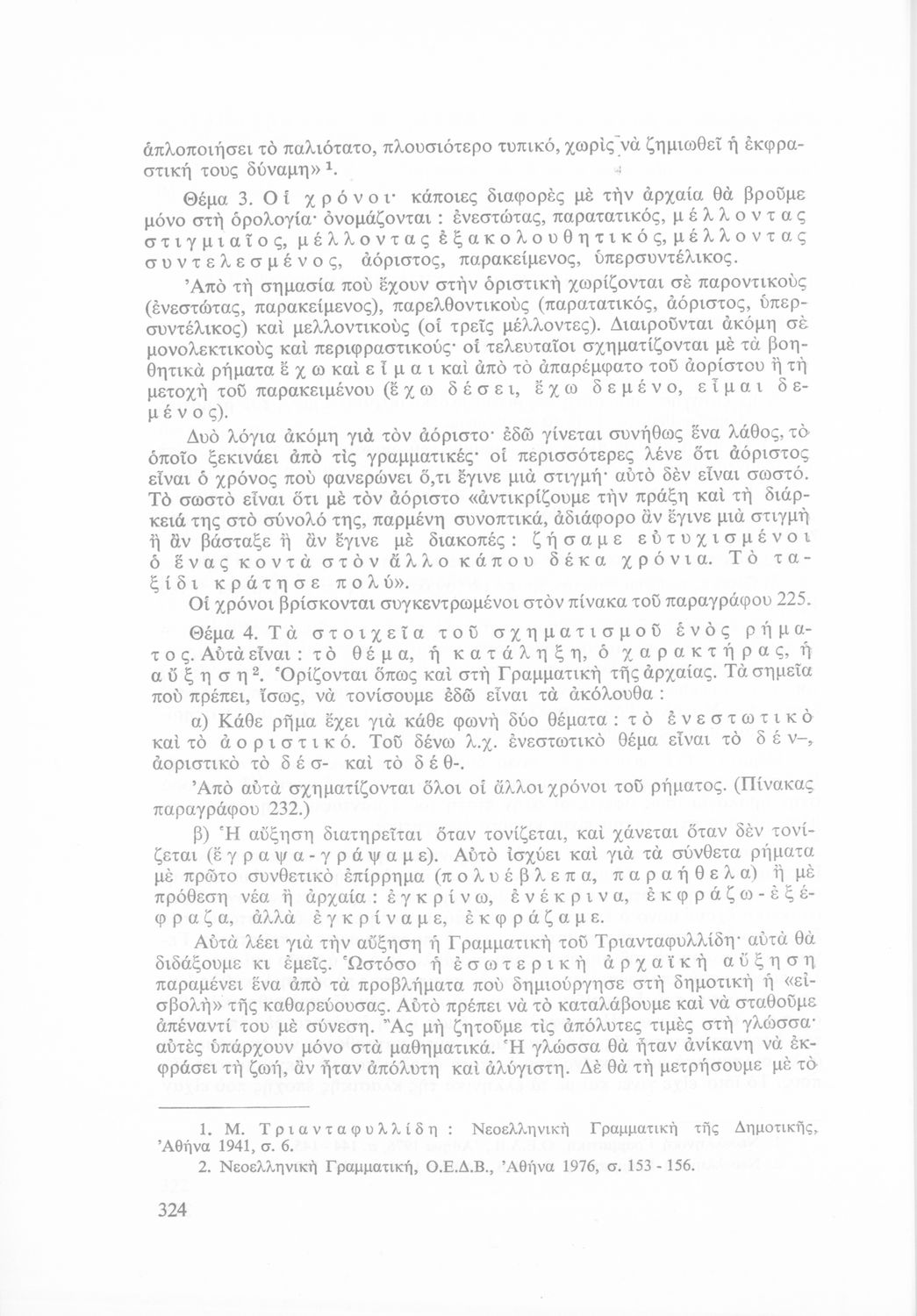Επιστημονικό σύγγραμμα που εξετάζει την εξέλιξη της ελληνικής γλώσσας από την αρχαιότητα ως την άλωση της Κωνσταντινούπολης. Ο συγγραφέας ήταν καθηγητής στο Εθνικό Πανεπιστήμιο.