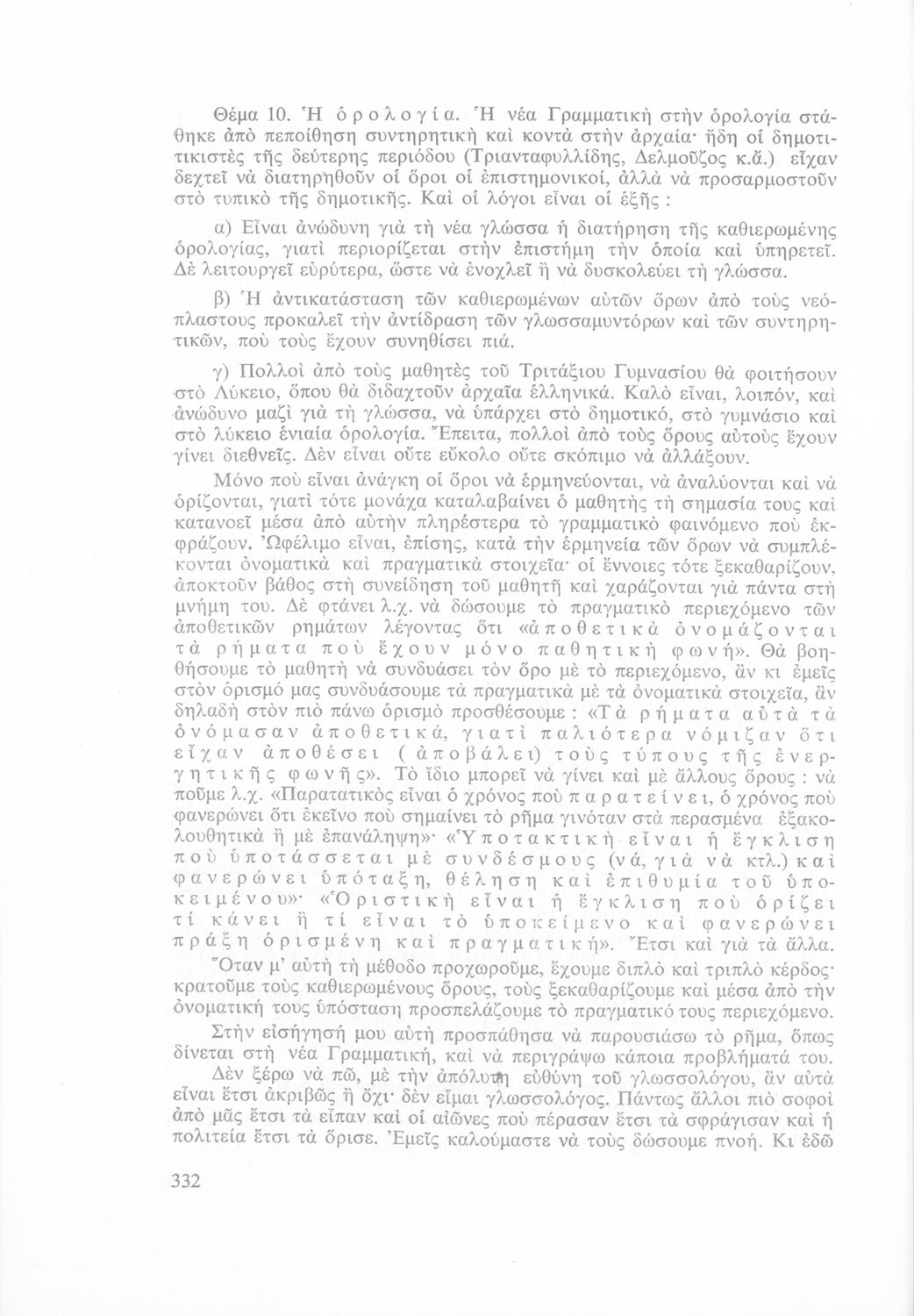 Έκδοση που περιέχει τα πρακτικά συνεδρίου που πραγματοποιήθηκε στις 19-20 Ιουνίου 1966 υπό την αιγίδα του περιοδικού Φιλόλογος. Οι εισηγήσεις εστιάζουν στους τρόπους διδασκαλίας της αρχαίας ελληνικής ...