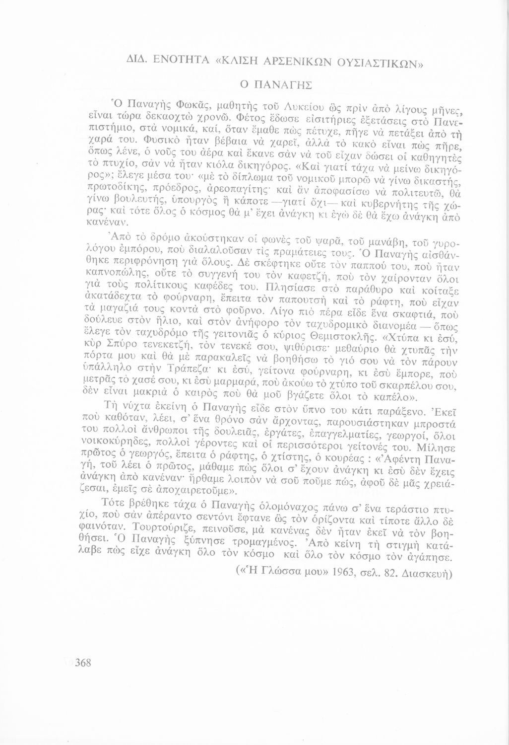 Σχολικό εγχειρίδιο Νέων Ελληνικών Δ΄ Γυμνασίου και Β΄ Αστικού Σχολείου που περιέχει πεζά και ποιήματα Ελλήνων συγγραφέων εμπνευσμένα από τη θρησκευτική και κοινωνική ζωή, την ελληνική μυθολογία, την αρχαία και