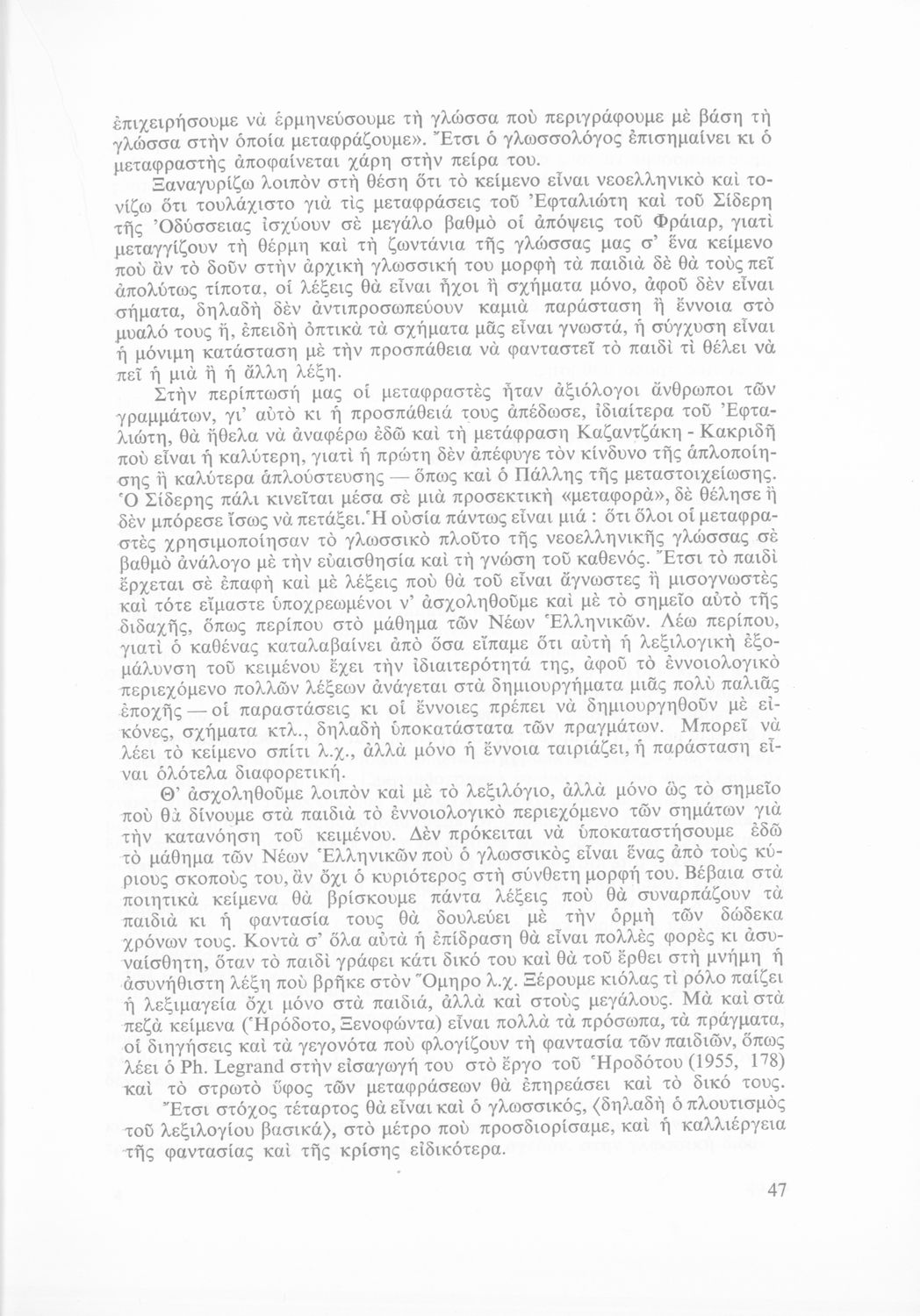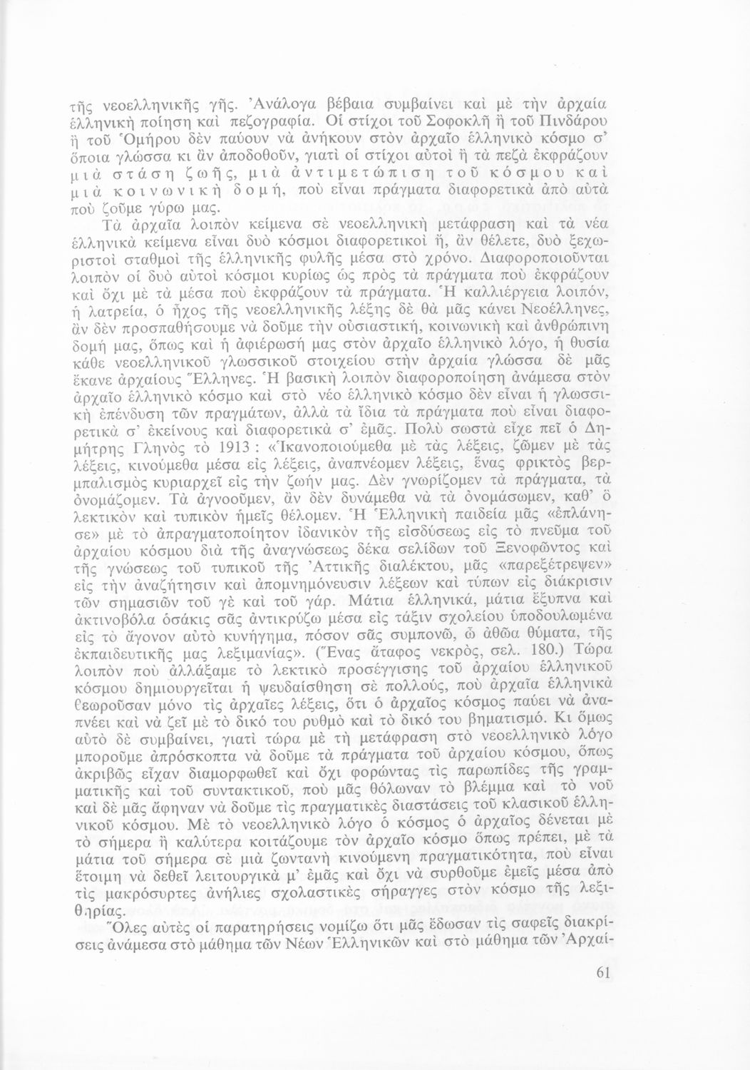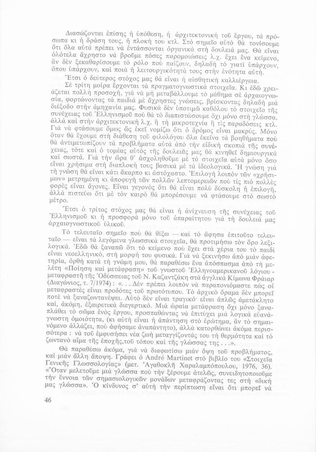Παρουσίαση περιεχομένου: Έκδοση του ΚΕΜΕ που αποσκοπεί στην "άμβλυνση των προβλημάτων που έχουν προκύψει από τη διδασκαλία των αρχαίων κειμένων από μεταφράσεις και τη διδασκαλία της νεοελληνικής γλώσσας και γραμματείας".