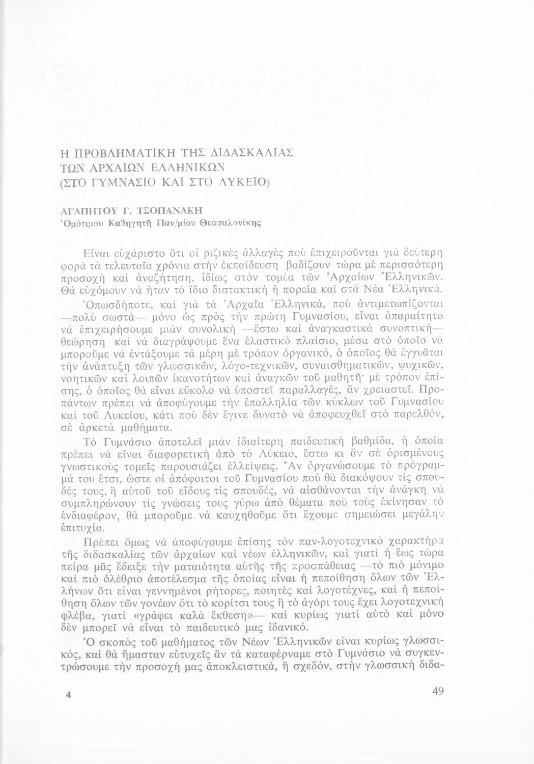 Σχολικό εγχειρίδιο Αρχαίων Ελληνικών για τα Ελληνικά Σχολεία που περιλαμβάνει αποσπάσματα κειμένων από την αρχαία ελληνική γραμματεία, επιγράμματα και γνωμικά.