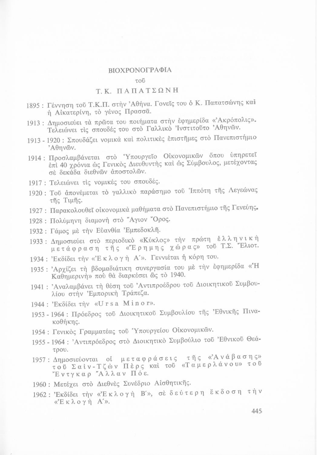 Κ. Ν. Παπανικολάου, Αλ. Γ. Παπαγεωργίου, Αλ. Μπεκιάρη, Εύα Πάντζαρη, Αχ. Λαζάρου, Ξ. Οικονομοπούλου, Μ. Κυνηγού, Αγγ. Στασινοπούλου, Σ. Κοκολάκη