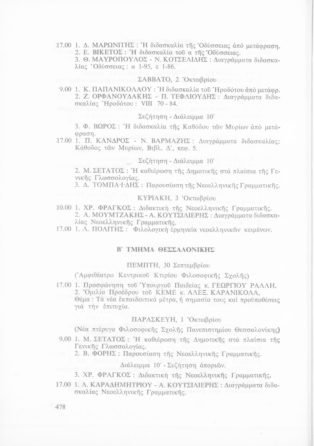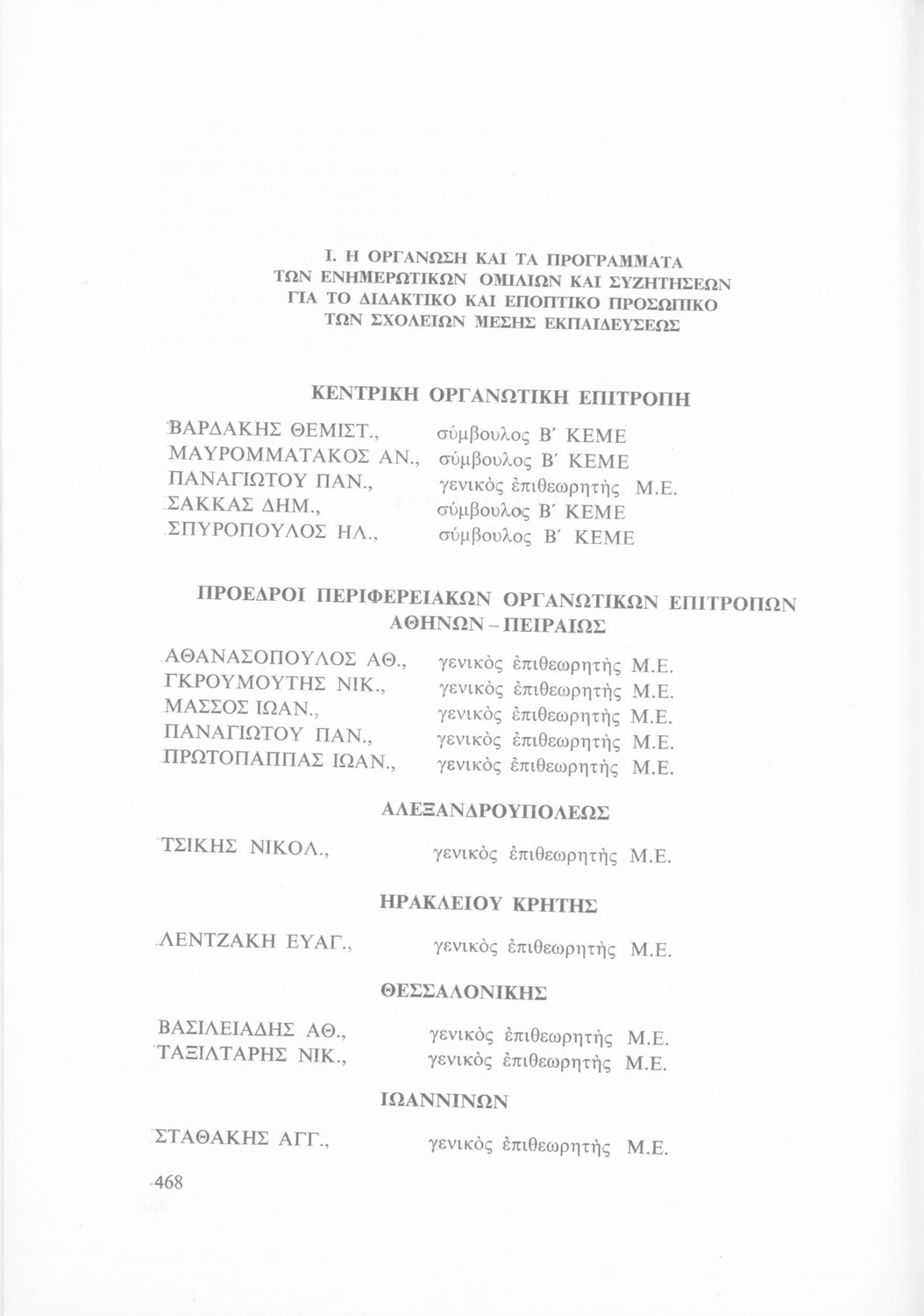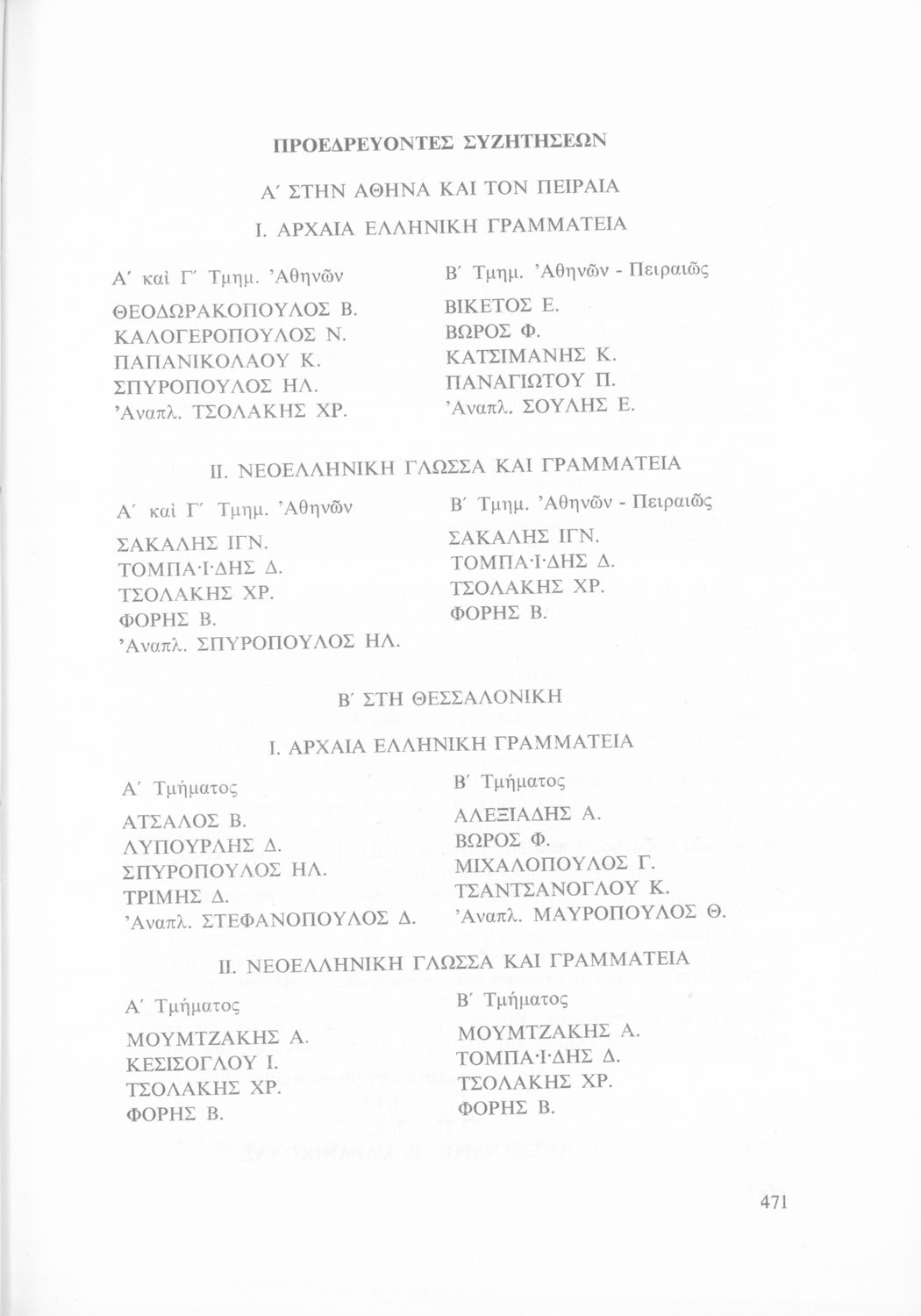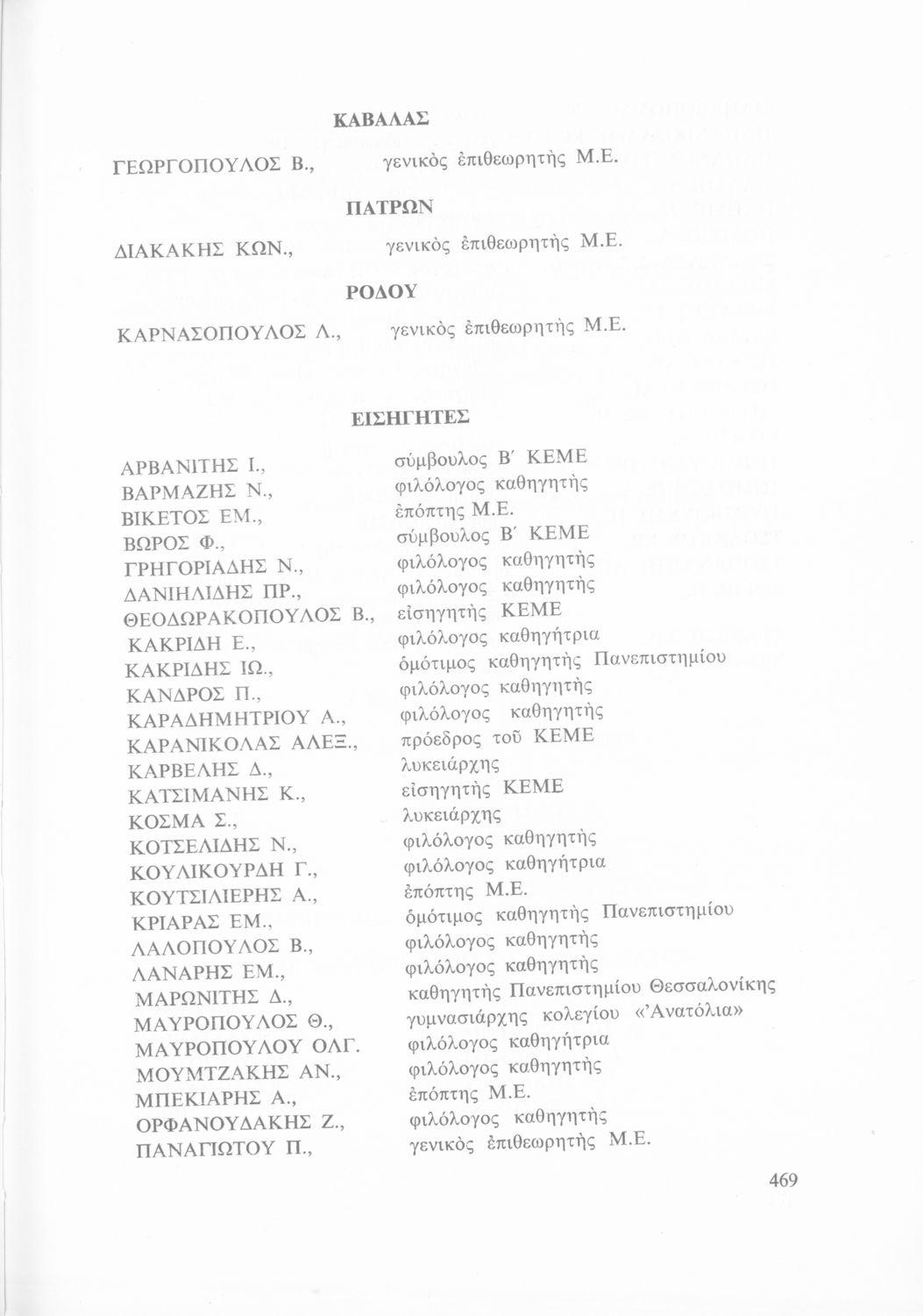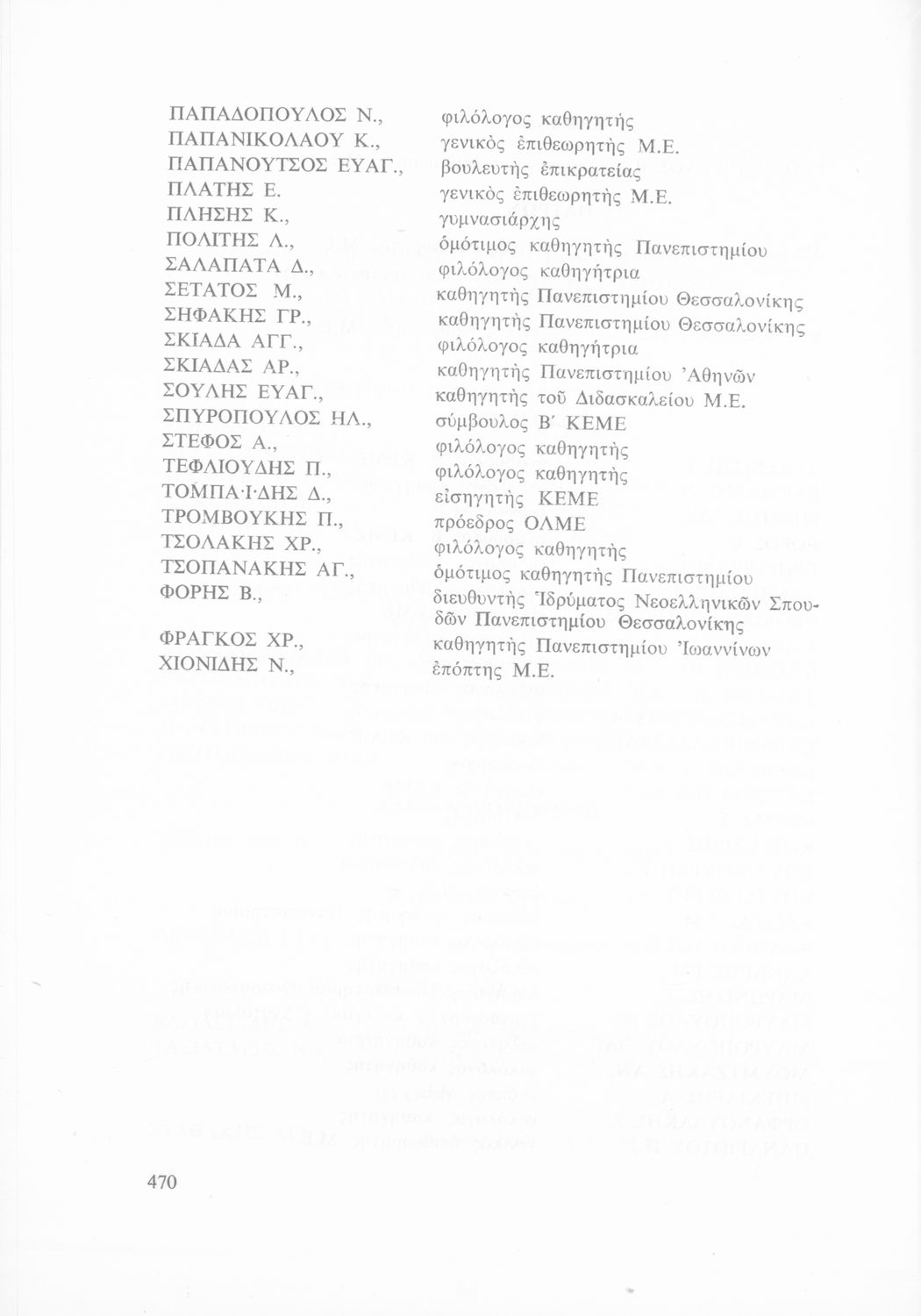 Κ. Ν. Παπανικολάου, Αλ. Γ. Παπαγεωργίου, Αλ. Μπεκιάρη, Εύα Πάντζαρη, Αχ. Λαζάρου, Ξ. Οικονομοπούλου, Μ. Κυνηγού, Αγγ. Στασινοπούλου, Σ. Κοκολάκη