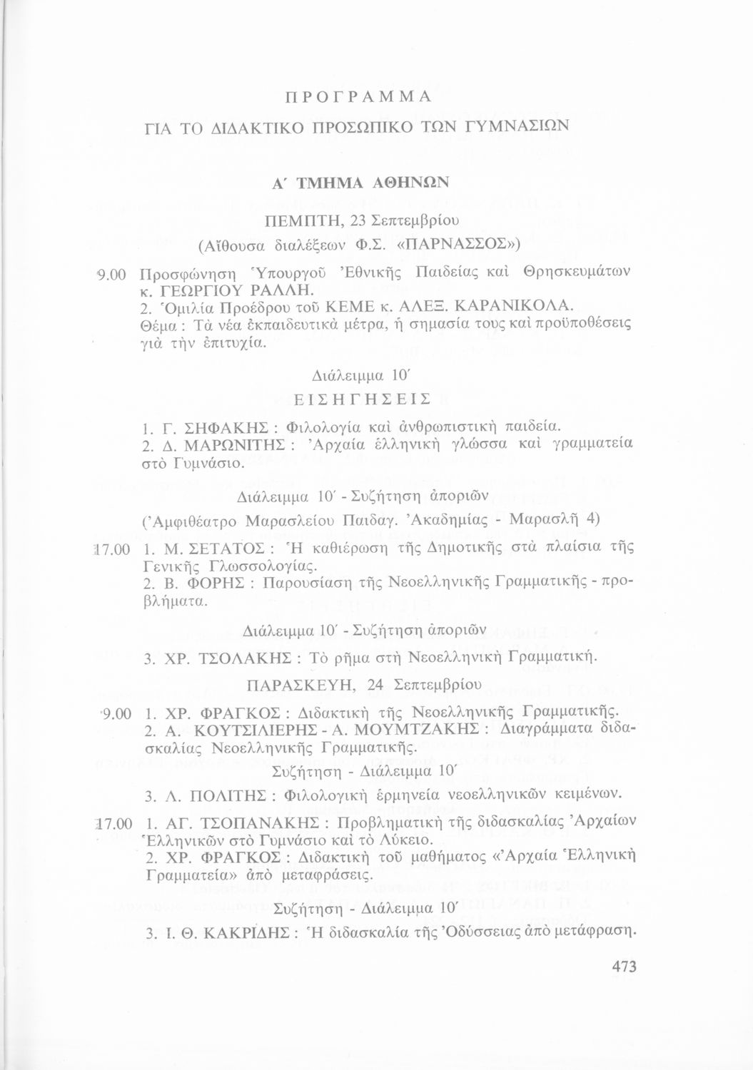 Εισηγήσεις Η Αρχαία Ελληνική Γραμματεία από Μετάφραση Η Νεοελληνική Γλώσσα και Γραμματεία