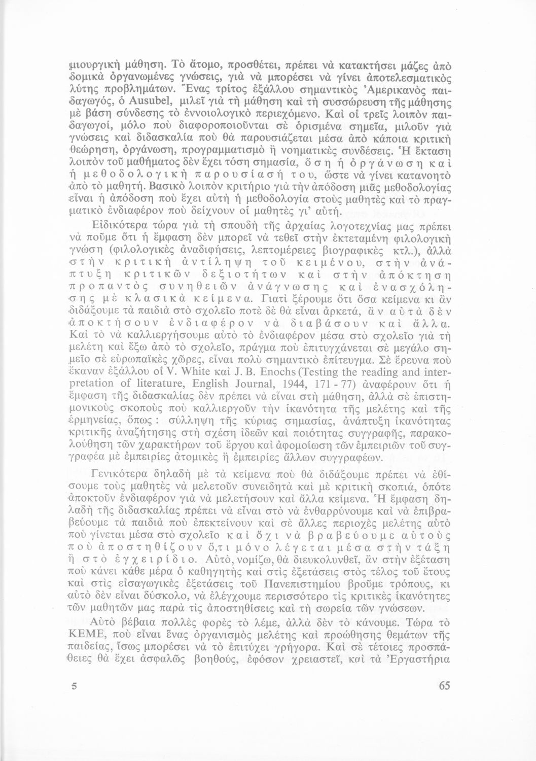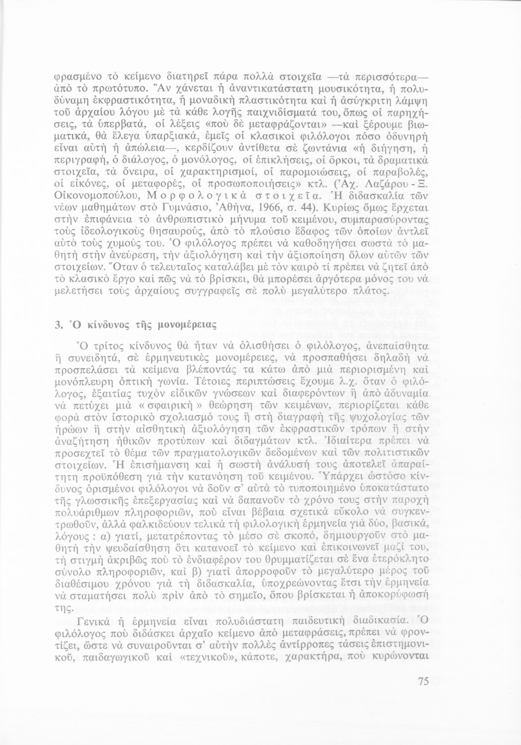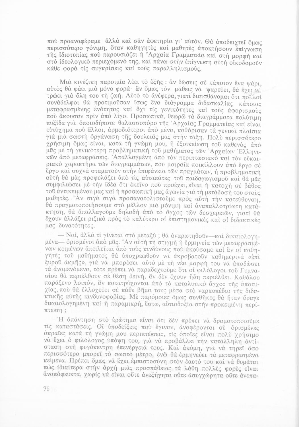 Βαθμίδα εκπαίδευσης: Δευτεροβάθμια Μάθημα: Αρχαία Ελληνικά Γλώσσα: Δημοτική Παρουσίαση περιεχομένου: Έκδοση του ΚΕΜΕ που αποσκοπεί στην "άμβλυνση των προβλημάτων που έχουν προκύψει από τη διδασκαλία των αρχαίων κειμένων από μεταφράσεις και τη διδασκαλία της νεοελληνικής γλώσσας και γραμματείας". |