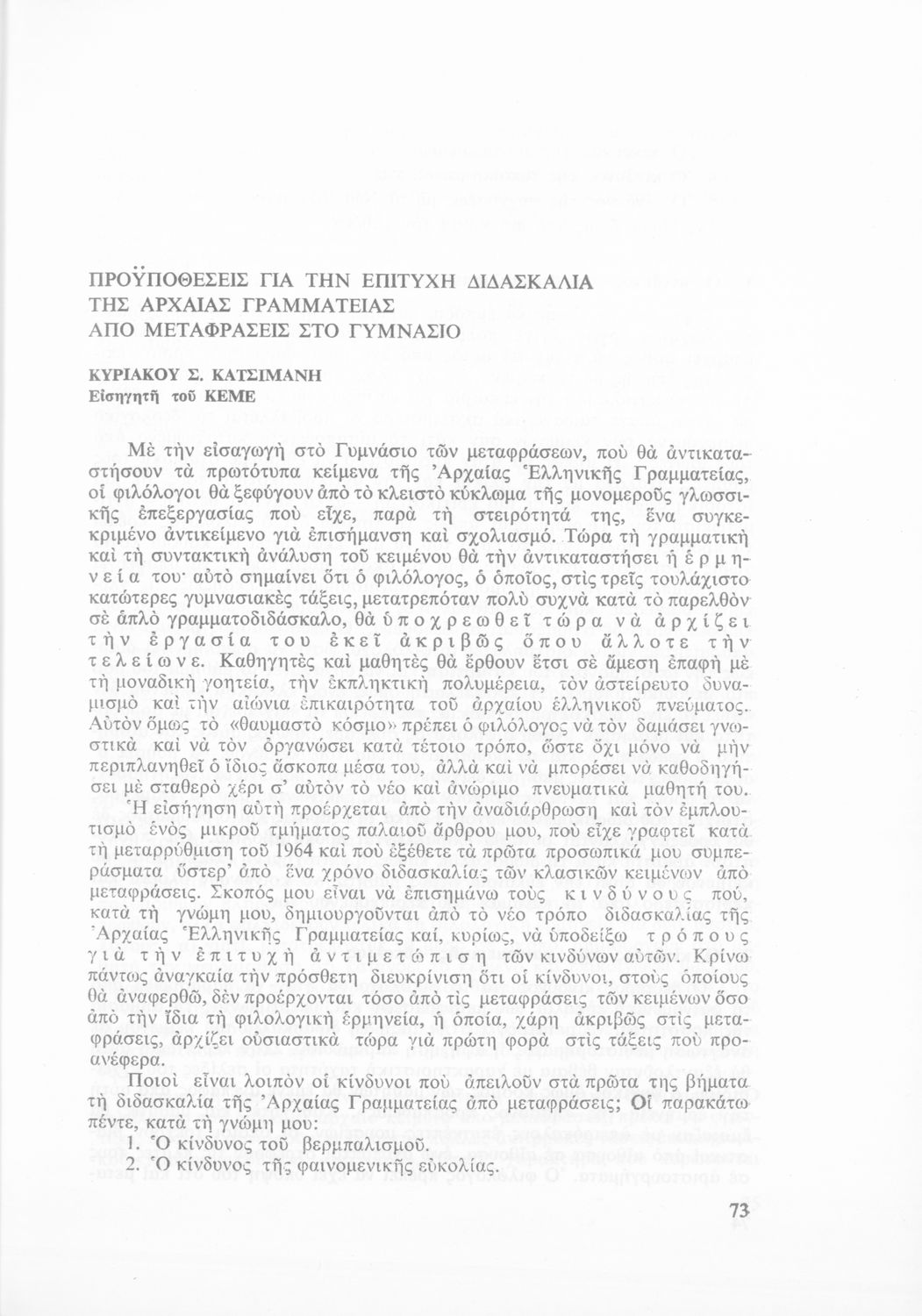Έκδοση του ΚΕΜΕ που αποσκοπεί στην "άμβλυνση των προβλημάτων που έχουν προκύψει από τη διδασκαλία των αρχαίων κειμένων από μεταφράσεις και τη διδασκαλία της νεοελληνικής γλώσσας και γραμματείας".