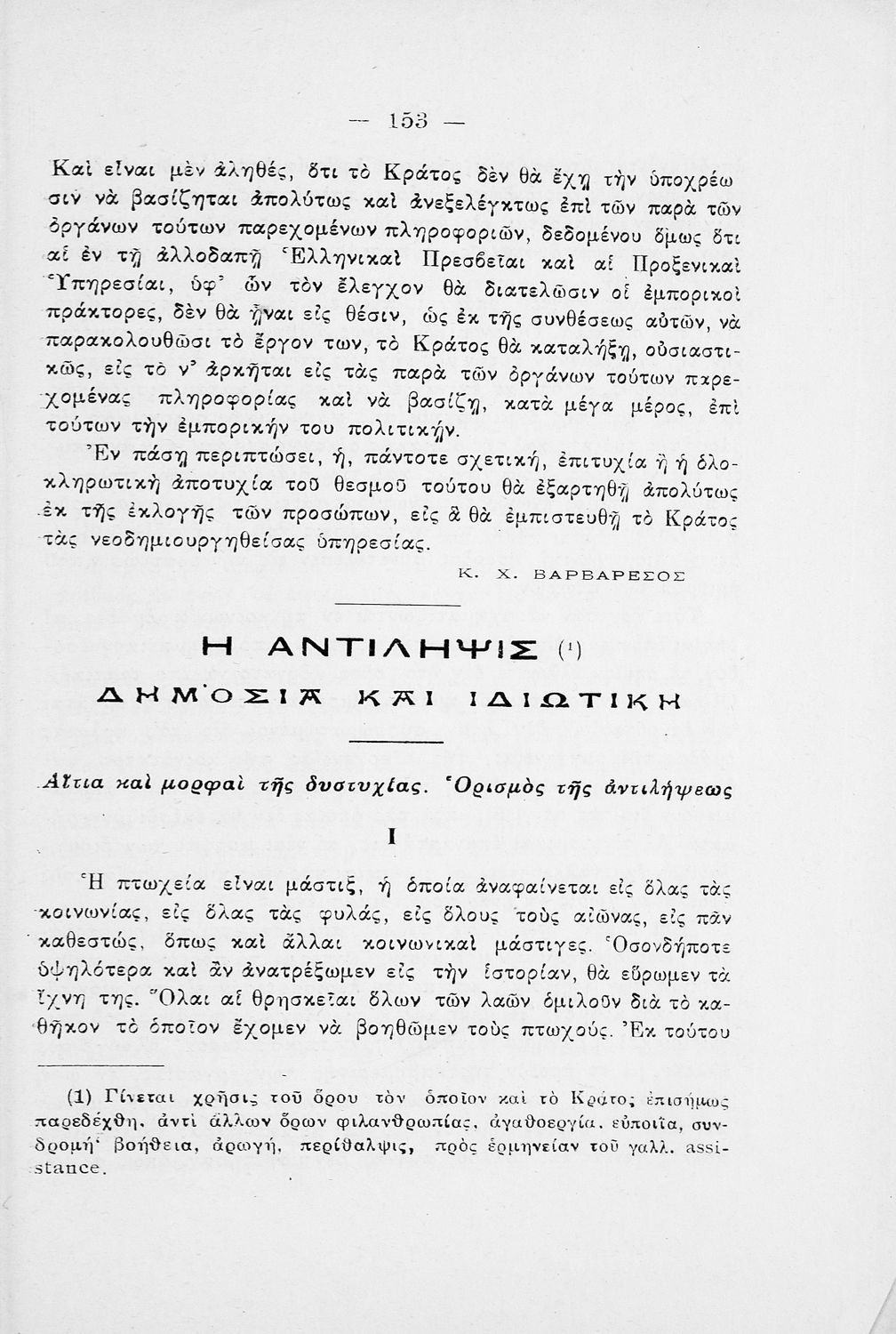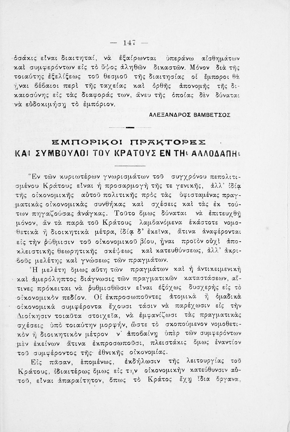 Παρουσίαση περιεχομένου: Σχολικό εγχειρίδιο που απευθύνεται στους μαθητές των Εμπορικών Σχολών και περιέχει αποσπάσματα κείμενων που κατά βάση δημοσιεύτηκαν στον περιοδικό και ημερήσιο τύπο και σχετίζονται με το εμπόριο και την οικονομία. Ο συγγραφέας υπήρξε Υποδιευθυντής Δημ. Εμπορικής Σχολής.