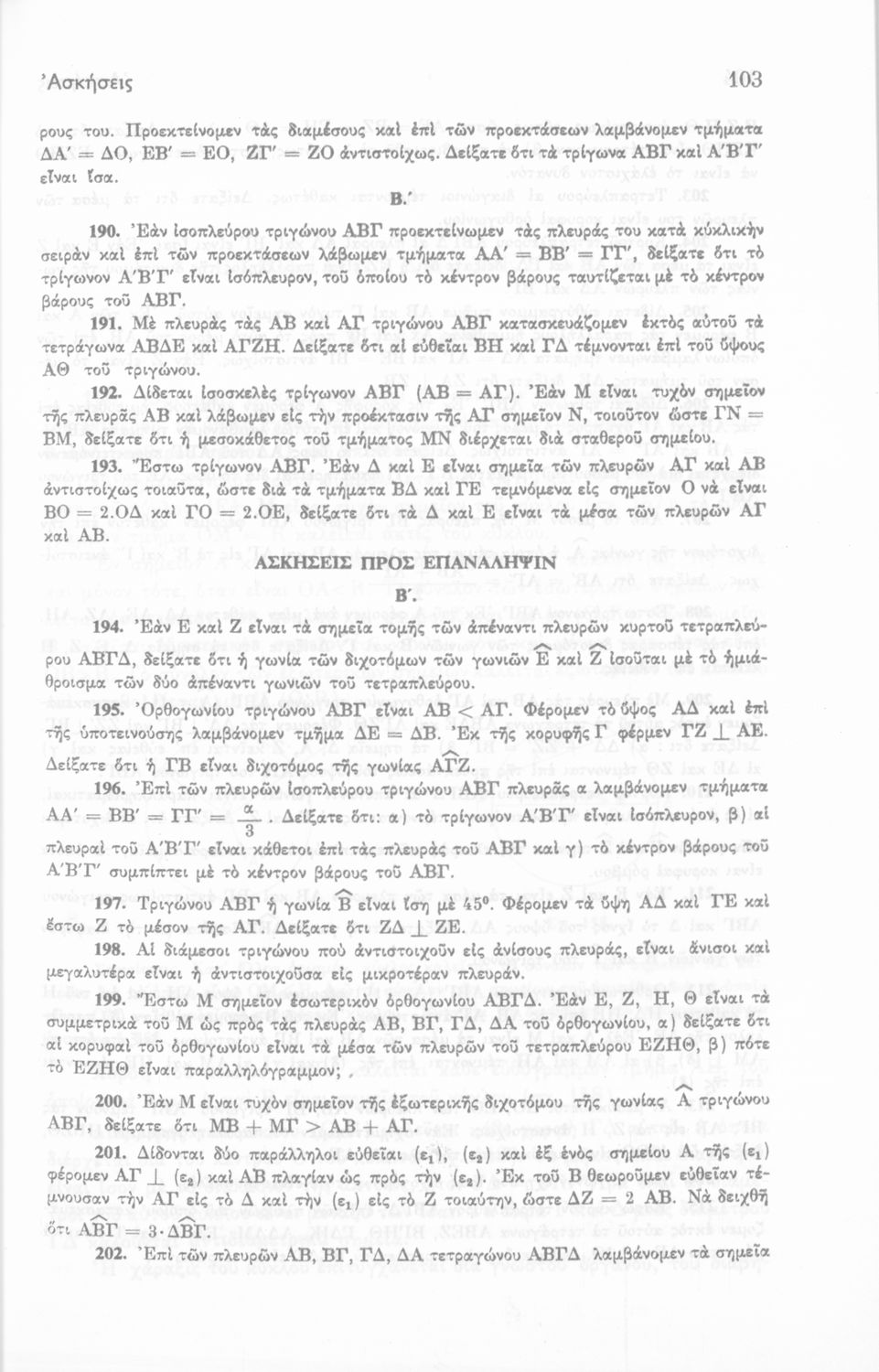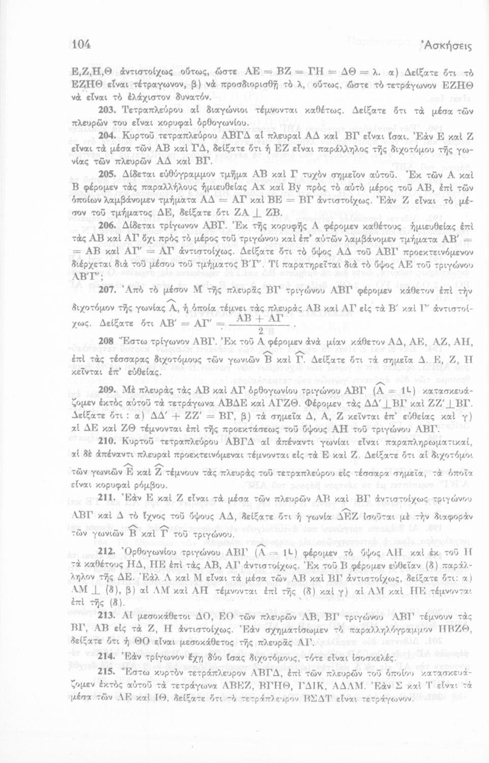 Ευκλείδειος γεωμετρία Γ΄ Γυμνασίου και Δ΄, Ε΄, ΣΤ΄ Γυμνασίου θεωρητικής κατευθύνσεως