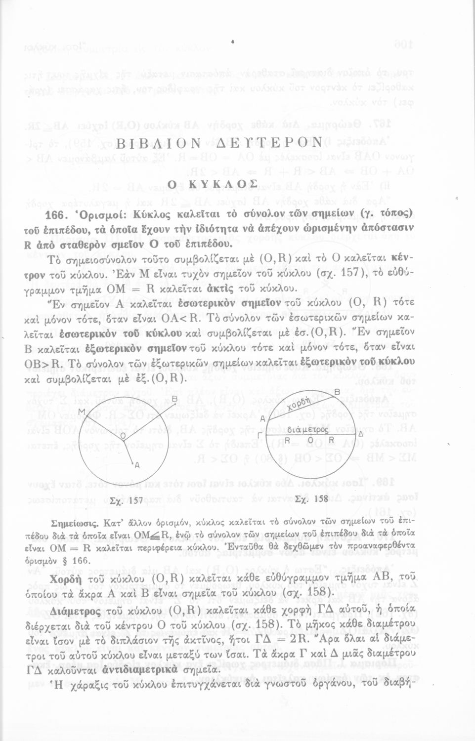 Σχολικό εγχειρίδιο Γεωμετρίας για τις Γ΄, Δ΄, Ε΄, ΣΤ΄ Γυμνασίου που περιλαμβάνει θεωρία και ασκήσεις και είναι χωρισμένο σε Επιπεδομετρία και Στερεομετρία. Φέρει το σύμβολο της δικτατορίας.