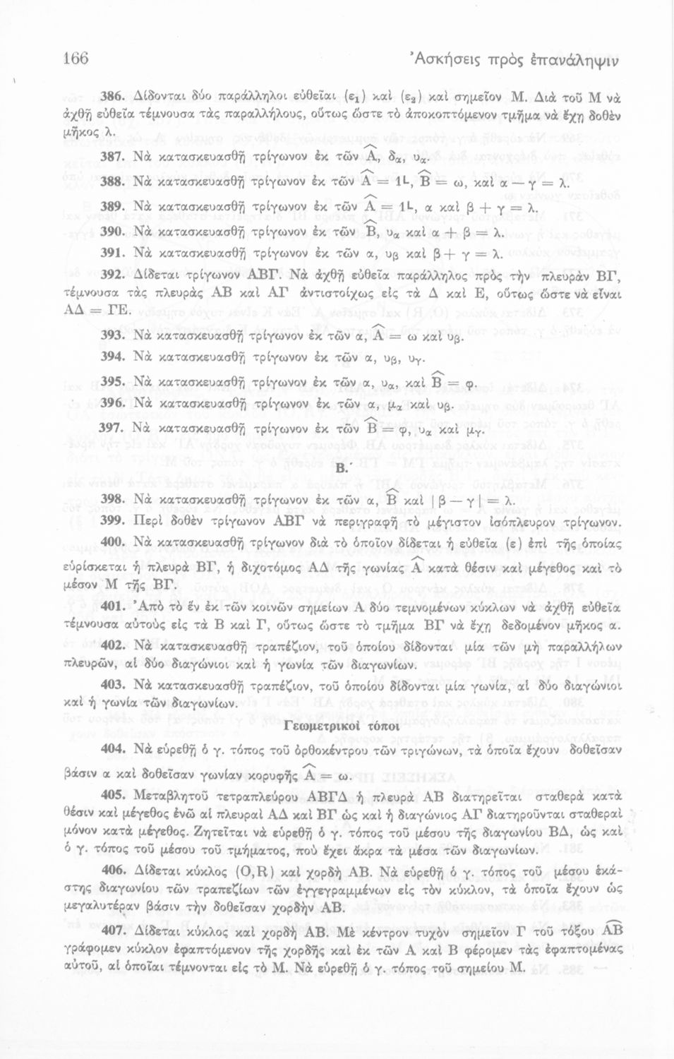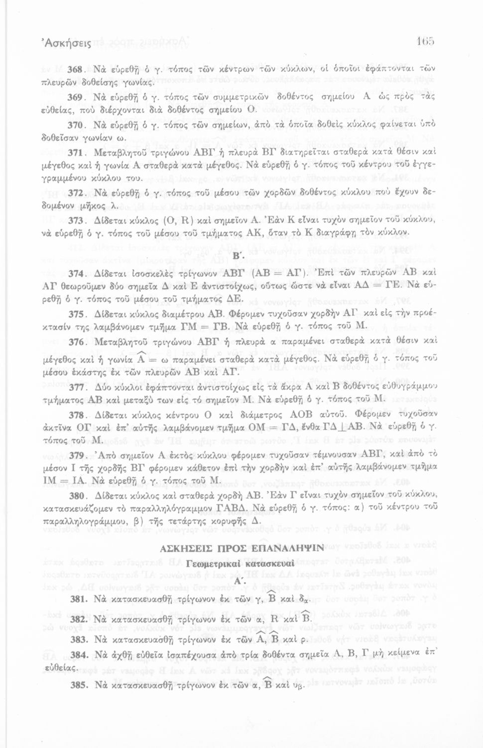 Ευκλείδειος γεωμετρία Γ΄ Γυμνασίου και Δ΄, Ε΄, ΣΤ΄ Γυμνασίου θεωρητικής κατευθύνσεως