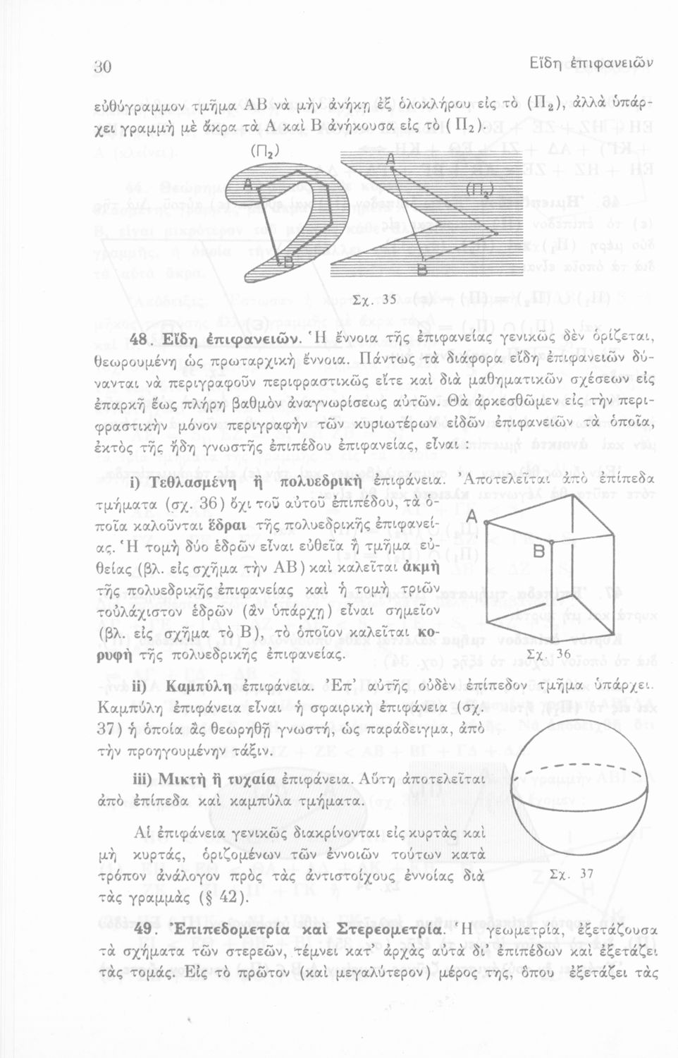 Σχολικό εγχειρίδιο Γεωμετρίας για τις Γ΄, Δ΄, Ε΄, ΣΤ΄ Γυμνασίου που περιλαμβάνει θεωρία και ασκήσεις και είναι χωρισμένο σε Επιπεδομετρία και Στερεομετρία.