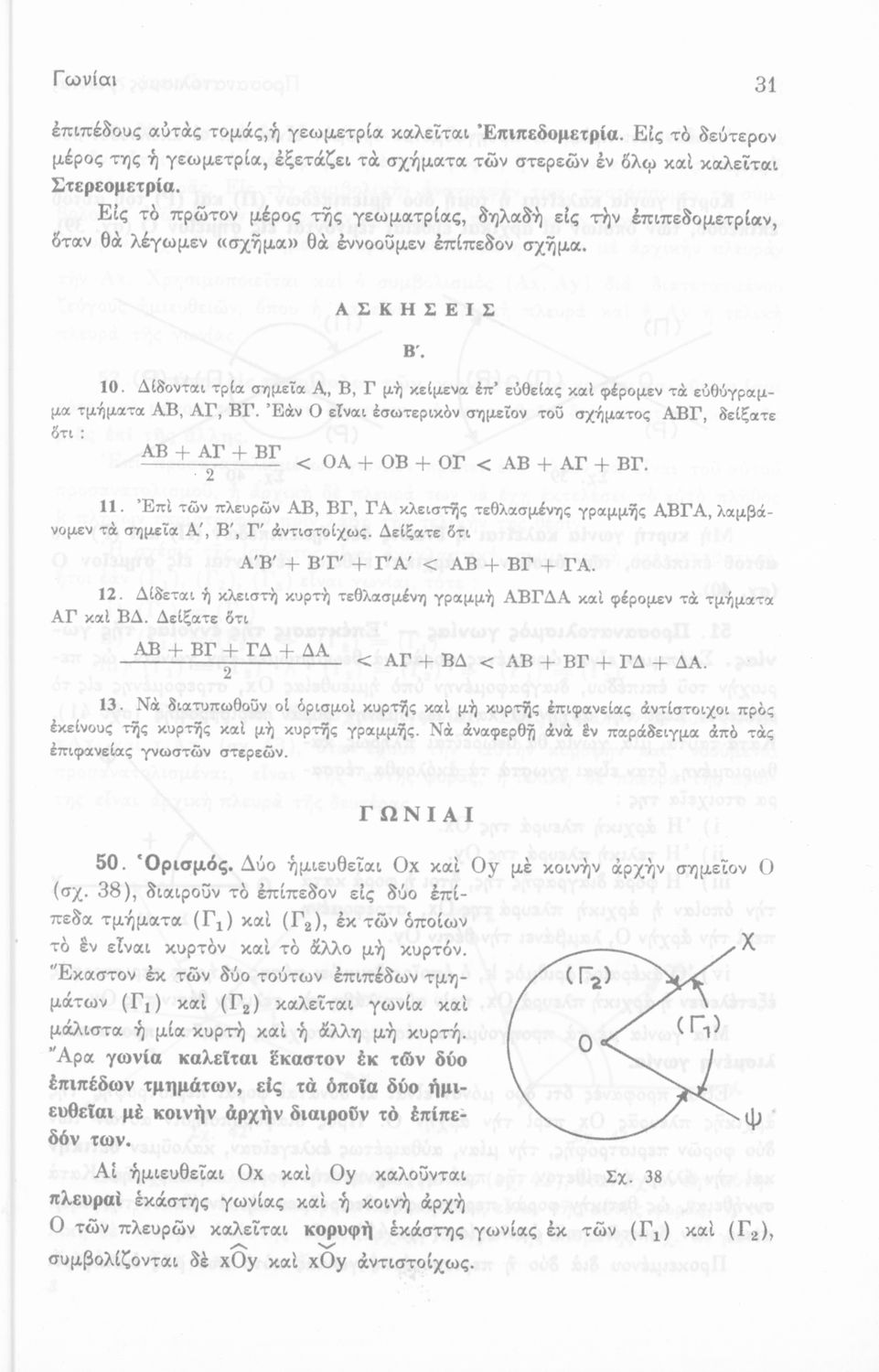 Ευκλείδειος γεωμετρία Γ΄ Γυμνασίου και Δ΄, Ε΄, ΣΤ΄ Γυμνασίου θεωρητικής κατευθύνσεως