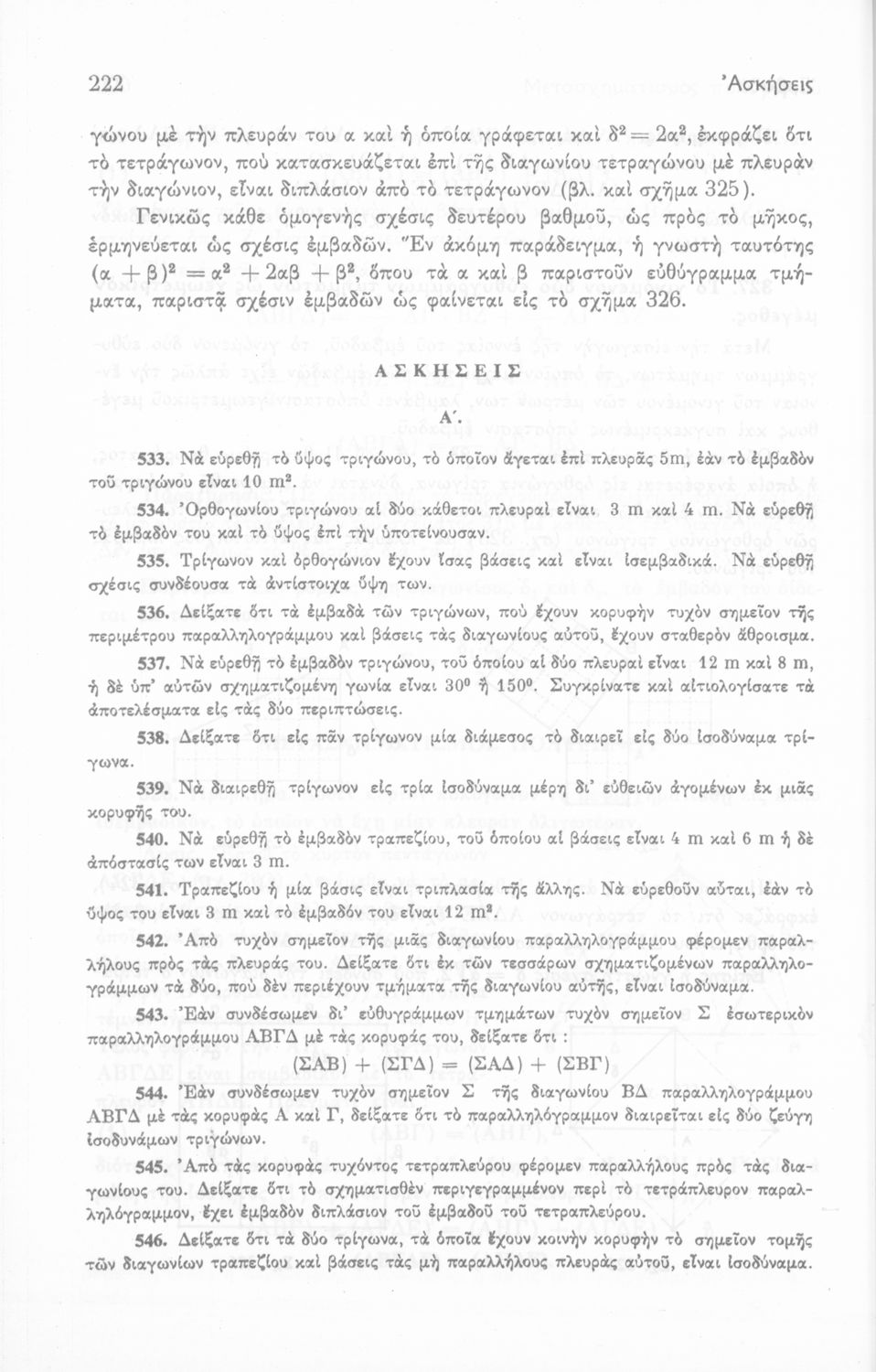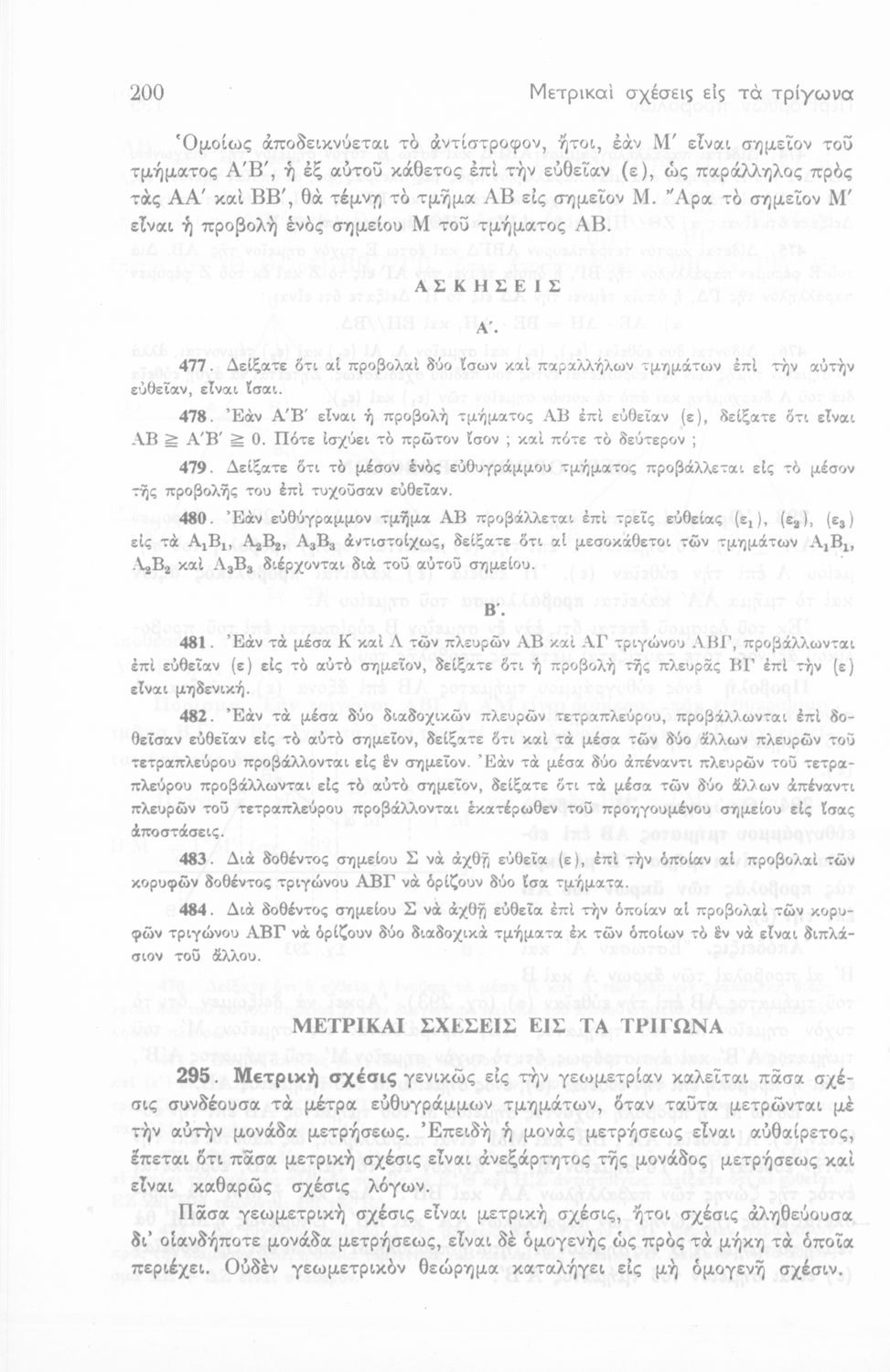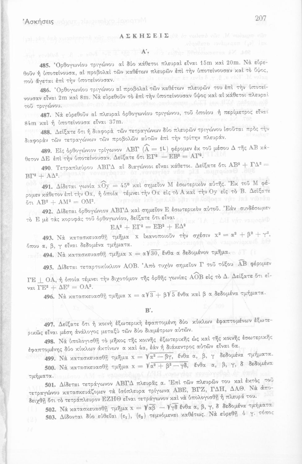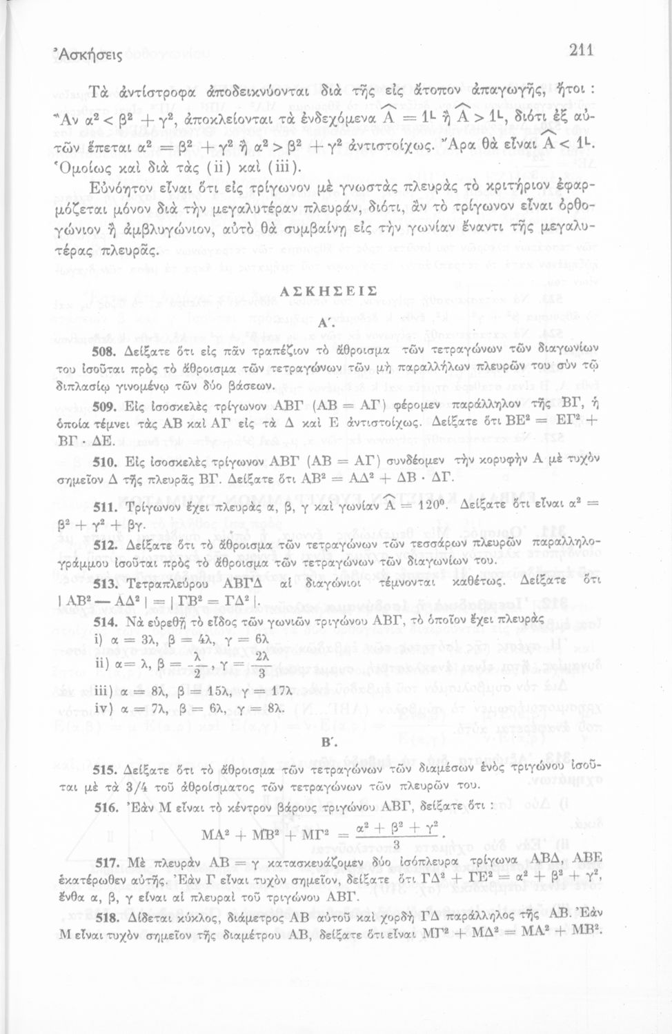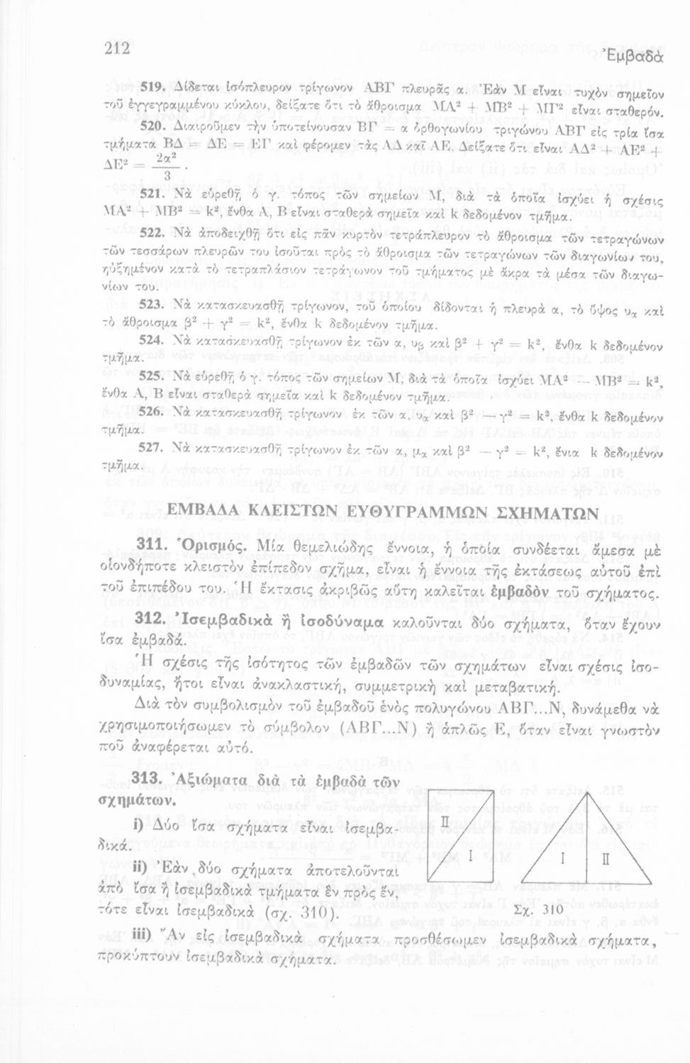 Ευκλείδειος γεωμετρία Γ΄ Γυμνασίου και Δ΄, Ε΄, ΣΤ΄ Γυμνασίου θεωρητικής κατευθύνσεως