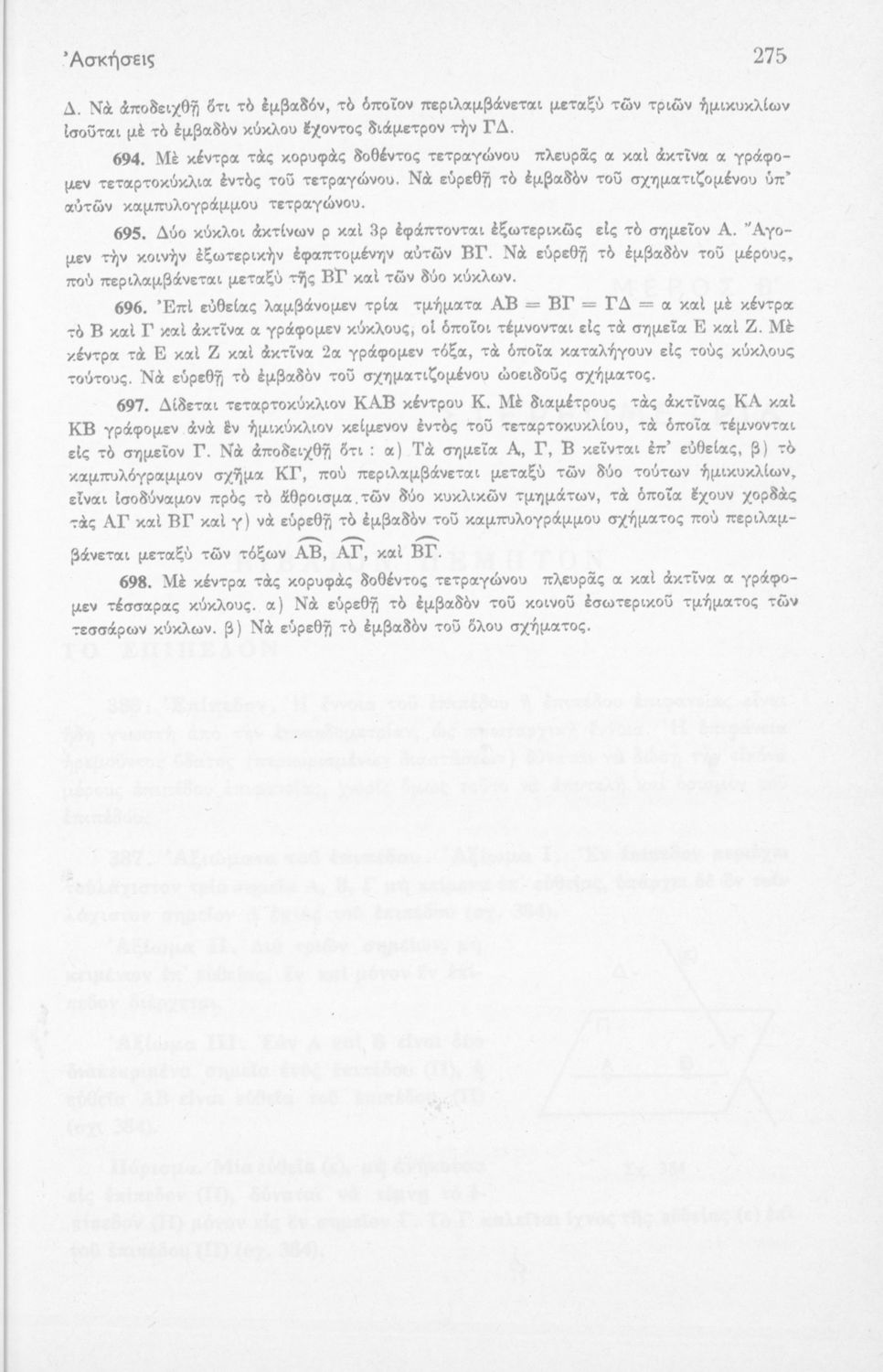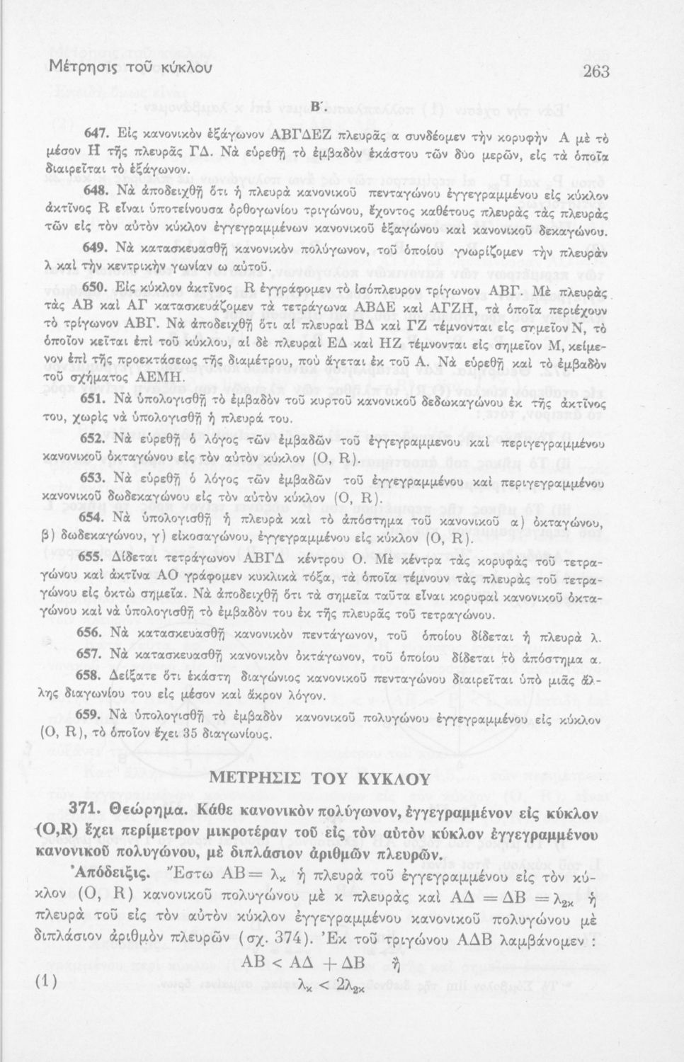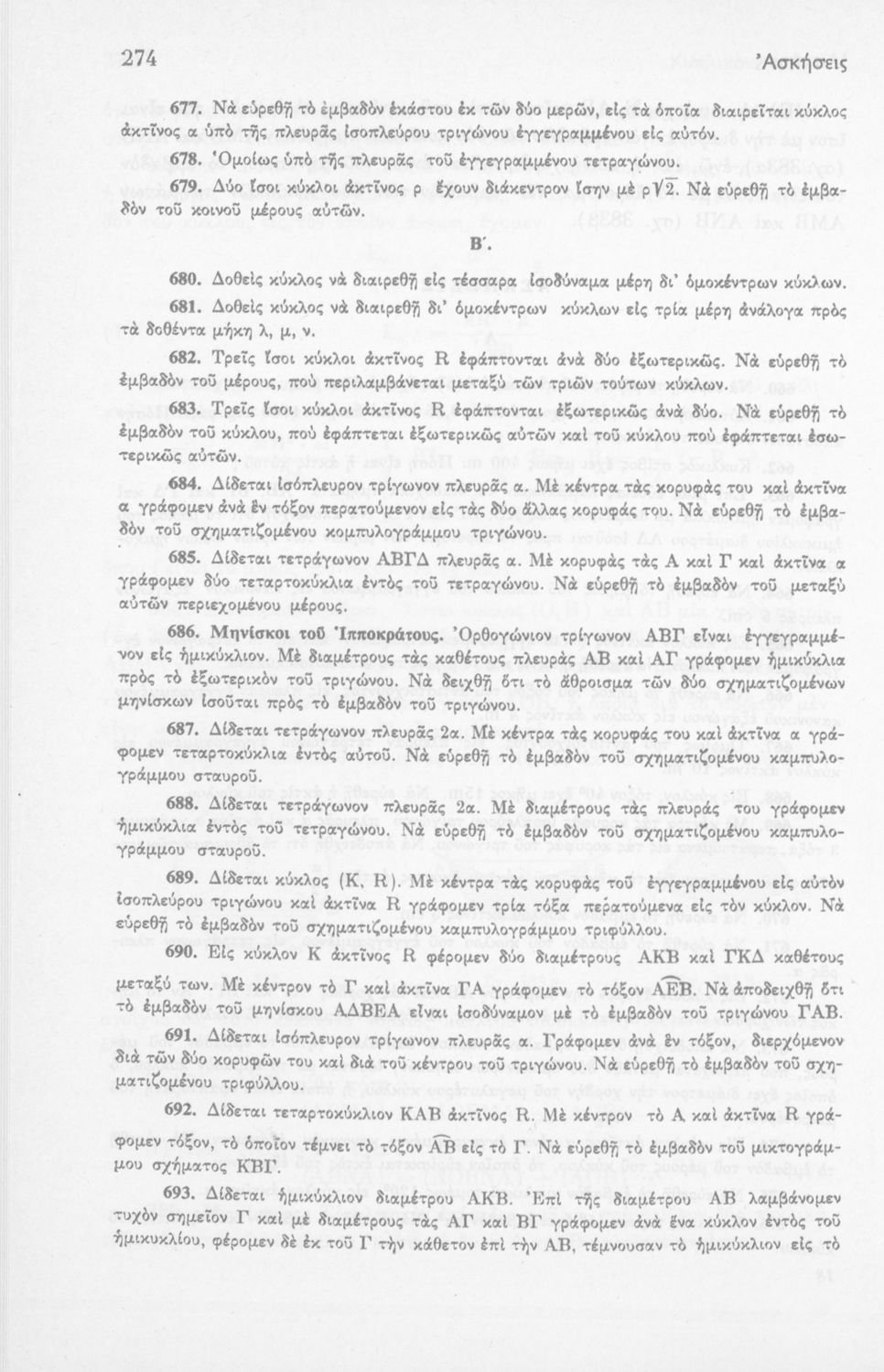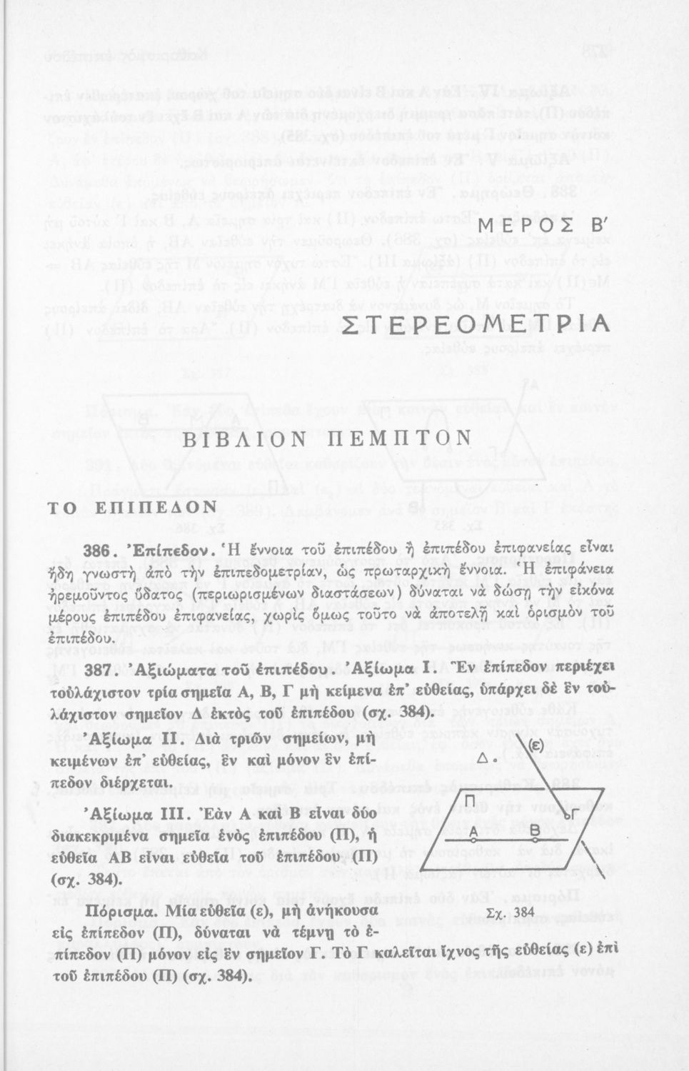Σχολικό εγχειρίδιο Γεωμετρίας για τις Γ΄, Δ΄, Ε΄, ΣΤ΄ Γυμνασίου που περιλαμβάνει θεωρία και ασκήσεις και είναι χωρισμένο σε Επιπεδομετρία και Στερεομετρία.