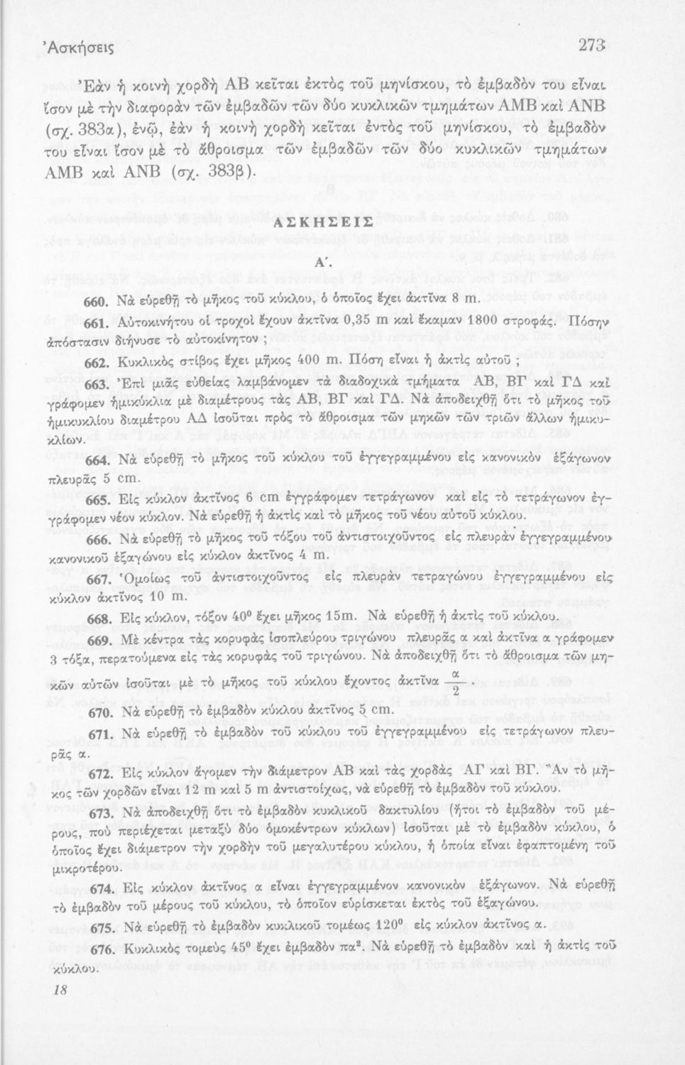 LDR 01276 2200217 4500 035 ## _a01-17570 040 ## _aΙνστιτούτο Εκπαιδευτικής Πολιτικής 041 ## _ael 100 ## _aΧρ. Γ. Παπανικολάου 110 ## _a17570 245 0# _aΕυκλείδειος γεωμετρία Γ΄ Γυμνασίου και Δ΄, Ε΄, ΣΤ΄ Γυμνασίου θεωρητικής κατευθύνσεως 250 ## _a1η Έκδοση 260 ## _aΑθήνα _bΟργανισμός Εκδόσεως Διδακτικών Βιβλίων _c1975 300 ## _a395 _bΣκίτσα (ασπρόμαυρα) _c23 520 ## _aΣχολικό εγχειρίδιο Γεωμετρίας για τις Γ΄, Δ΄, Ε΄, ΣΤ΄ Γυμνασίου που περιλαμβάνει θεωρία και ασκήσεις και είναι χωρισμένο σε Επιπεδομετρία και Στερεομετρία. 521 ## _aΓ' Γυμνασίου / Δ' Γυμνασίου / Ε' Γυμνασίου / ΣΤ' Γυμνασίου 522 ## _aΕλλάδα 546 ## _aΑπλή καθαρεύουσα 563 ## _aΜαλακό Εξώφυλλο 583 ## _a2616/7-6-1975 _c1975 650 #4 _aΕμβαδόν _aΚύκλος _aΌγκος _aΠολύγωνα _aΠροβολή