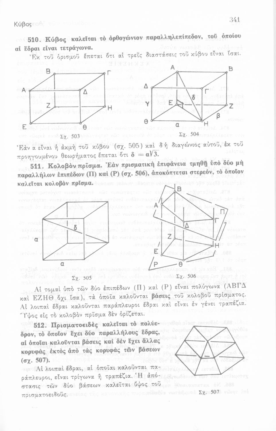 Σχολικό εγχειρίδιο Γεωμετρίας για τις Γ΄, Δ΄, Ε΄, ΣΤ΄ Γυμνασίου που περιλαμβάνει θεωρία και ασκήσεις και είναι χωρισμένο σε Επιπεδομετρία και Στερεομετρία.