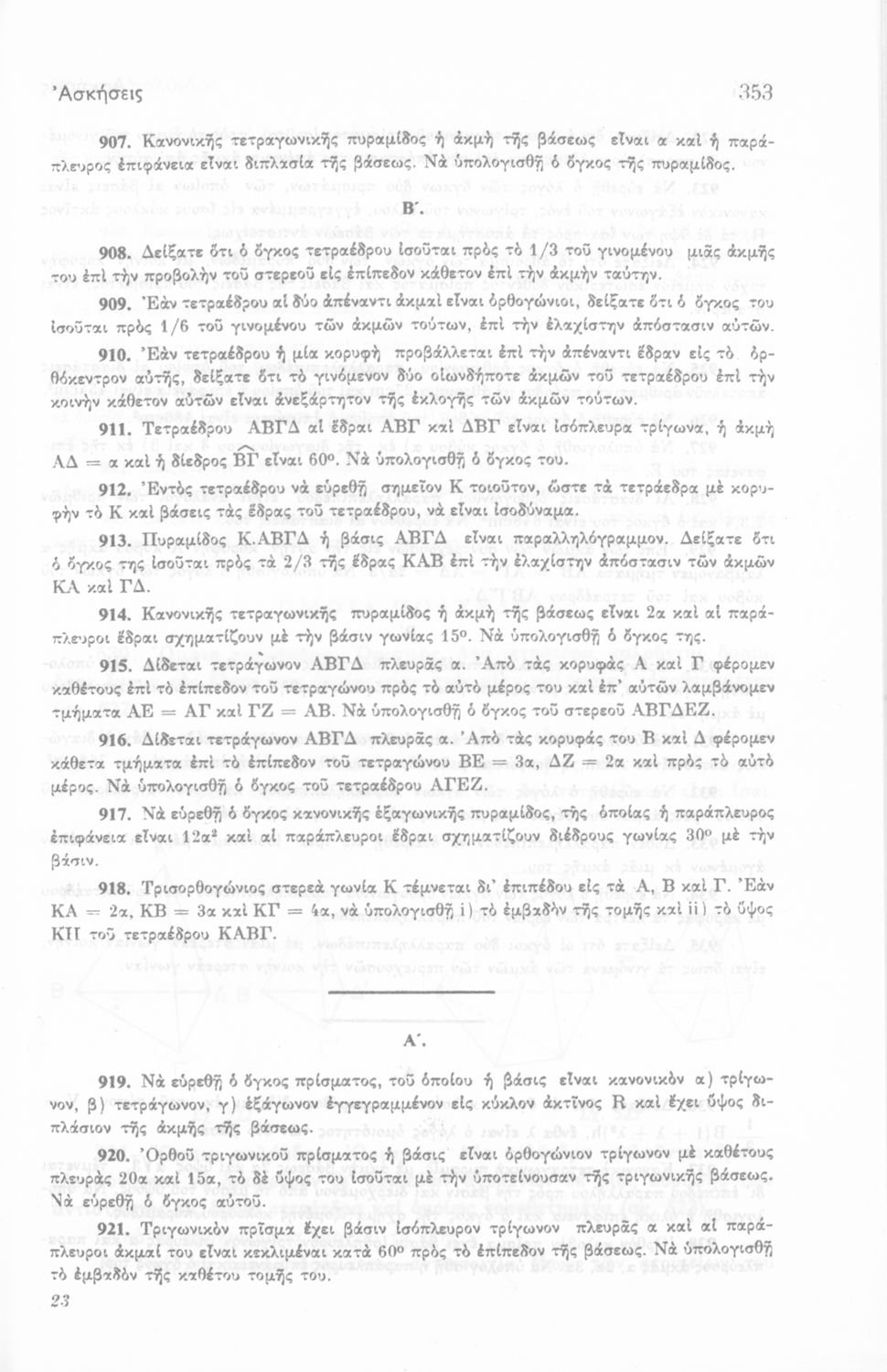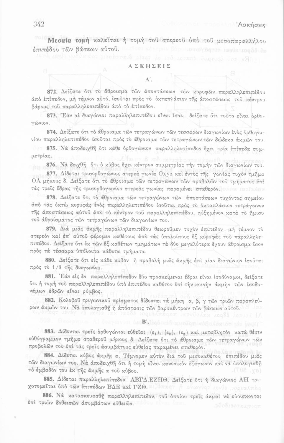 Σχολικό εγχειρίδιο Γεωμετρίας για τις Δ΄, Ε΄ και ΣΤ΄ Γυμνασίου που περιλαμβάνει αξιώματα, θεωρήματα και κατασκευές και είναι χωρισμένο σε γεωμετρία επιπέδου και γεωμετρία χώρου.