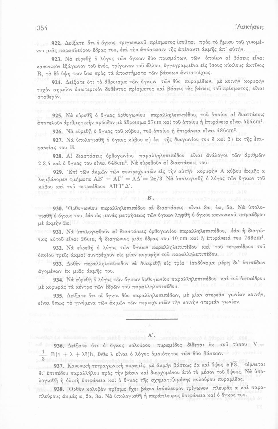 Ευκλείδειος γεωμετρία Γ΄ Γυμνασίου και Δ΄, Ε΄, ΣΤ΄ Γυμνασίου θεωρητικής κατευθύνσεως