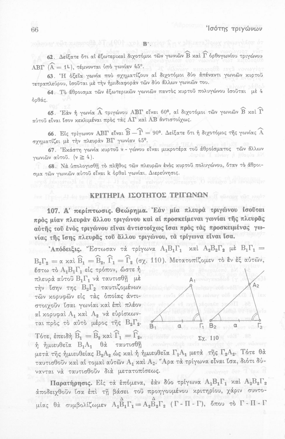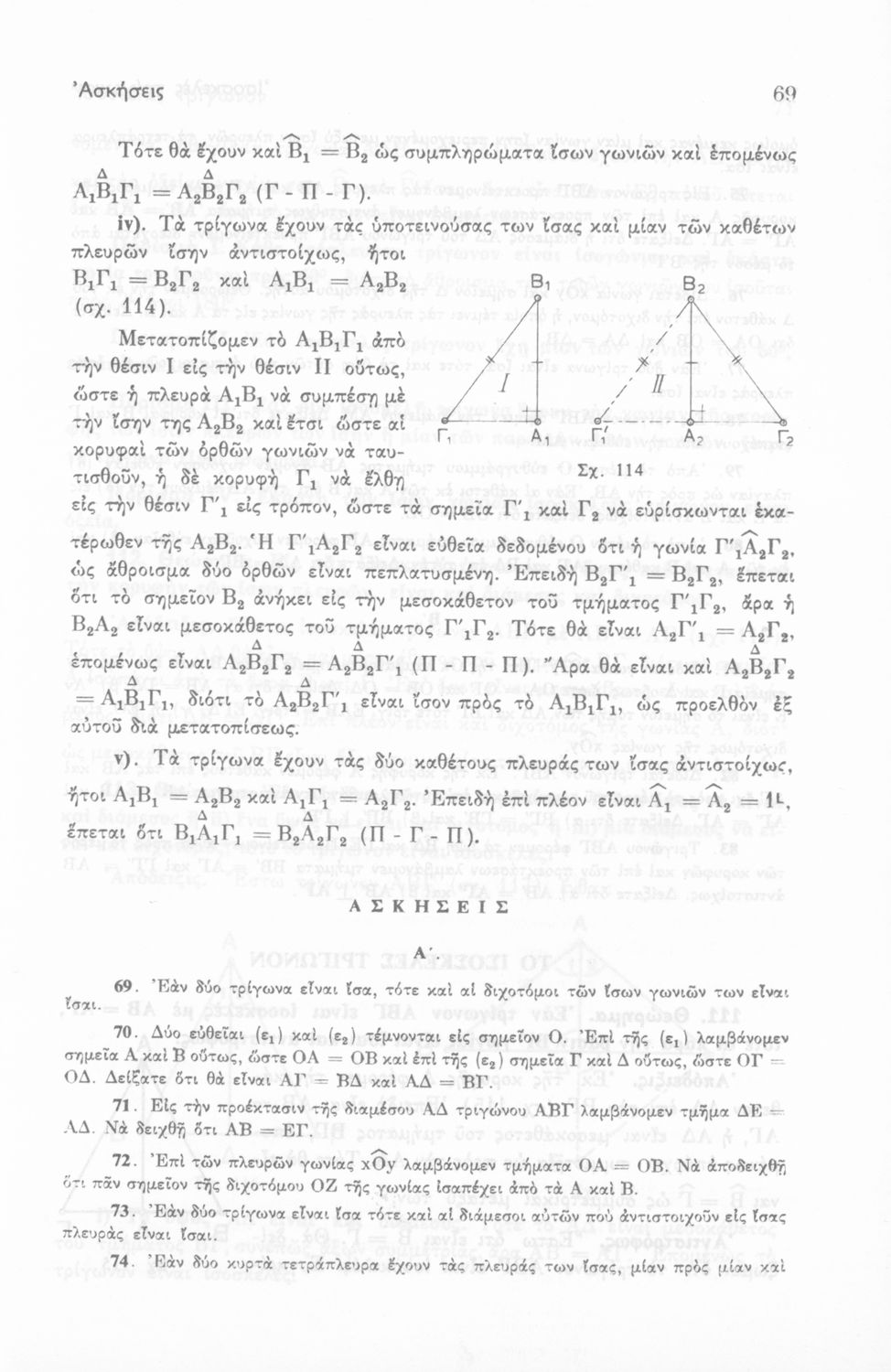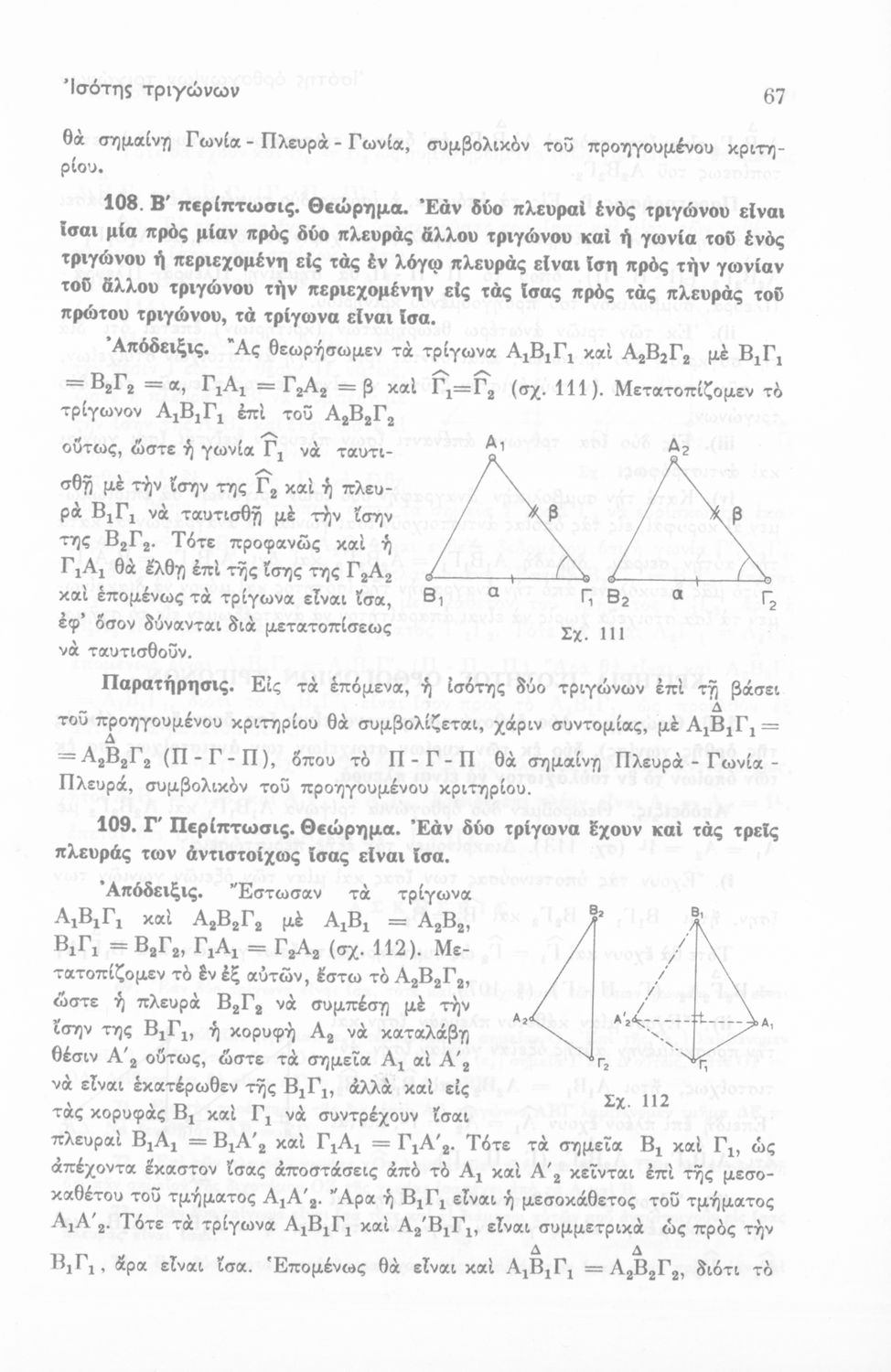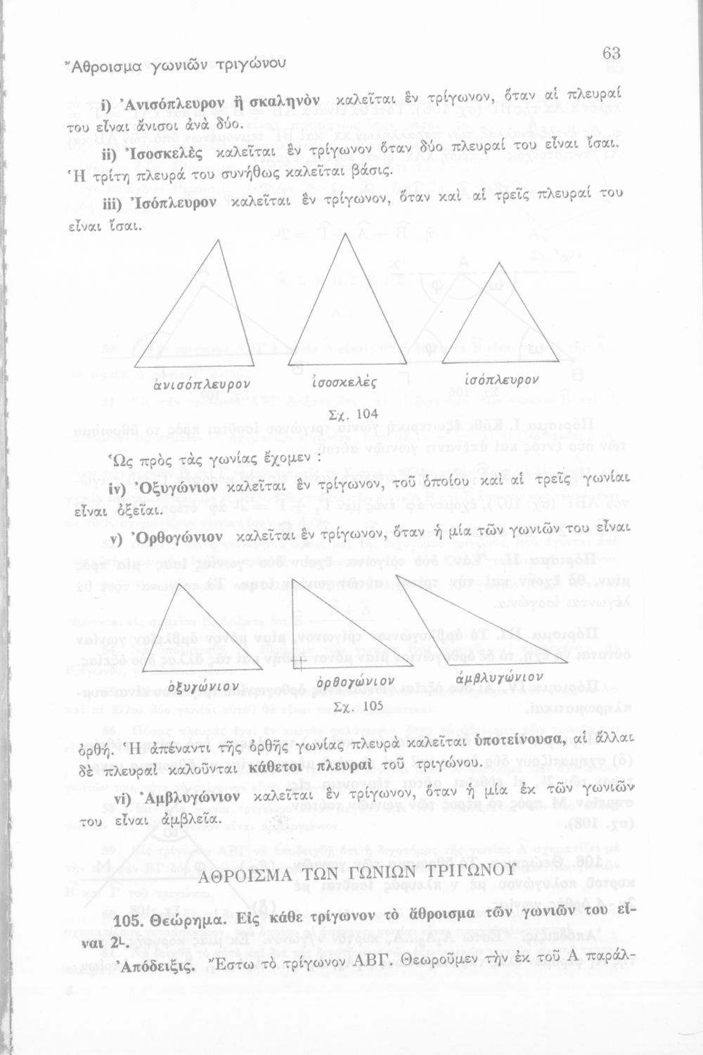 Ευκλείδειος γεωμετρία Γ΄ Γυμνασίου και Δ΄, Ε΄, ΣΤ΄ Γυμνασίου θεωρητικής κατευθύνσεως