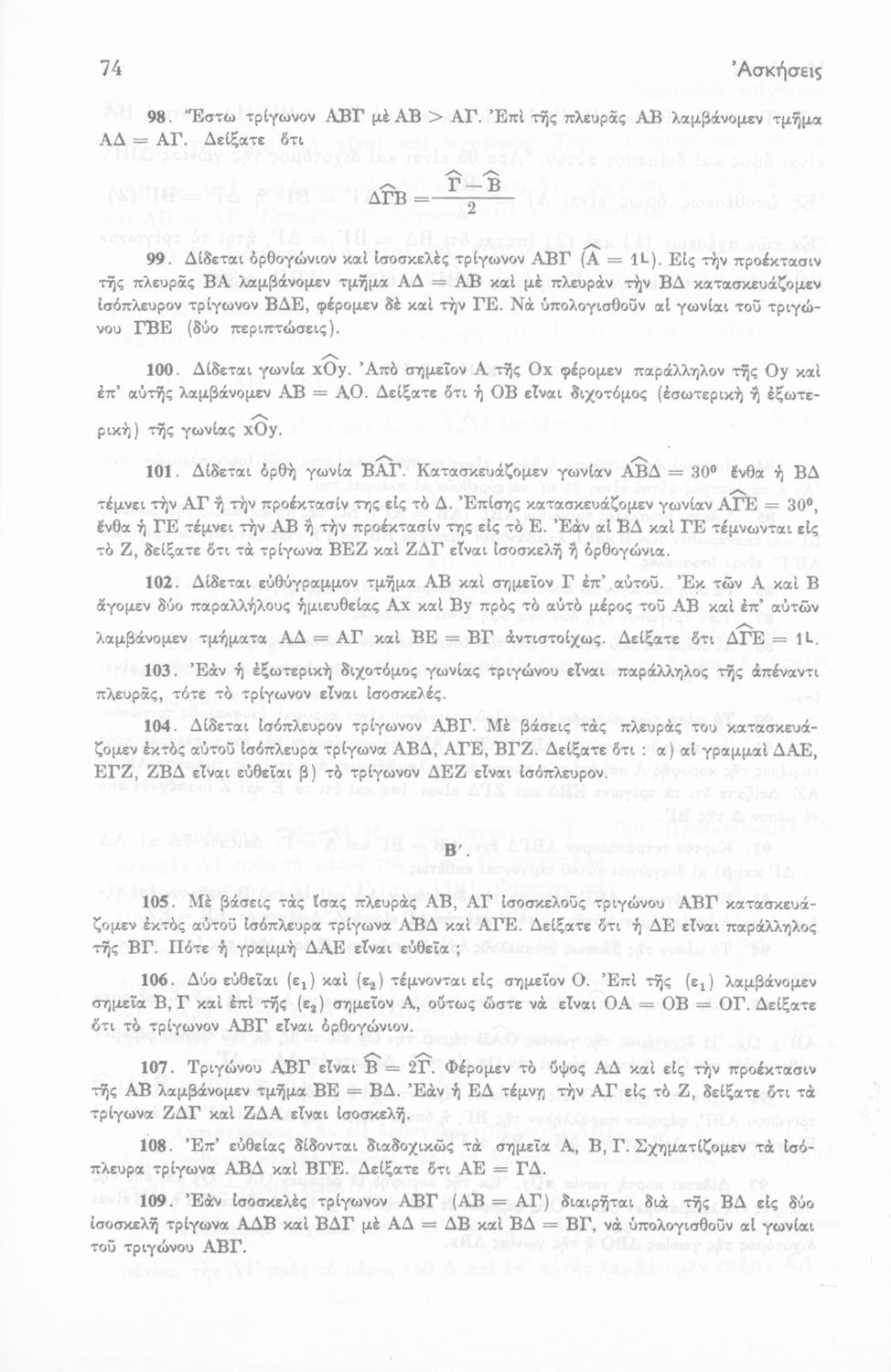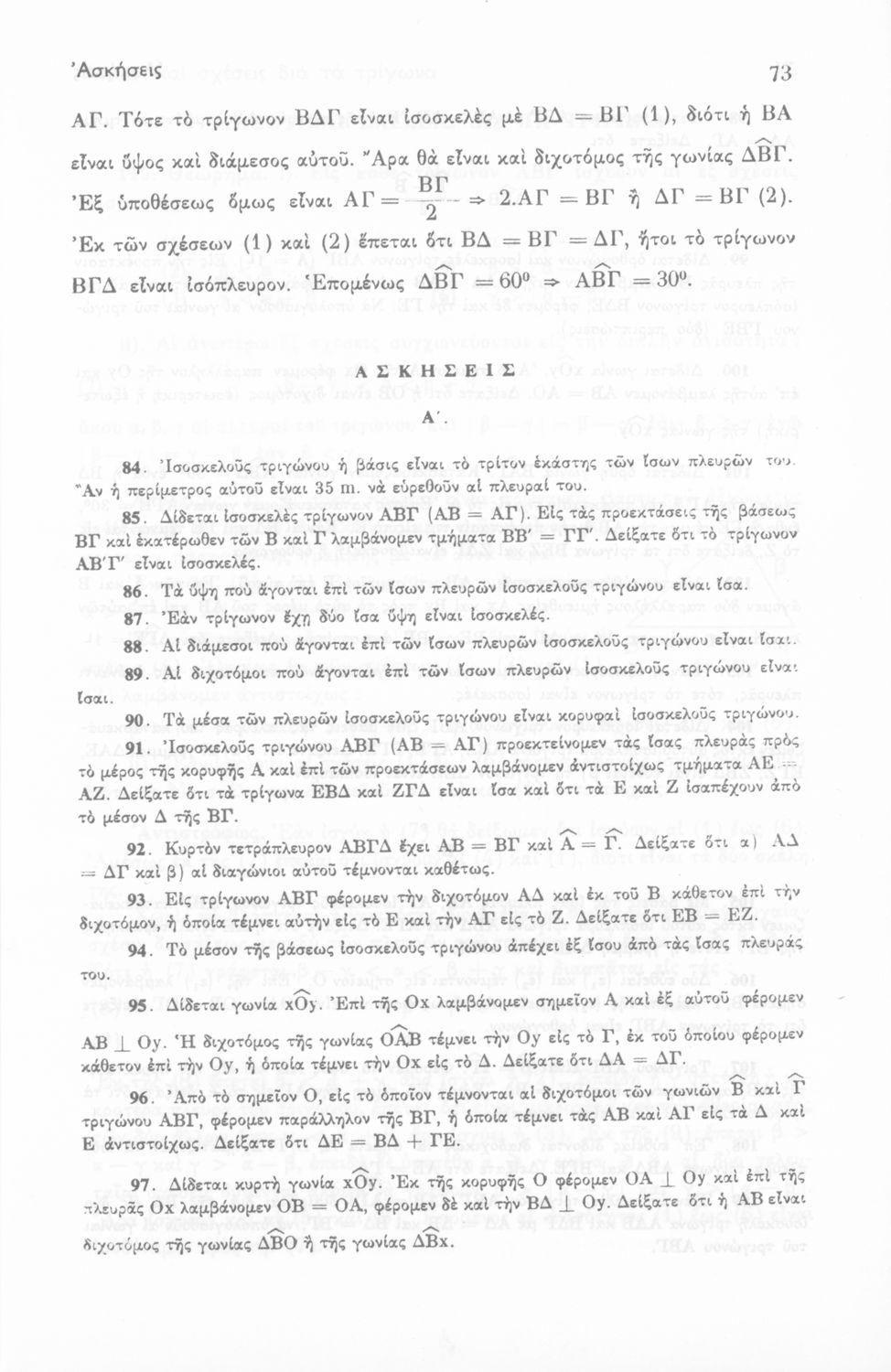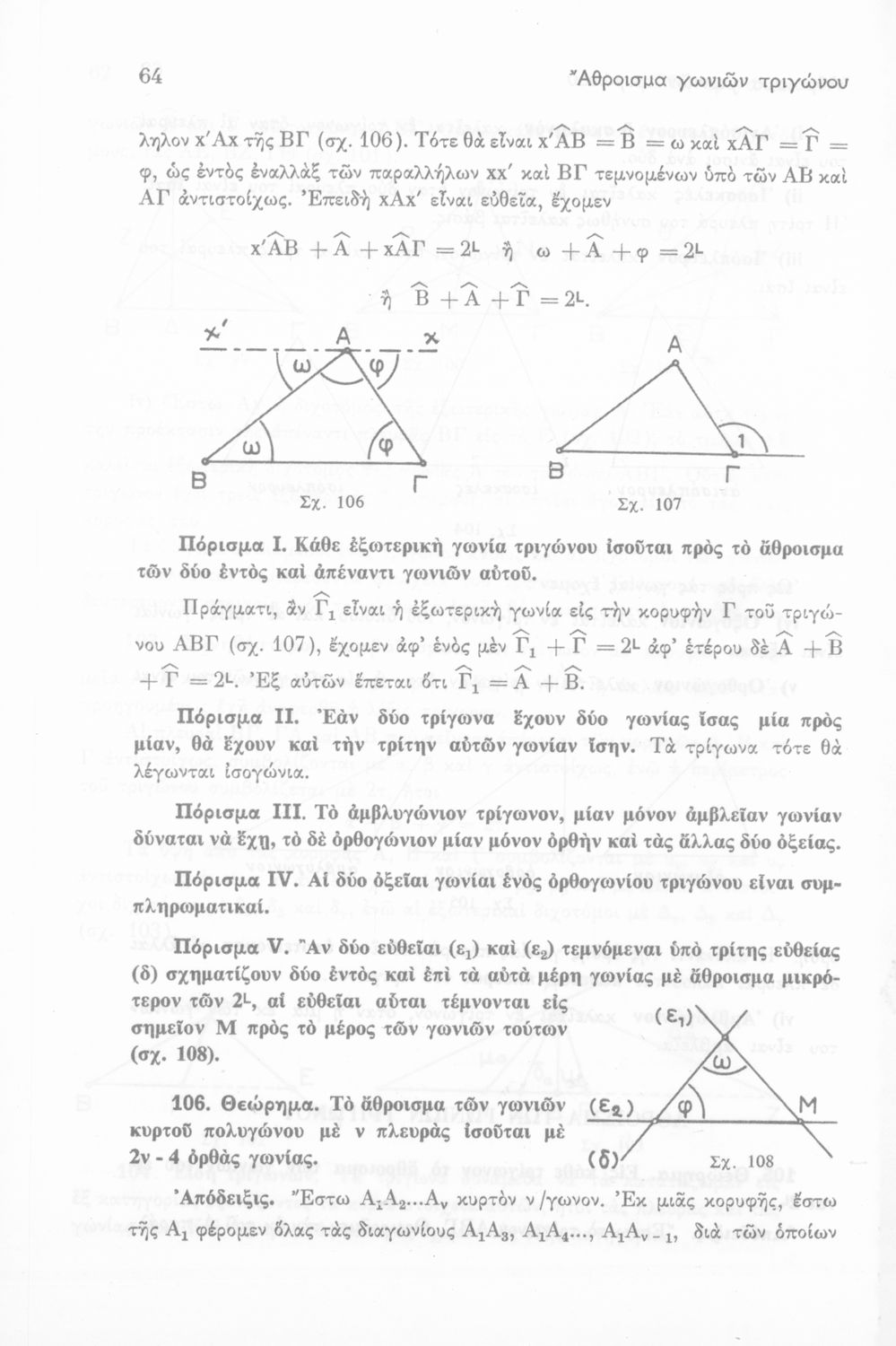Σχολικό εγχειρίδιο Γεωμετρίας για τις Δ΄, Ε΄ και ΣΤ΄ Γυμνασίου που περιλαμβάνει αξιώματα, θεωρήματα και κατασκευές και είναι χωρισμένο σε γεωμετρία επιπέδου και γεωμετρία χώρου.