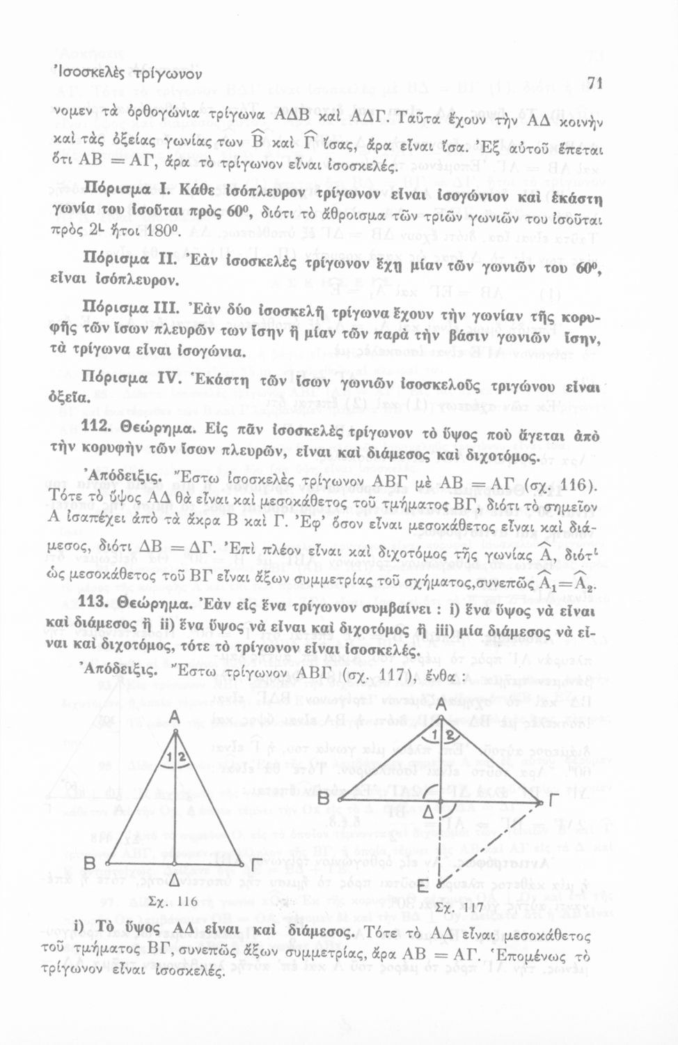 Σχολικό εγχειρίδιο Γεωμετρίας για τις Γ΄, Δ΄, Ε΄, ΣΤ΄ Γυμνασίου που εστιάζει στα βασικά θεωρήματα και ιδιότητες των γεωμετρικών σχημάτων. Φέρει το σύμβολο της δικτατορίας.