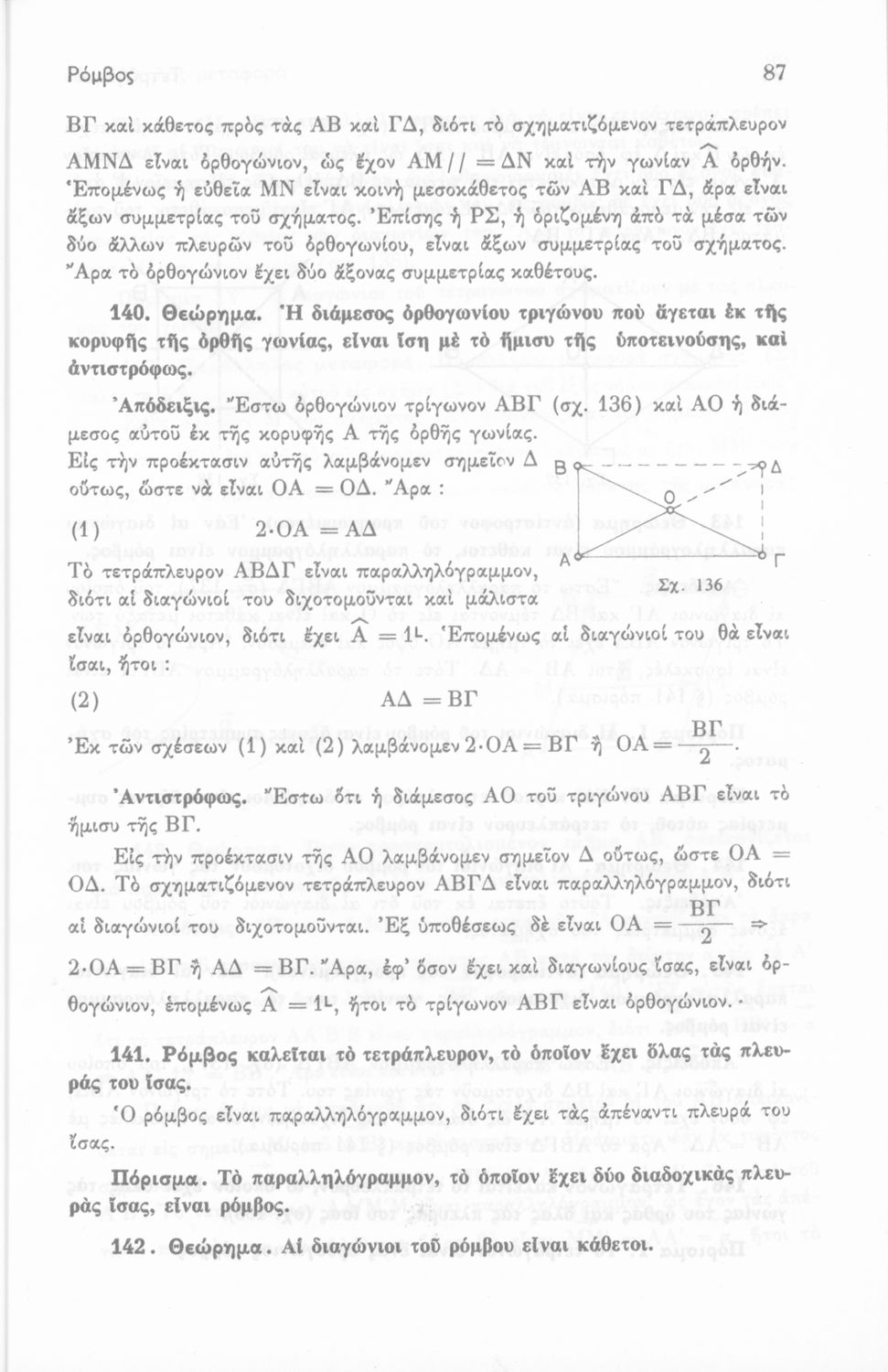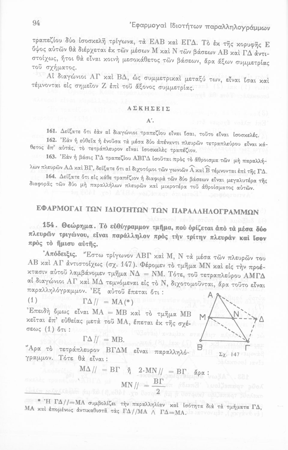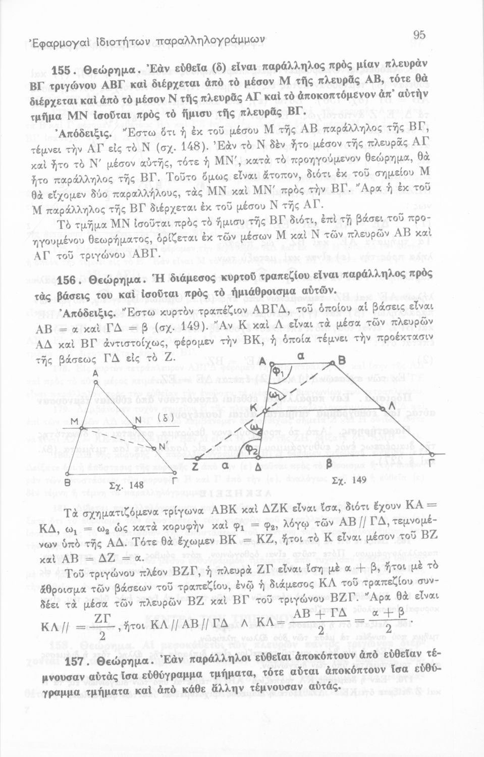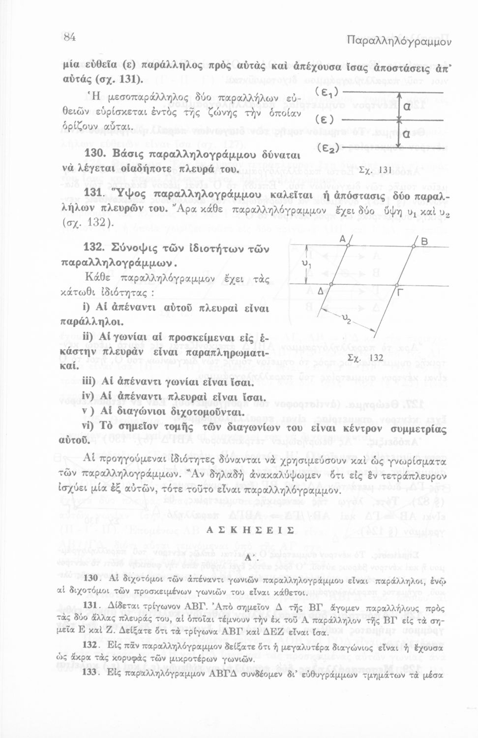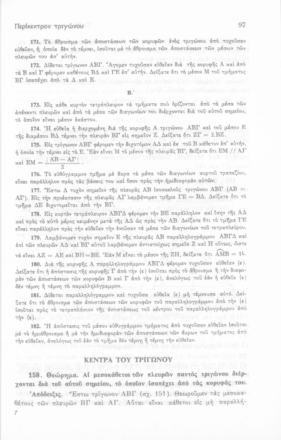 Σχολικό εγχειρίδιο Γεωμετρίας για τις Γ΄, Δ΄, Ε΄, ΣΤ΄ Γυμνασίου που περιλαμβάνει θεωρία και ασκήσεις και είναι χωρισμένο σε Επιπεδομετρία και Στερεομετρία.