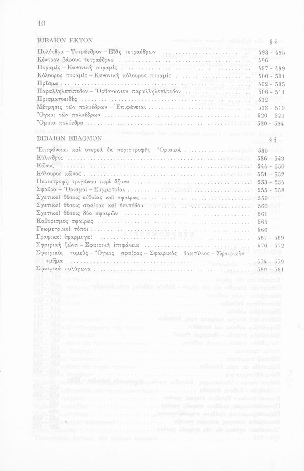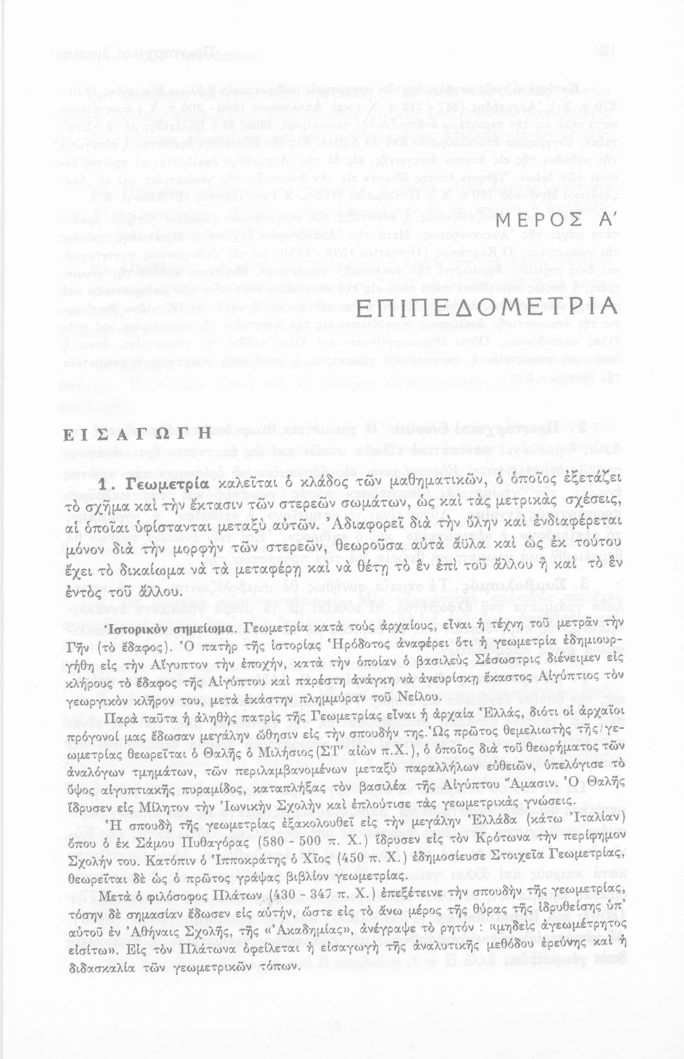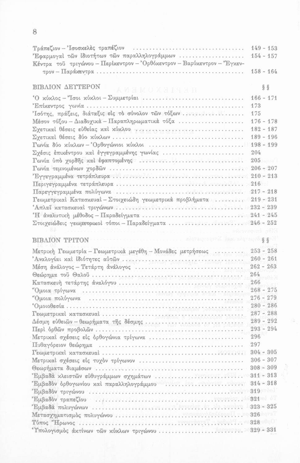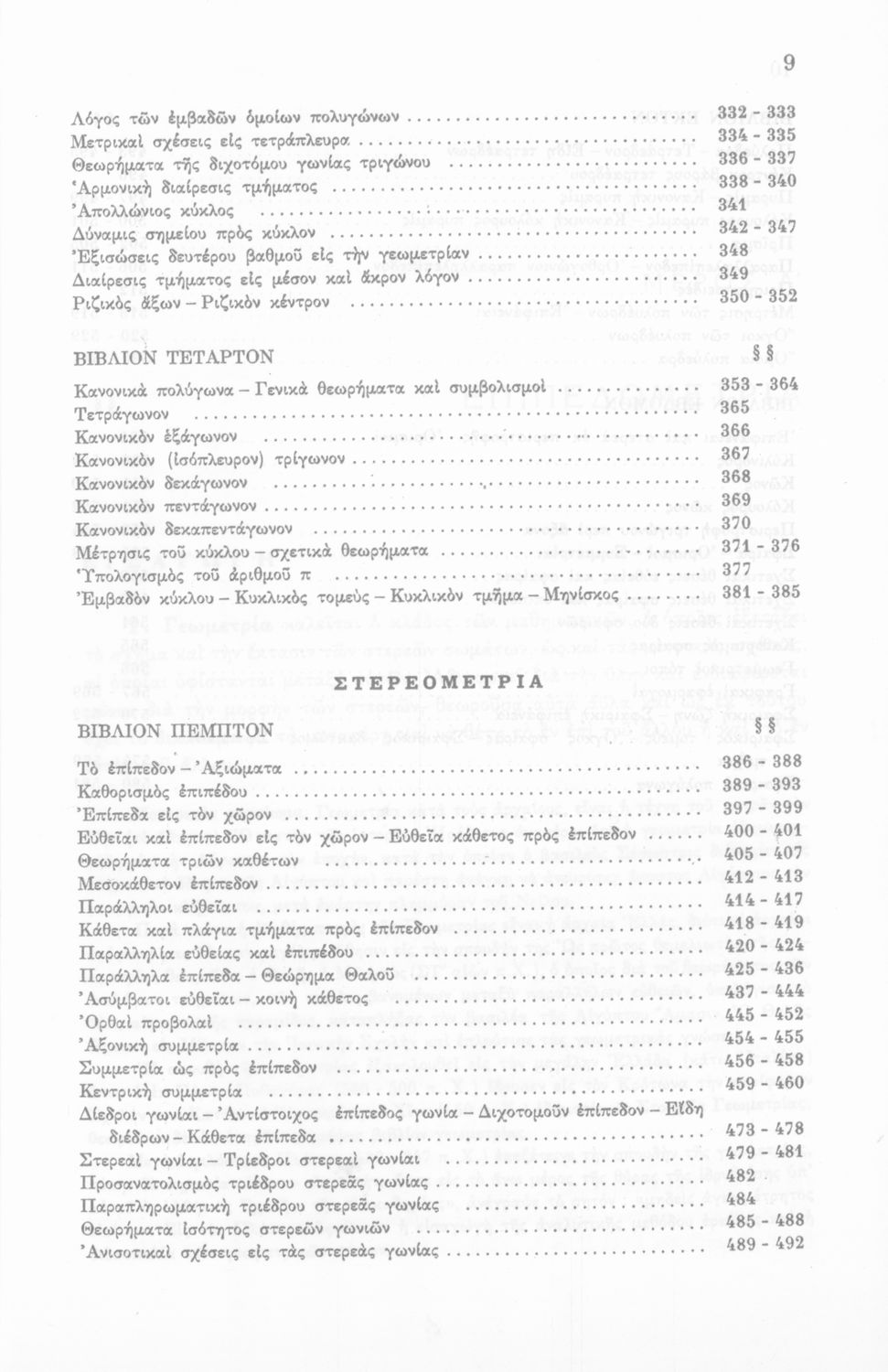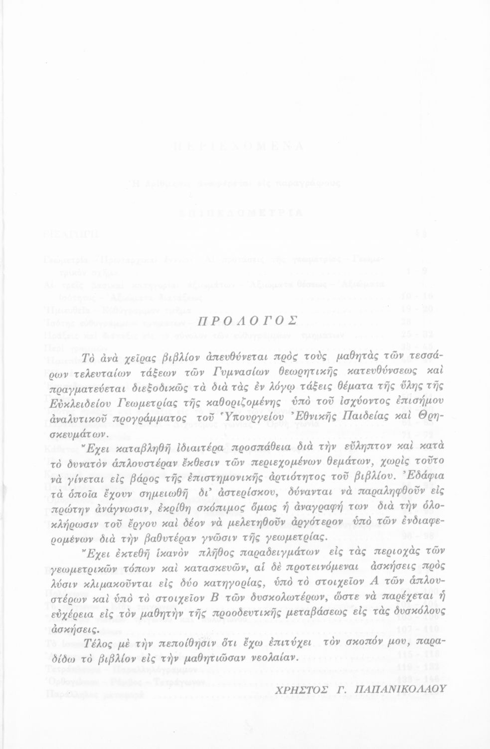 Σχολικό εγχειρίδιο Γεωμετρίας για τις Γ΄, Δ΄, Ε΄, ΣΤ΄ Γυμνασίου που περιλαμβάνει θεωρία και ασκήσεις και είναι χωρισμένο σε Επιπεδομετρία και Στερεομετρία.