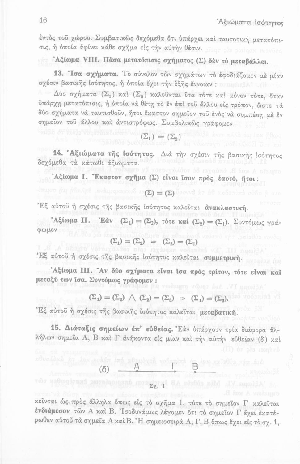 Κωδικός αναγνώρισης: 01-17570 Τίτλος: Ευκλείδειος γεωμετρία Γ΄ Γυμνασίου και Δ΄, Ε΄, ΣΤ΄ Γυμνασίου θεωρητικής κατευθύνσεως Συγγραφέας: Χρ. Γ. Παπανικολάου Μέγεθος και υπόστρωμα: Σχολικό εγχειρίδιο, 23εκ., μαλακό εξώφυλλο, 395 σελίδες. Σκίτσα (ασπρόμαυρα). |