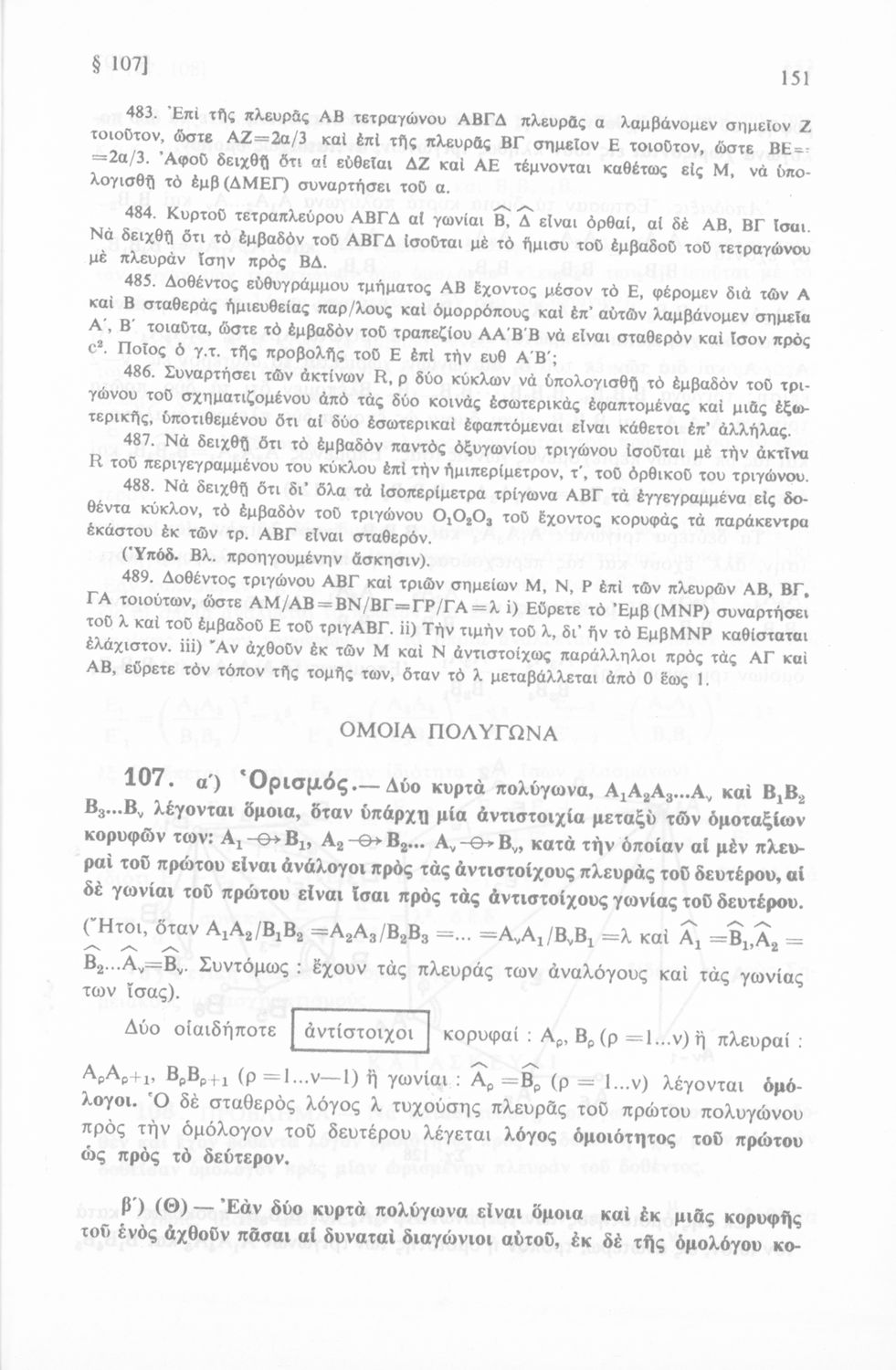 Σχολικό εγχειρίδιο Γεωμετρίας για τις Γ΄, Δ΄, Ε΄, ΣΤ΄ Γυμνασίου που εστιάζει στα βασικά θεωρήματα και ιδιότητες των γεωμετρικών σχημάτων. Φέρει το σύμβολο της δικτατορίας.