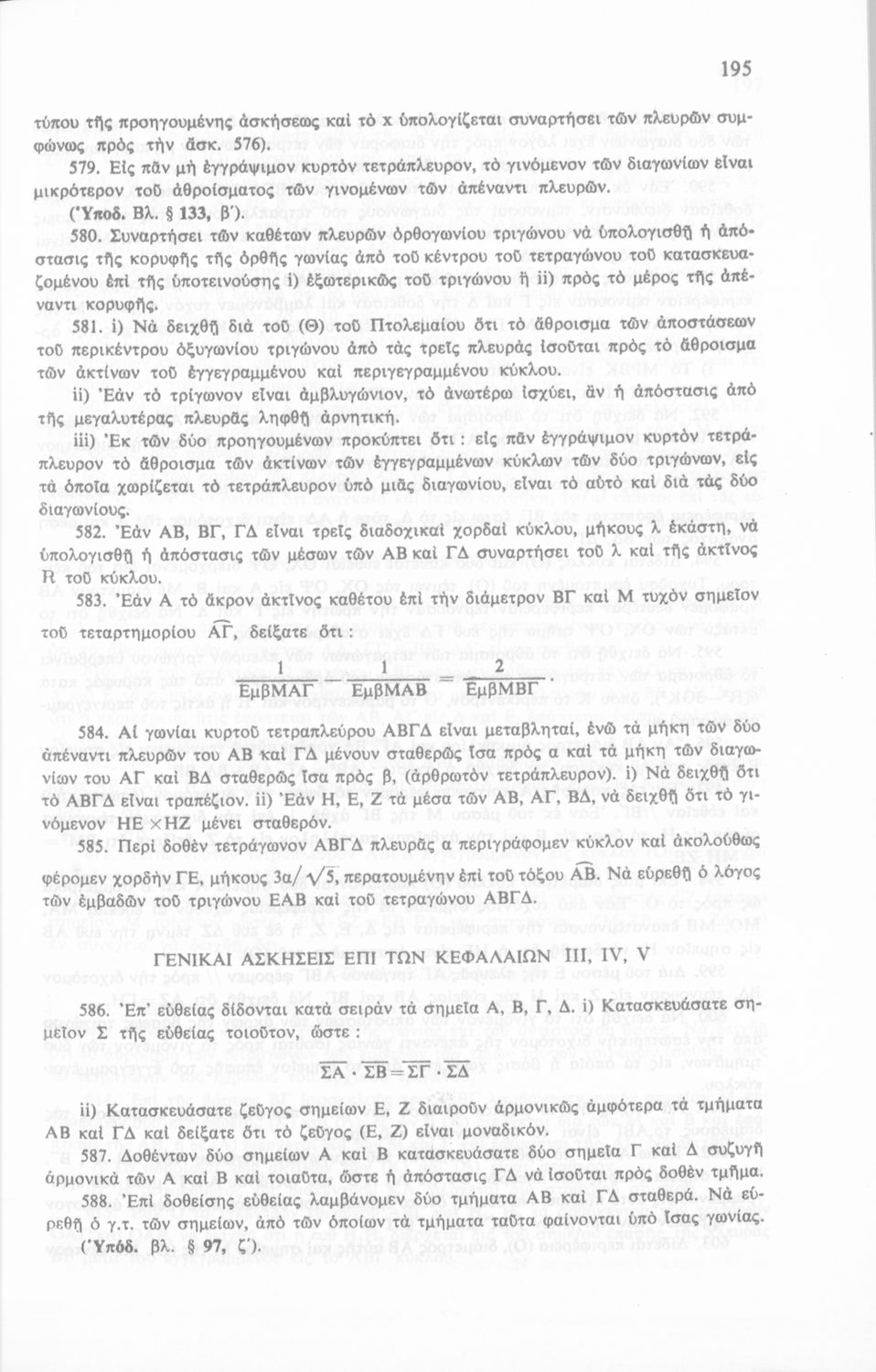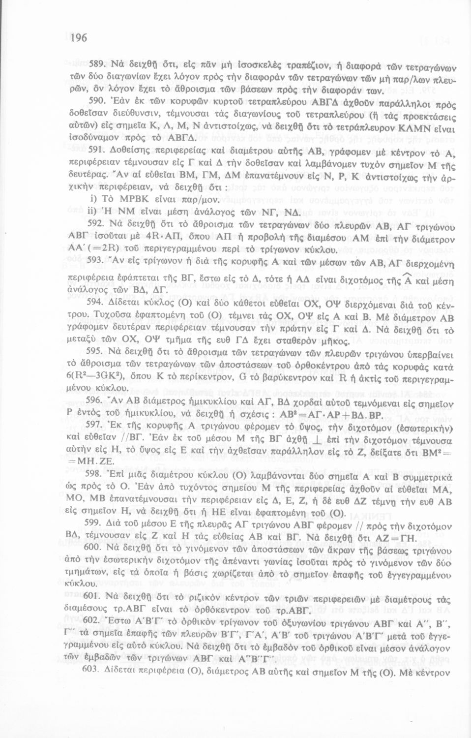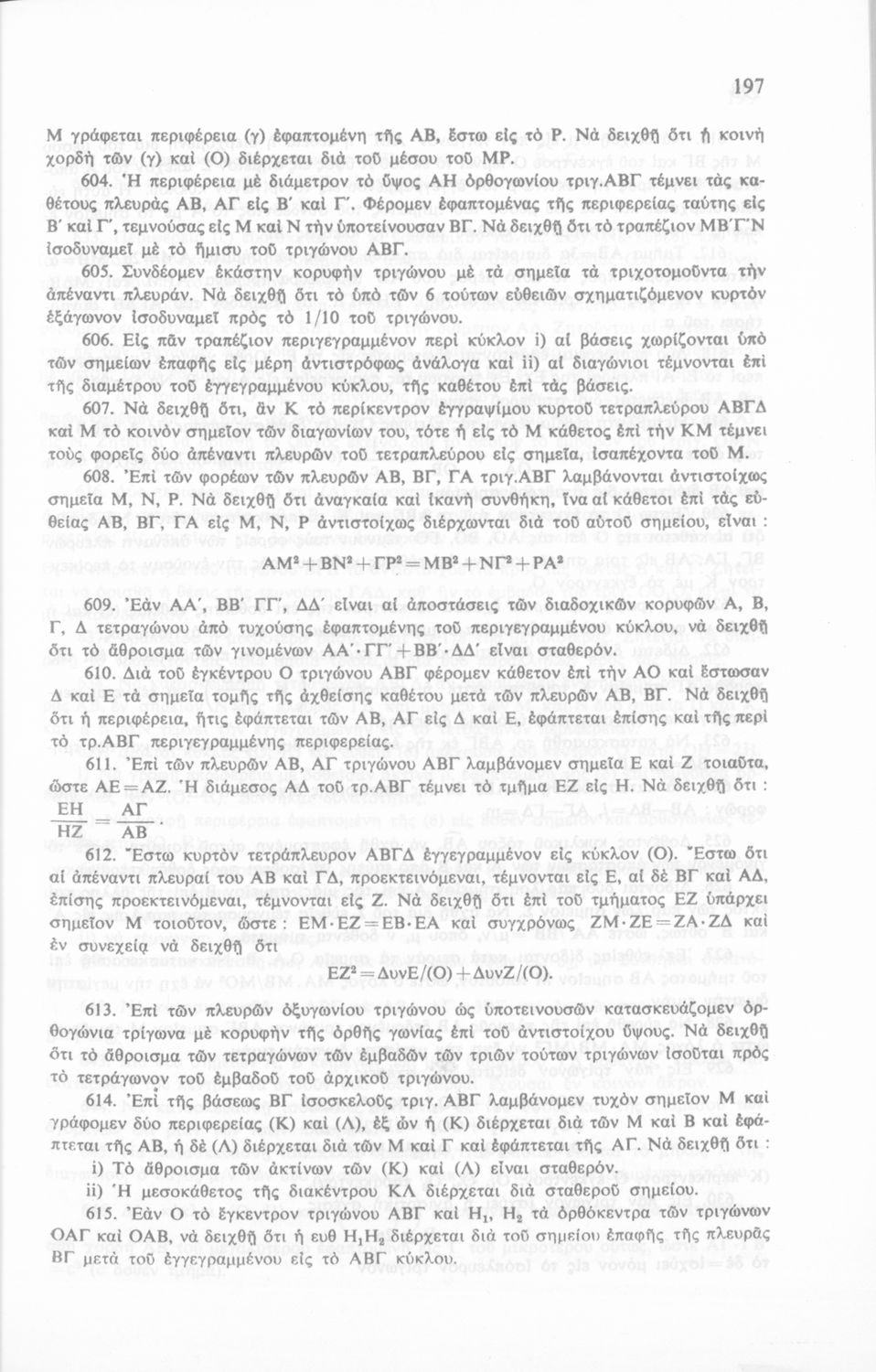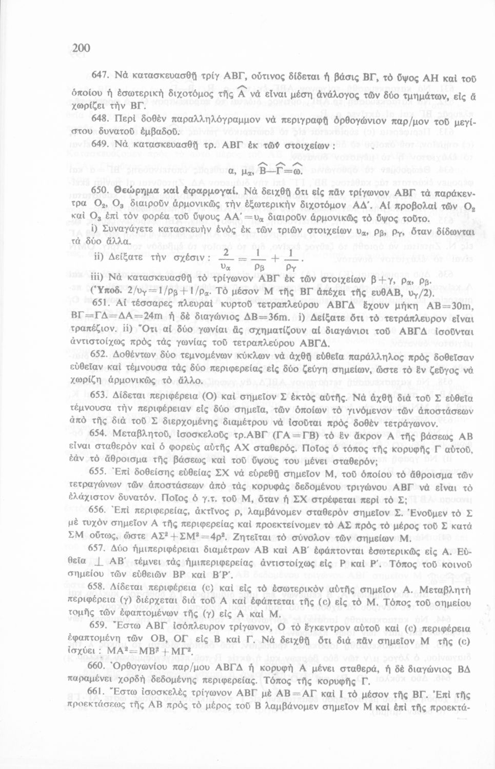 Σχολικό εγχειρίδιο Γεωμετρίας για τις Δ΄, Ε΄ και ΣΤ΄ Γυμνασίου που περιλαμβάνει αξιώματα, θεωρήματα και κατασκευές και είναι χωρισμένο σε γεωμετρία επιπέδου και γεωμετρία χώρου.